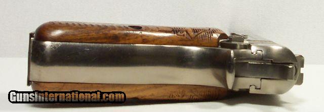 Description: Belgium Browning HiPower; SN 245PY40180; 9 mm cal.; factory nickel finish; fixed sights; non-original grips; nearly all metal finish remains; PERFECT action & bore; FFL required for shipping; All items shipped fully insured Priority Mail- -Hand guns $30 --Long guns $45-- Spurs $30-- Knives, Swords & Sabers $30 (Texas residents please add 6.75% sales tax); return policy: three days inspection from the date the item is received; full refund of shipping both ways ONLY IF THE ITEM IS MISREPRESENTED. Note: International sales only as laws permit. Will ship C&R eligible items to C&R license. Antiques shipped without license to anyone EXCEPT New Jersey and City of New York where a FFL is required. SOLD Curio/Relic: Yes Manufacturer: Belgium Browning Model: 9 mm Serial Number: 245PY40180 |