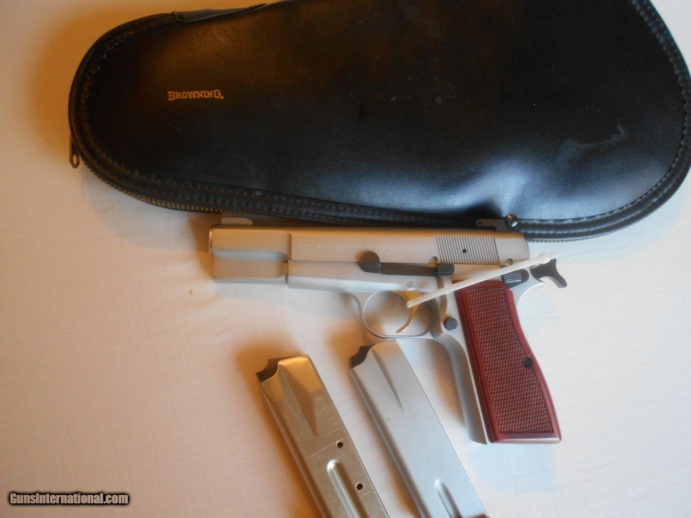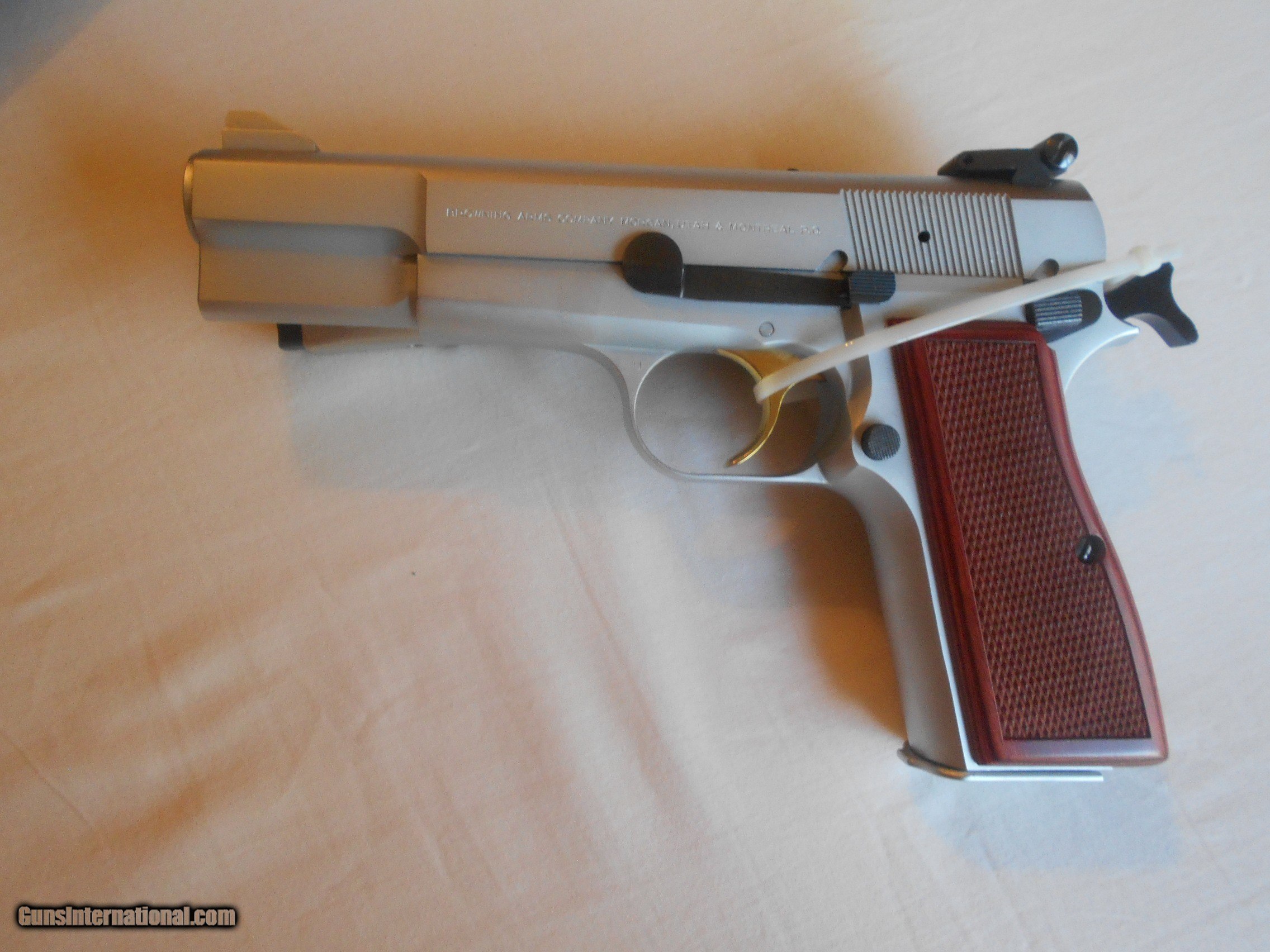 Description: FN Browning Hi Power 9mm target (rare Silver Chrome) Gold Trigger and- adjustable sight come in browning soft case with two clips 99% no marks on it look unfired $1800 + shipping There can be a restocking fee ( WILL TAKR OFFER ) SOLD Manufacturer: Browning FN Model: HI-Power Barrel Length: 4 in. Bore: EX Chambers: EX Condition: EX Metal Condition: EX Wood Condition: EX Bore Condition: EX Barrels: EX Finish: silver chrome |