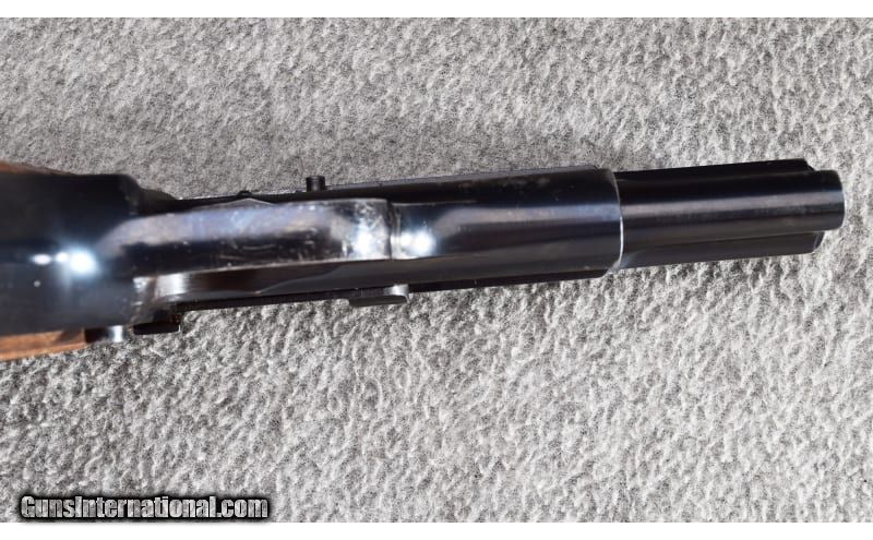 Description: This Browning was manufactured in Belgium and remains in very good overall condition with an excellent bore. Wood grips are worn with a flaking finish and some light scratches but remain solid. Blue has much blue loss from holster wear, some light scratches and a couple areas of oxidation. Function appears excellent. No box. Timeless classic. 9mm Parabellum SOLD Metal Condition: Good Wood Condition: Good Bore Condition: Excellent Barrels: 4 3/4 Triggers: Factory Butt Pad: Checkered Walnut Grips Weight: 32 oz. Sights: Serrated Ramp Front - Adjustable Notch Rear Item Location: Wheeling |