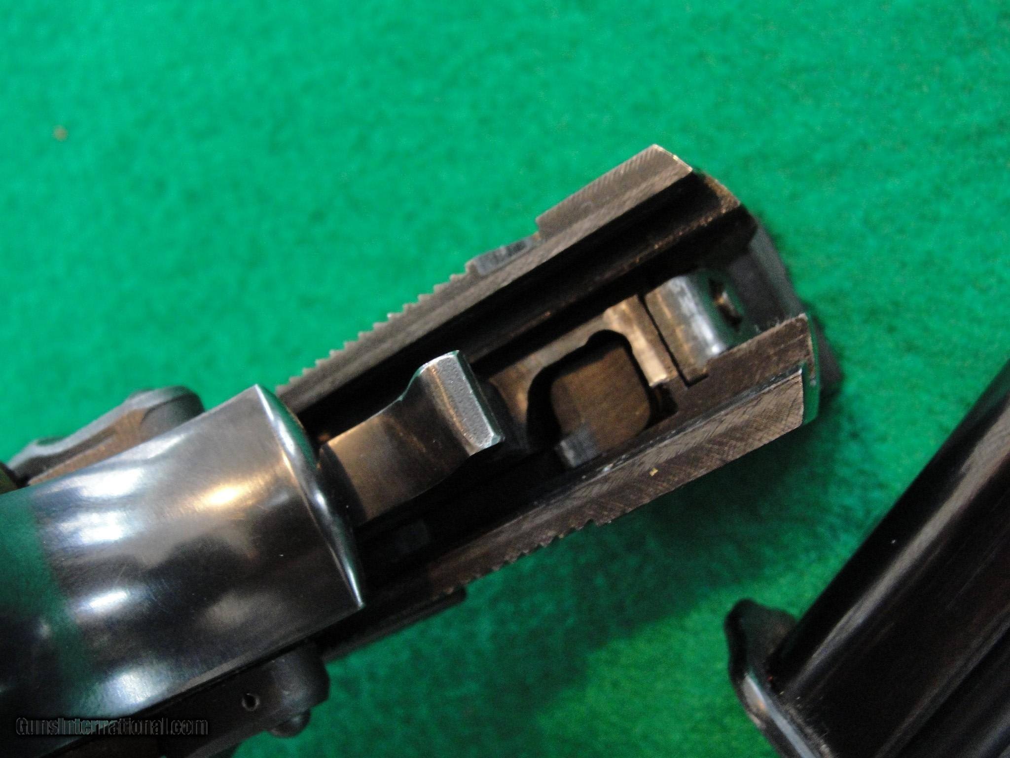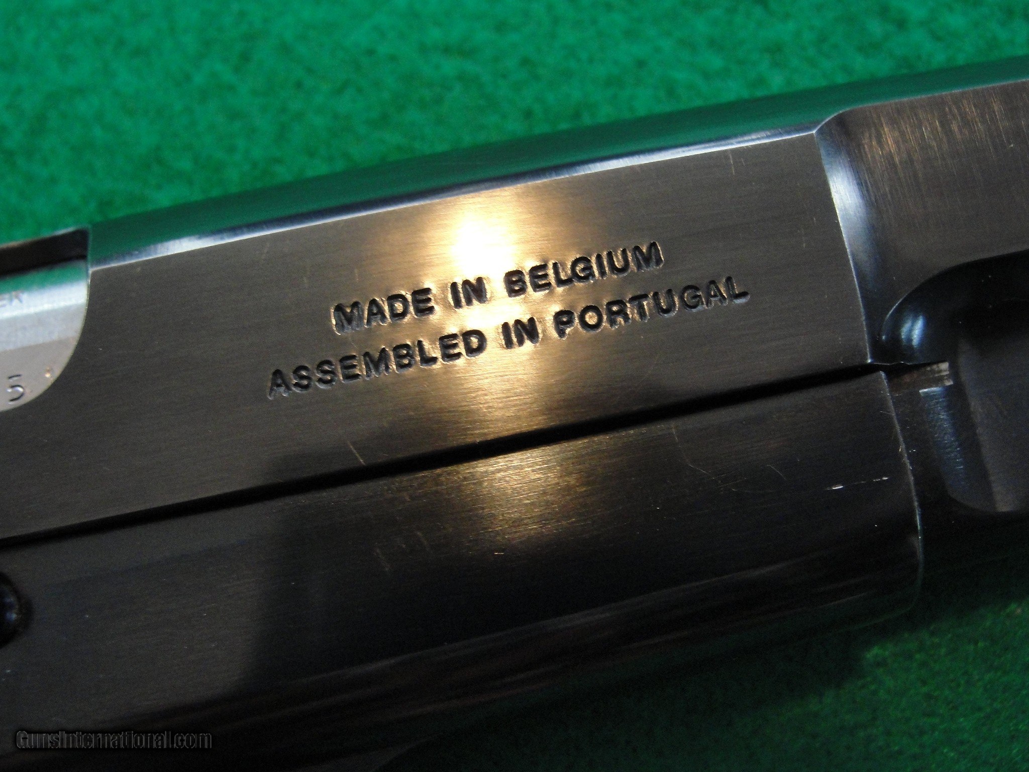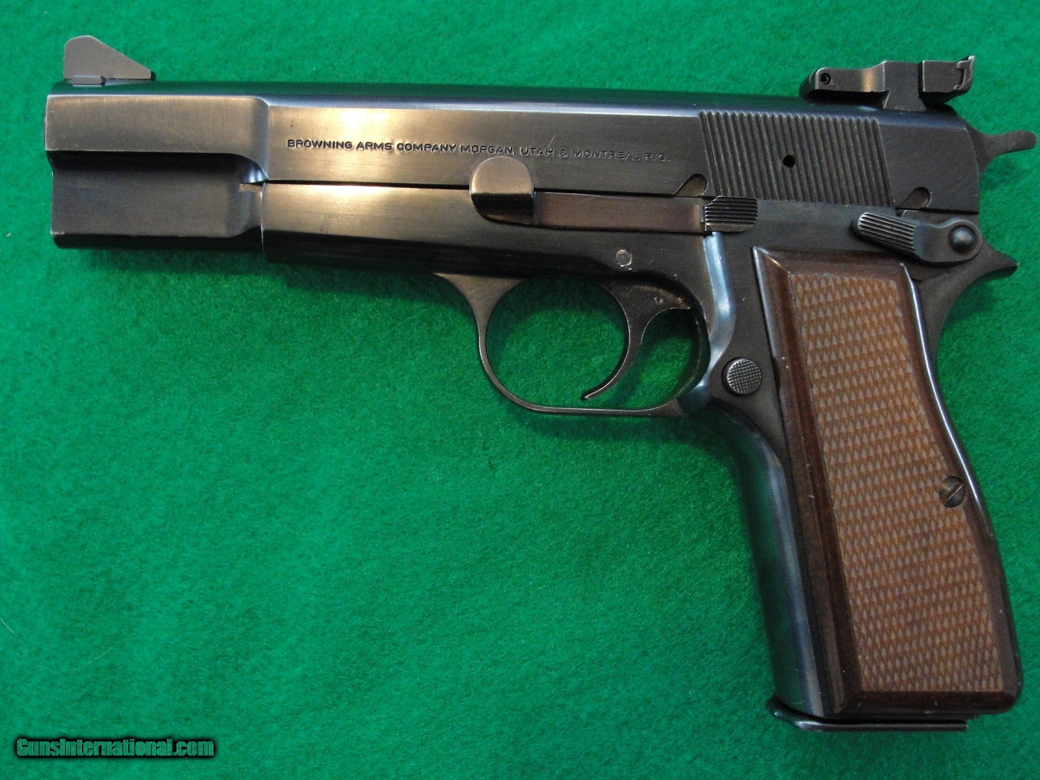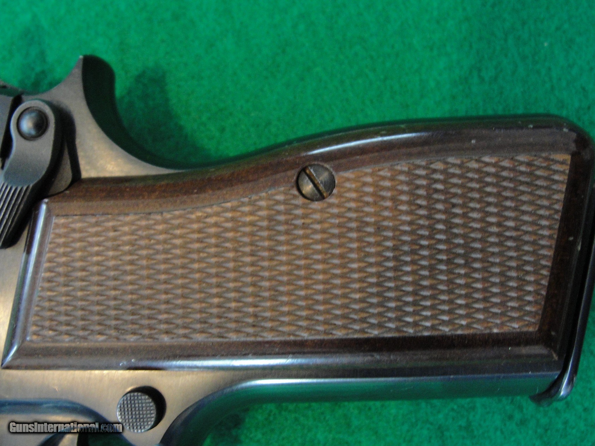 Description: Lightly used Hi Power, in fantastic shape inside and out. These Brownings are getting hard to find, especially in nice shape! Mechanically superb, excellent bore, matching # barrel, crack-free checkered wood grips. Has some light, scattered nicks and handling marks. Includes only the one pictured hi-cap mag...in prohibited areas you can't get the mag, sorry. No box or papers. CA sales OK, but ONLY by face-to-face PPT in the SF East Bay Area. Browning Hi Power Made in Belgium, assembled in Portugal, mfg date 1990. SOLD |