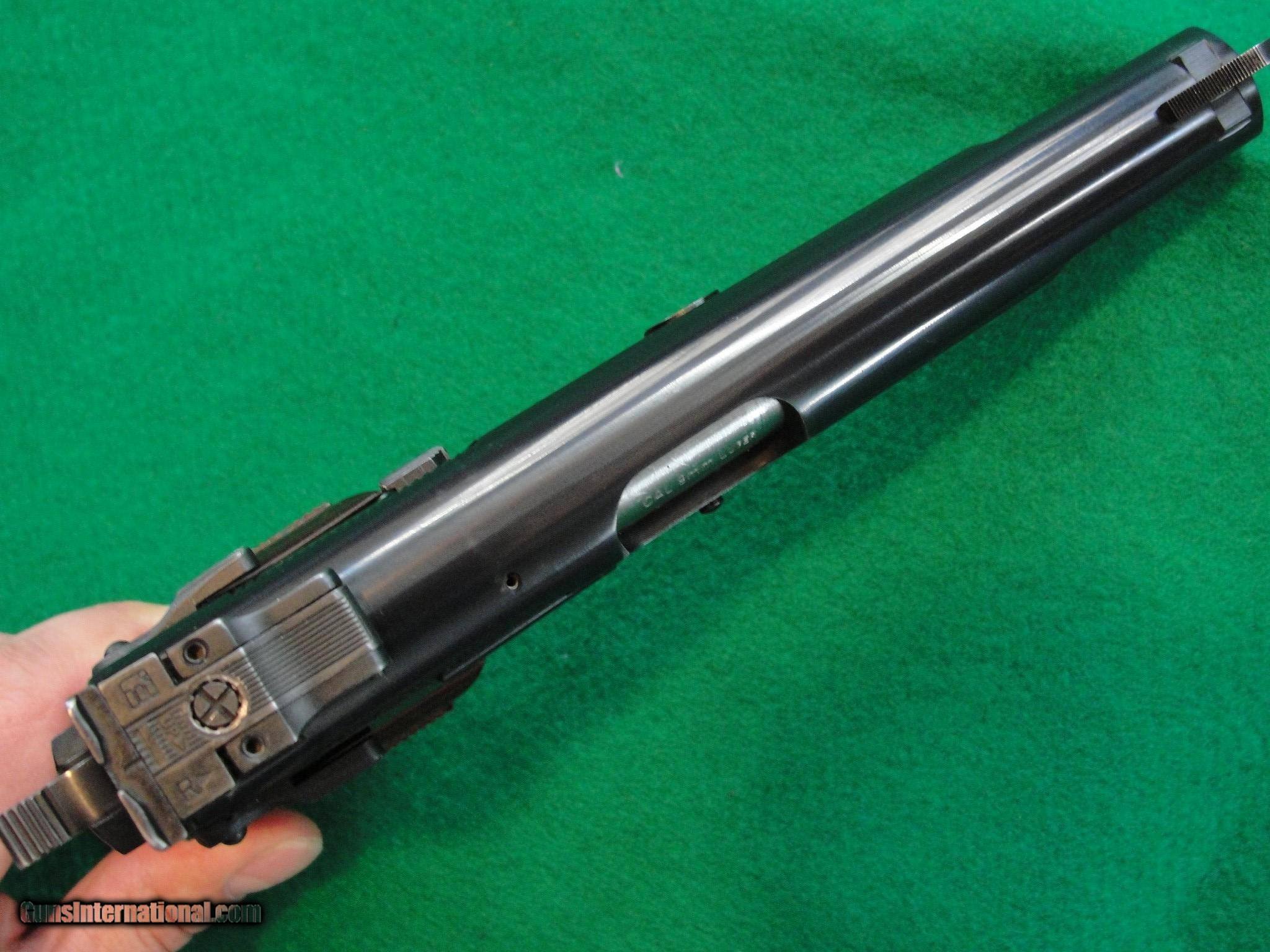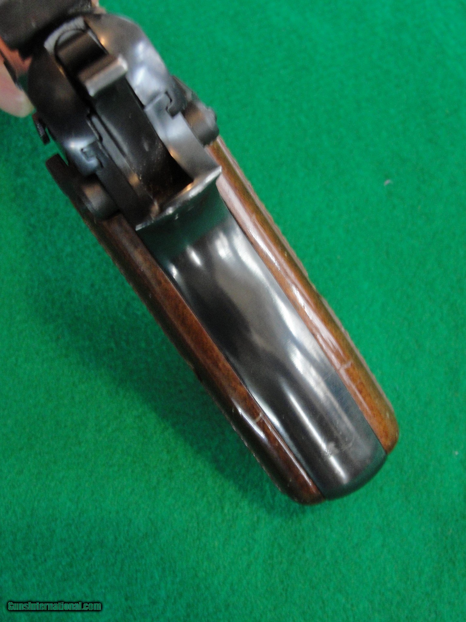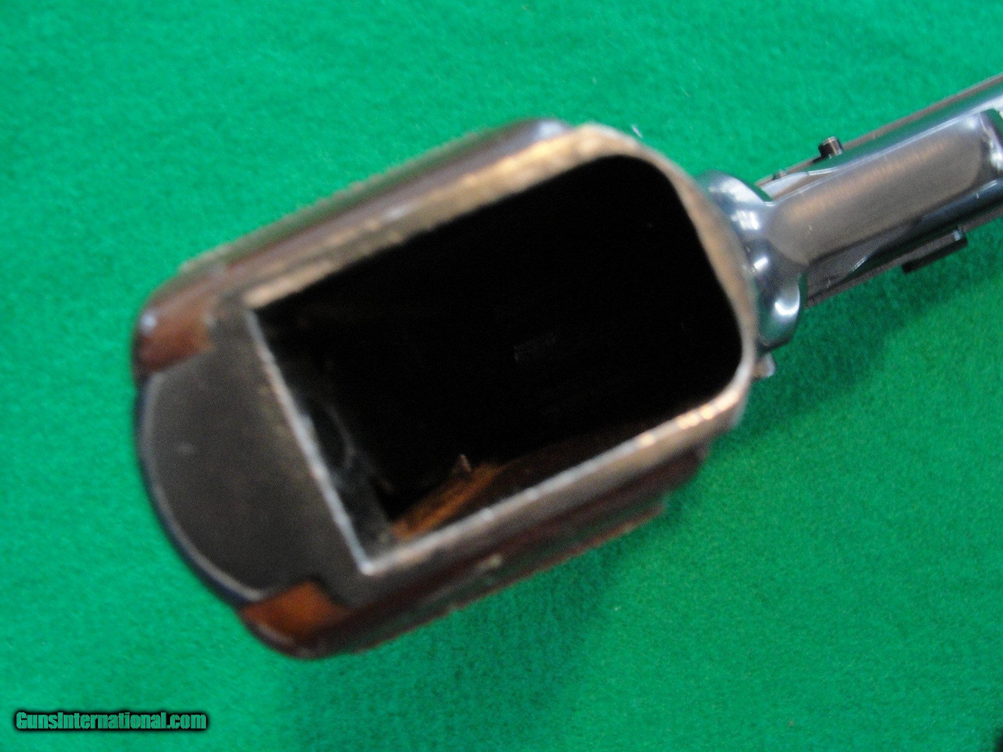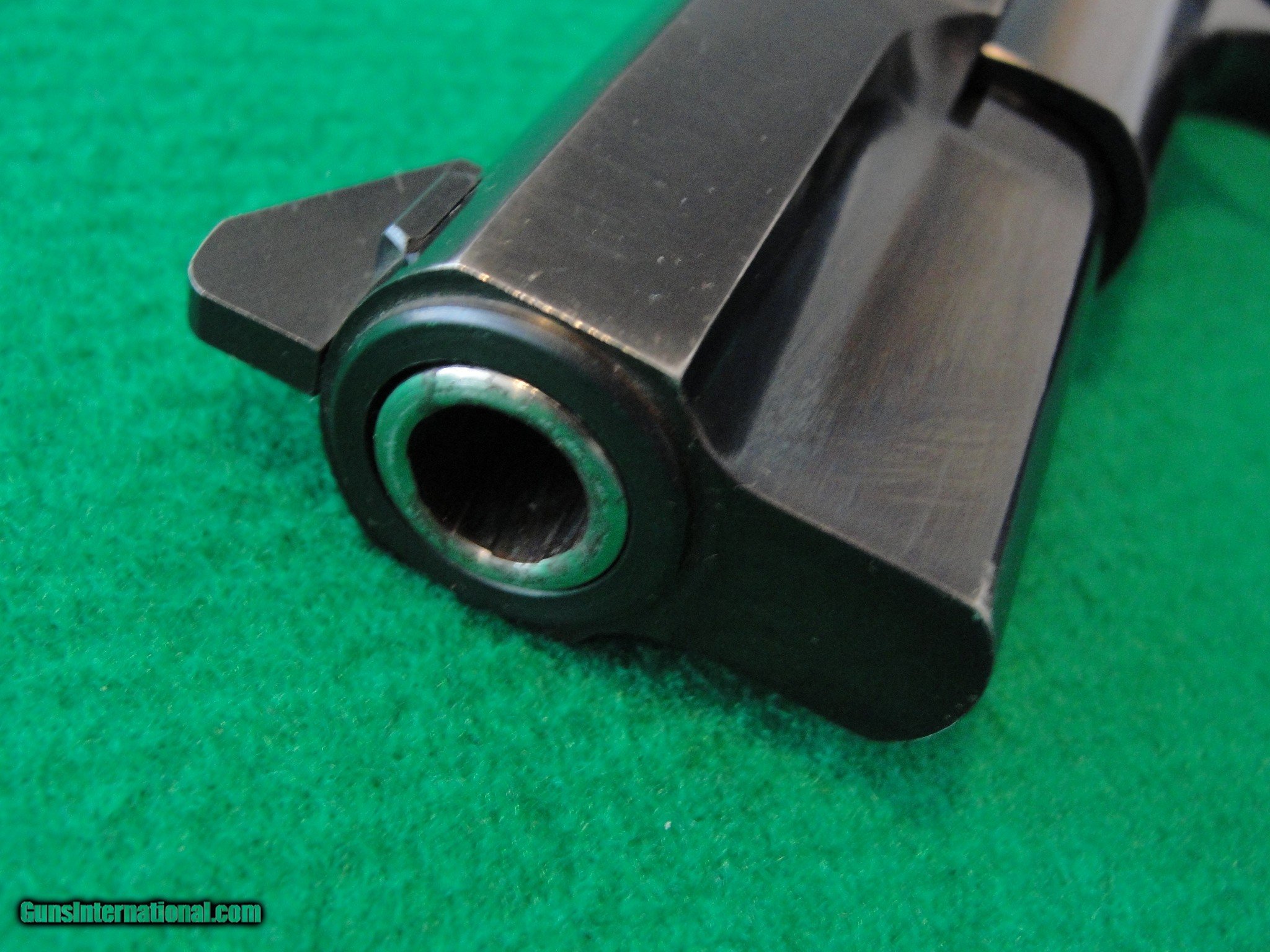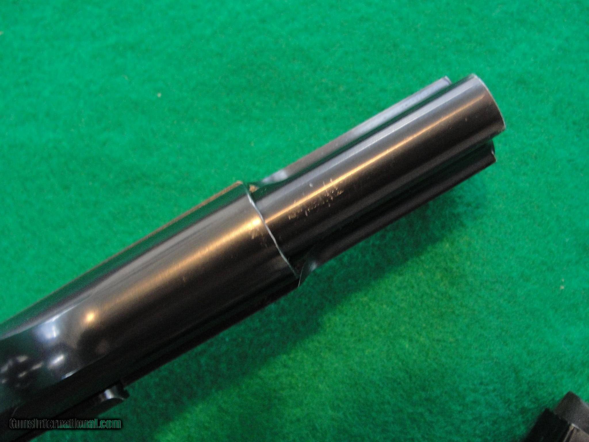 Description: Lightly used Hi Power, in fantastic shape inside and out. These Brownings are getting hard to find, especially in nice shape! Mechanically superb, excellent bore, matching # barrel, crack-free checkered wood grips. Has some light, scattered nicks and handling marks. Includes only the one pictured hi-cap mag...in prohibited areas you can't get the mag, sorry. No box or papers. CA sales OK, but ONLY by face-to-face PPT in the SF East Bay Area. Browning Hi Power Made in Belgium, assembled in Portugal, mfg date 1990. SOLD |