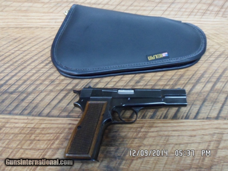 Description: BROWNING BELGIUM 1972 HI-POWER 9MM PISTOL ,4 1/2" BARREL WITH EXCELLENT BORE AND FIXED SIGHTS.CIRCA 1972 MADE S/N 72C630XX. BELGIUM MADE AND STILL IN 99% PLUS ORIGINAL CONDITION METAL AND WOOD.FACTORY WALNUT CHECKERED GRIPS HAVE THE RED UNDERSIDE PANELS.GUN COMES WITH A BLACK ZIPPERED CASE.HARD TO FIND A NICER ONE FROM 1972. 959.00 PLUS 40.00 SHIPPING.CALL DANNY AT 828-698-8804 IF NEEDED.GOD BLESS YOUR CHRISTMAS! SOLD |