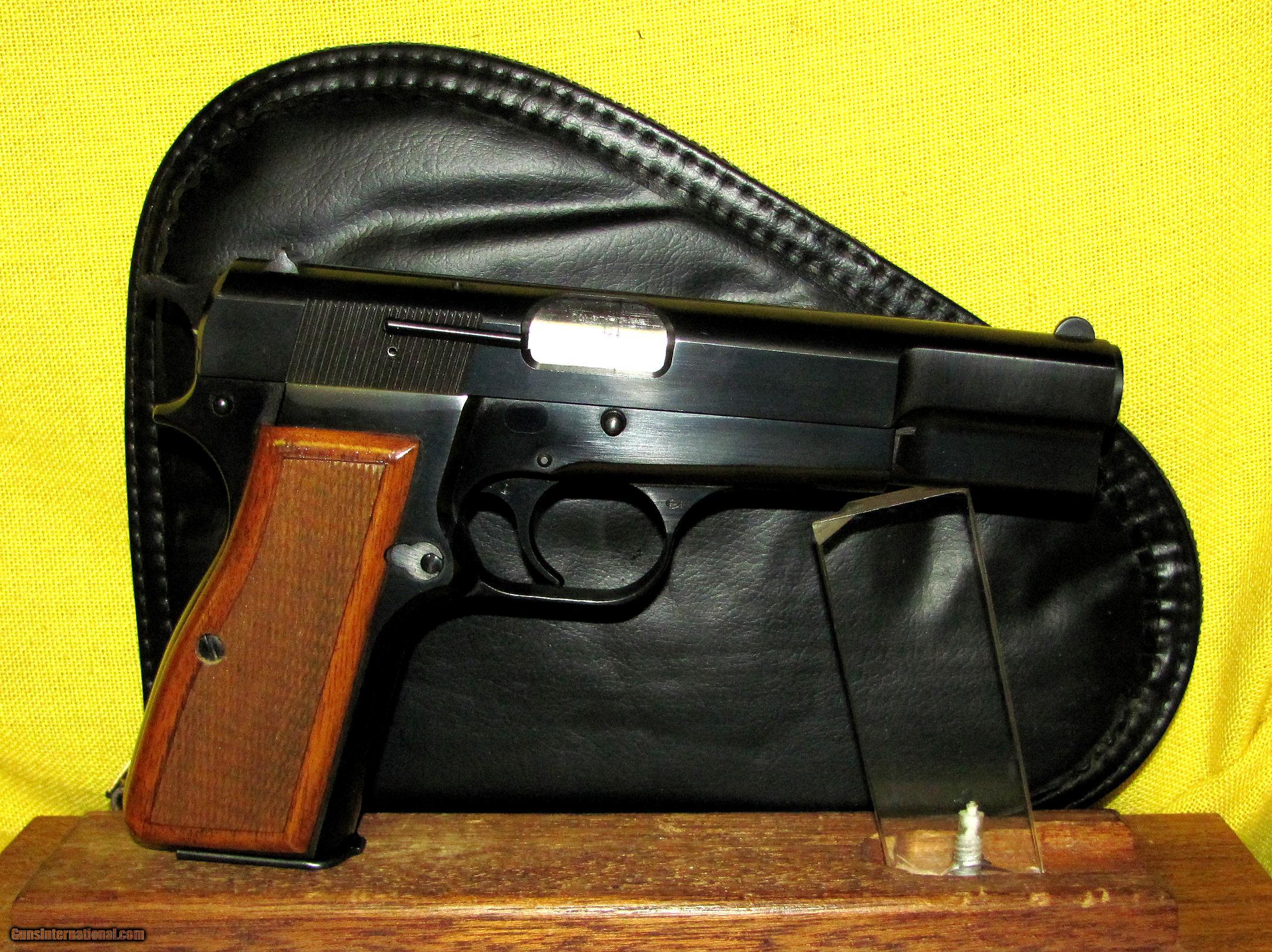 Description: BROWNING (BELGIUM) model HI-POWER in 9MM CAL., with 4" barrel. Color BLUE. BROWNING (BELGIUM) HI-POWER, SPUR HAMMER, FIXED SIGHTS, MIRROR BORE, GRIPS ARE EXCELLENT WITH RED STAIN ON THE INSIDE, 99% FACTORY BLUE FINISH, BROWNING FACTORY POUCH, LIKE NEW CONDITION. OUR NEW STOCK # D31020 Condition 98%+ LIKE NEW. Serial number 74C25606. SOLD |
