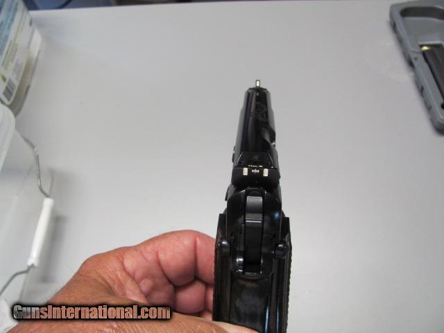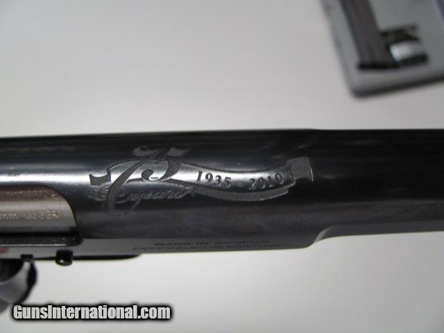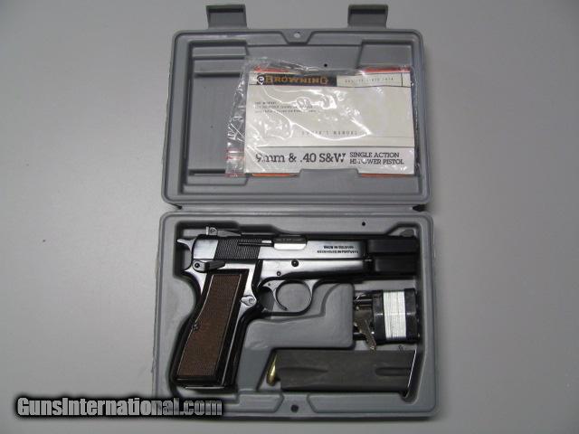 Description: Browning Hi Power 75th Anniv. Standard 9mm Luger. Browning item # 051032493 listed as Historic Product.Firearm has 4 5/8 inch barrel withbeautiful select walnut grips with cut checkering. Dark lustrous polished finish and 75th Anniv. engraved on top of barrel. 2 magazines , complete papers and correct box,adjustable rear sight. Mint / Like New Condition- Likely never fired ( no blemishes) SOLD |