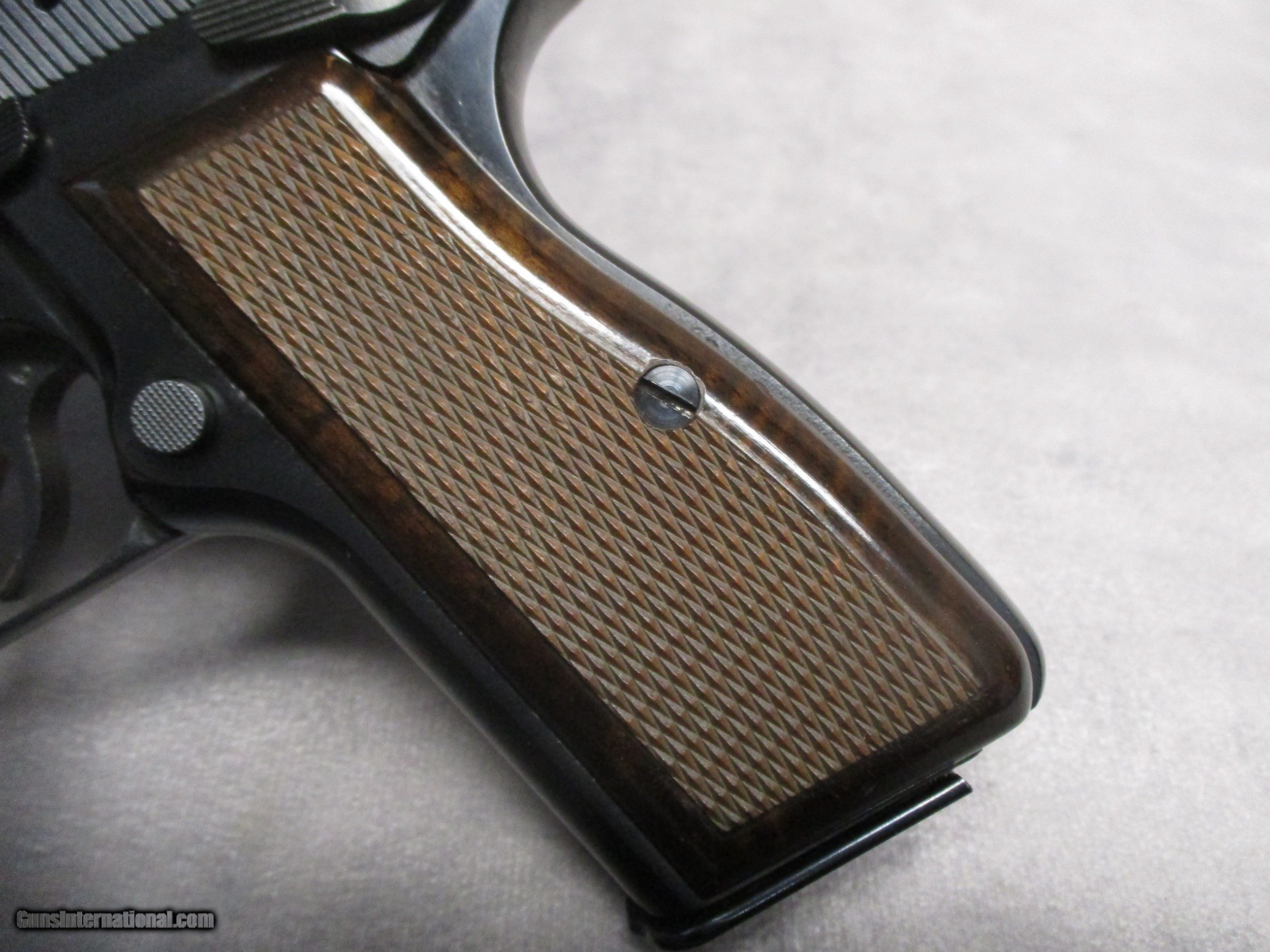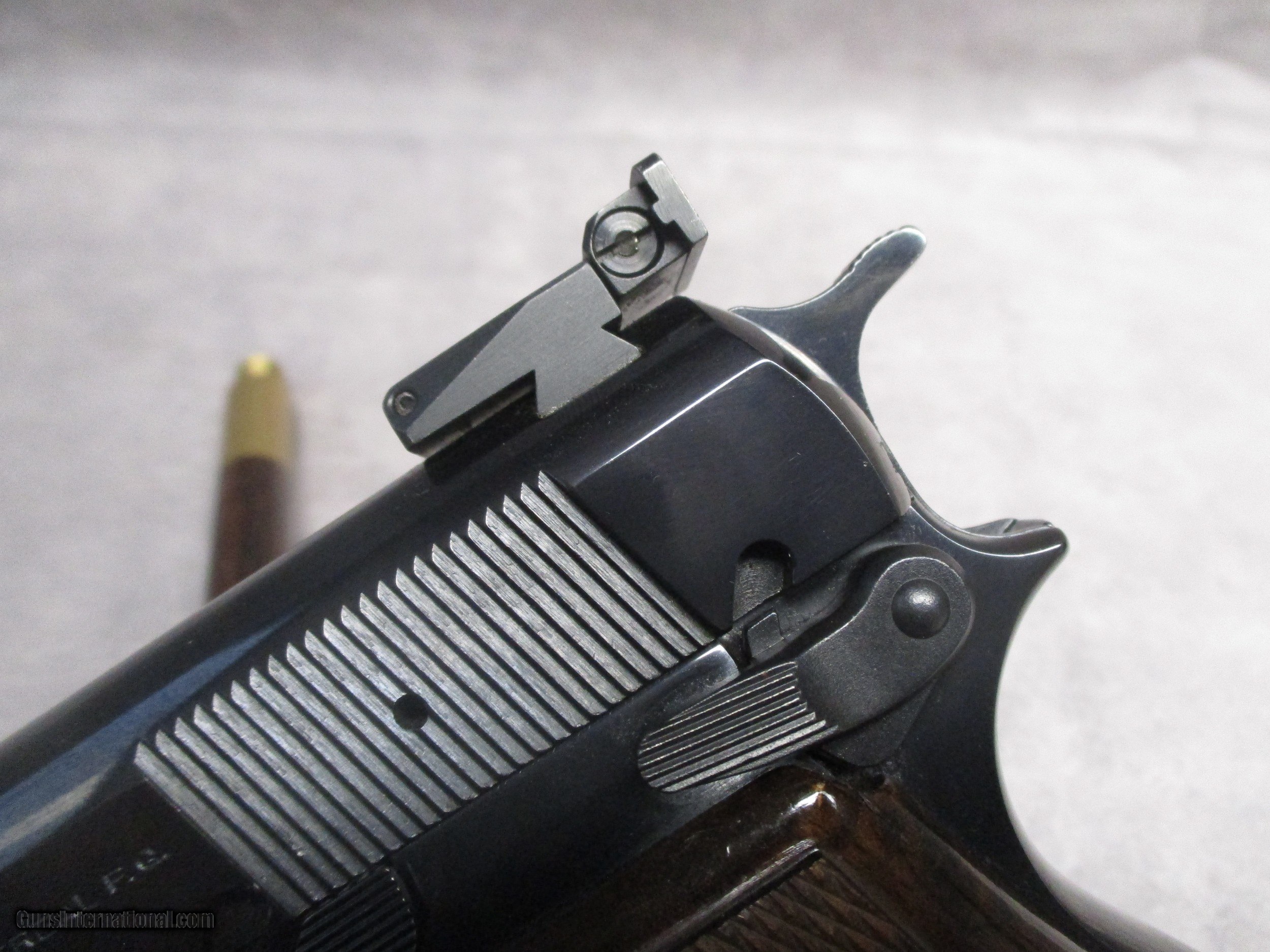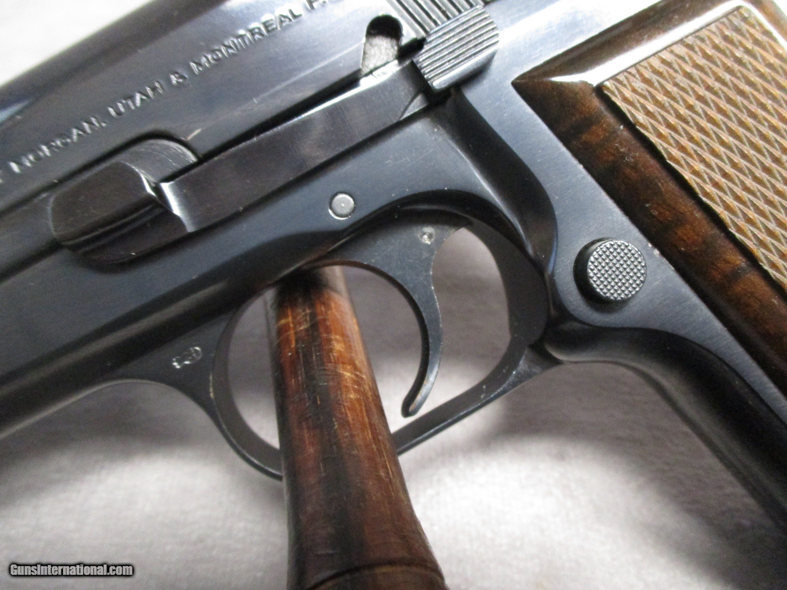 Description: This is the first successful double-stack pistol and has seen service all over the world since 1935. Originally designed by John Moses Browning in the early 1920’s, the prototype was refined over time into the early 1930’s. As Browning had passed away in 1926, the pistol continued to be refined by Dieudonne Saive and he modified the pistol with a staggered column magazine of his design. This gave the pistol an unusually high capacity for the time. The pistol was finally put into production in 1935 as the Grande Puissance Model of 1935. The term Grande Puissance literally means “High Power”. Although rejected by the French military in favor of an inferior design, dozens of other countries adopted the High power. It was used by both Allied and Axis powers during World War Two. It was thought of highly enough by the Germans that they forced the FN factory to continue production of the pistol under the designation of Pistole 640(b) (where “b” stands for “belgisch” or “Belgian”). It was frequently seen in the hands of the Waffen-SS and the Fallschirmja?ger (paratroopers). On the Allied side, it was used by the Special Operations Executive (SOE), the Office of Strategic Services (OSS) and the Special Air Service (SAS). The primary reason for this of course was the pistol’s high capacity and reliability in extreme conditions. The pistol is still in use in many places around the world. The Hi Power chambered for the .40 S&W was announced at the 1993 Shot Show. Compared to the 9mm version, the .40 cal. version has an extra recoil lug on its barrel and a matching recess inside the slide that is ¼” longer than the original. The High Power here is in great condition. There is one noticeable spot of finish loss due to pitting on top of the slide. Otherwise the finish is excellent. The bore is very bright with no pitting. The grips barely have a mark on them and the screws are not buggered. The recoil spring is very strong and can be a little difficult to rack sometimes. This is standard for the Hi Power when chambered for the .40 S&W. The pistol comes with its original box, paperwork, and two magazines. SOLD Handgun Caliber: .40 Smith & Wesson (.40 Auto, 10 x 21 mm) Manufacturer: Browning Arms Co. Model: Hi Power Serial Number: 513MW50108 Bore: Rifled, Right Hand twist Condition: Good to Excellent Barrel Type: Round Action: Semi-Auto, Short recoil, Locked Breech Triggers: Single action, single stage Stock: Checkered wood Finish: Blued, high gloss Sights: Fully-adjustable rear, ramp front sight, sight radius 6.875 inches (174.625 mm) Manufacture Date: 2004 Extras: Spare magazine Case: Browning factory box |