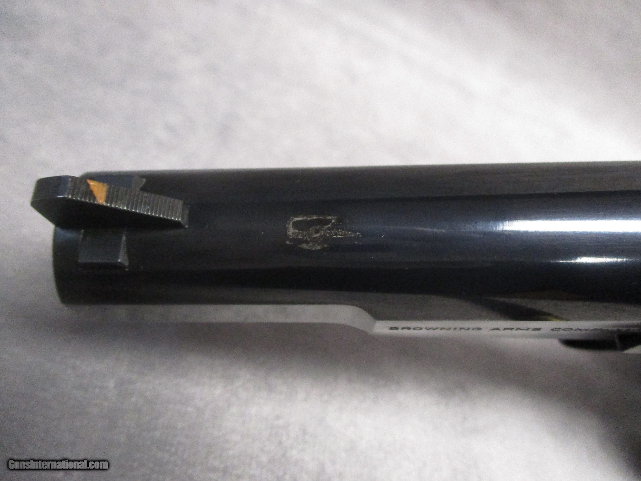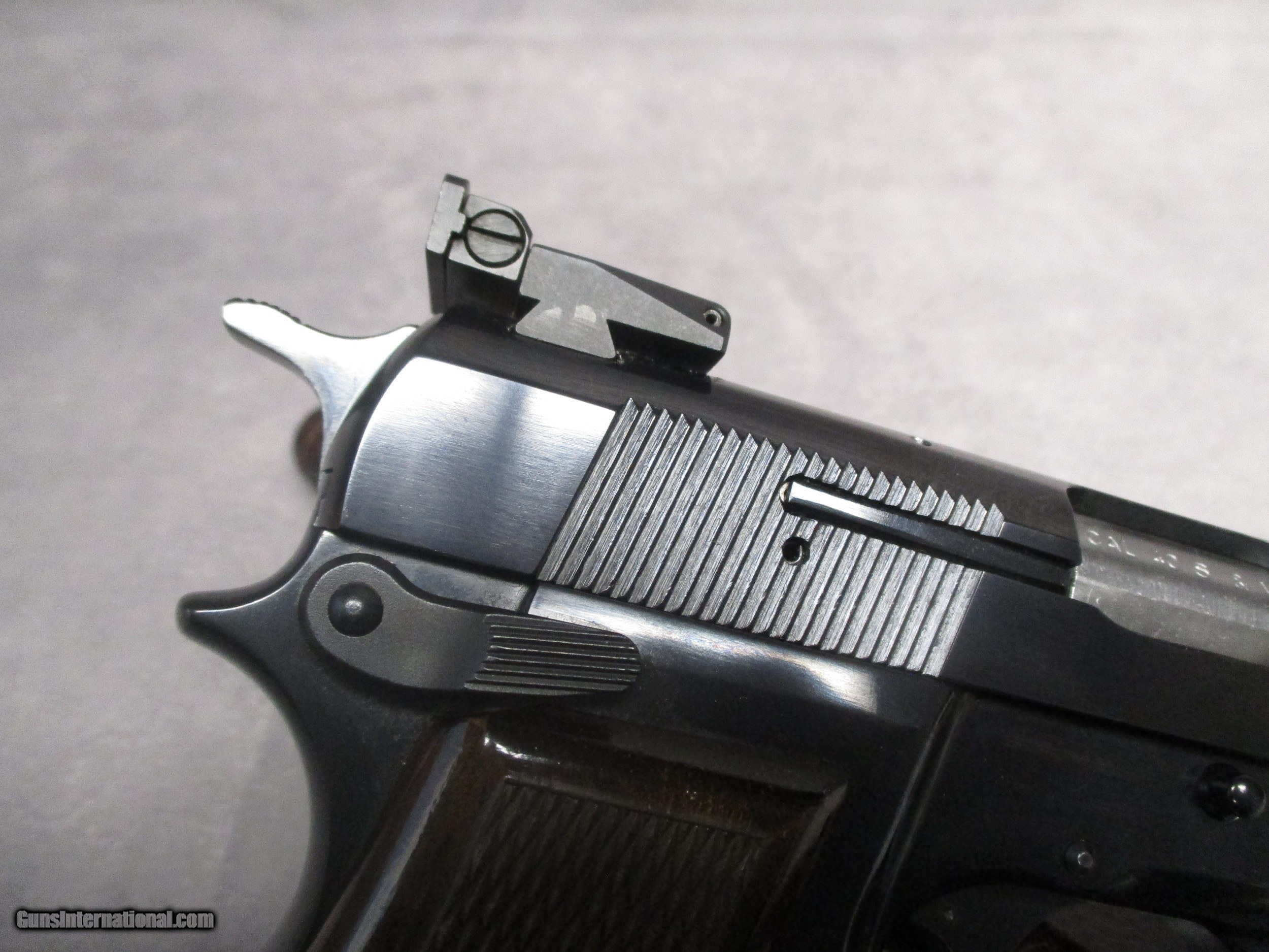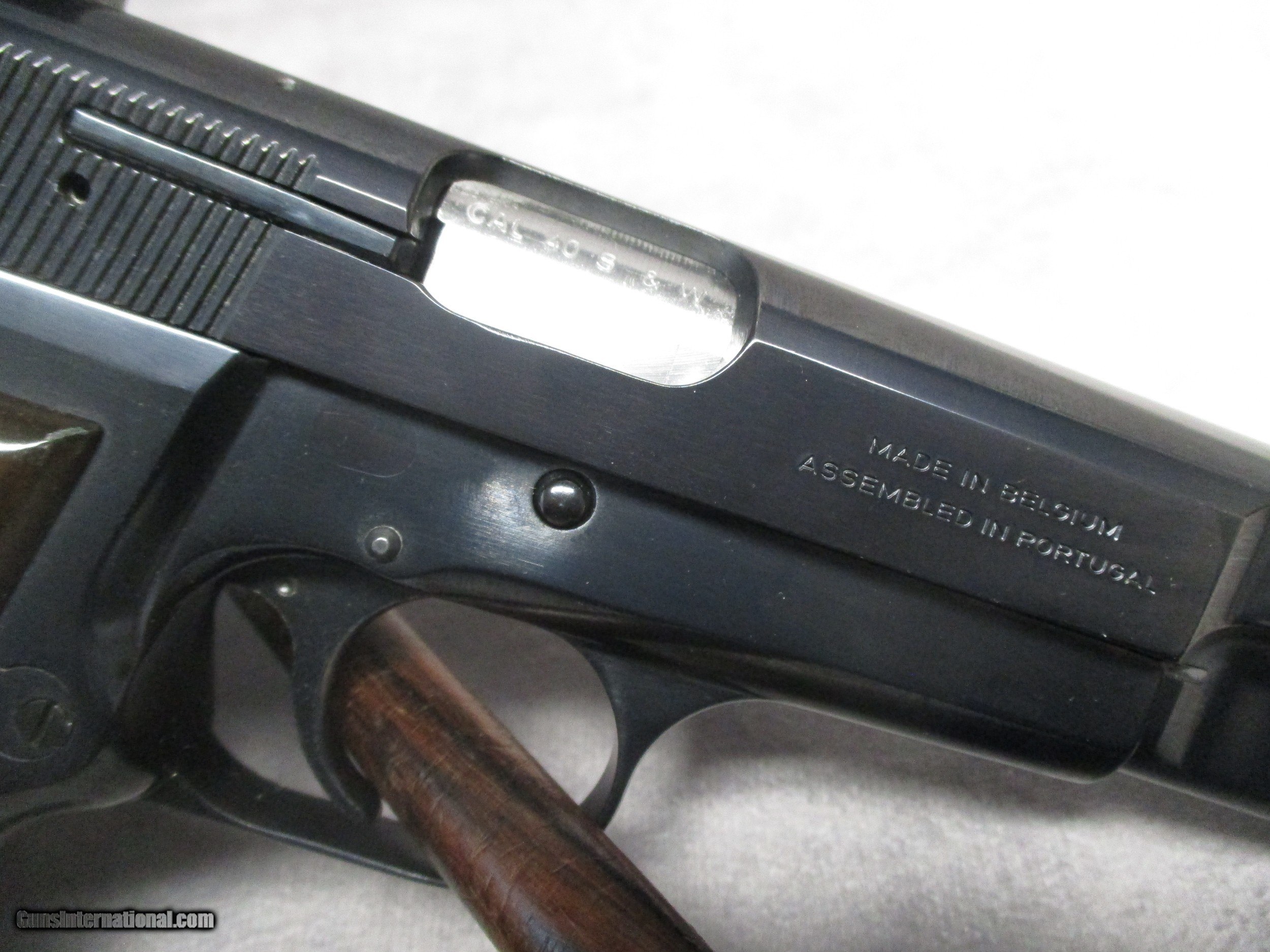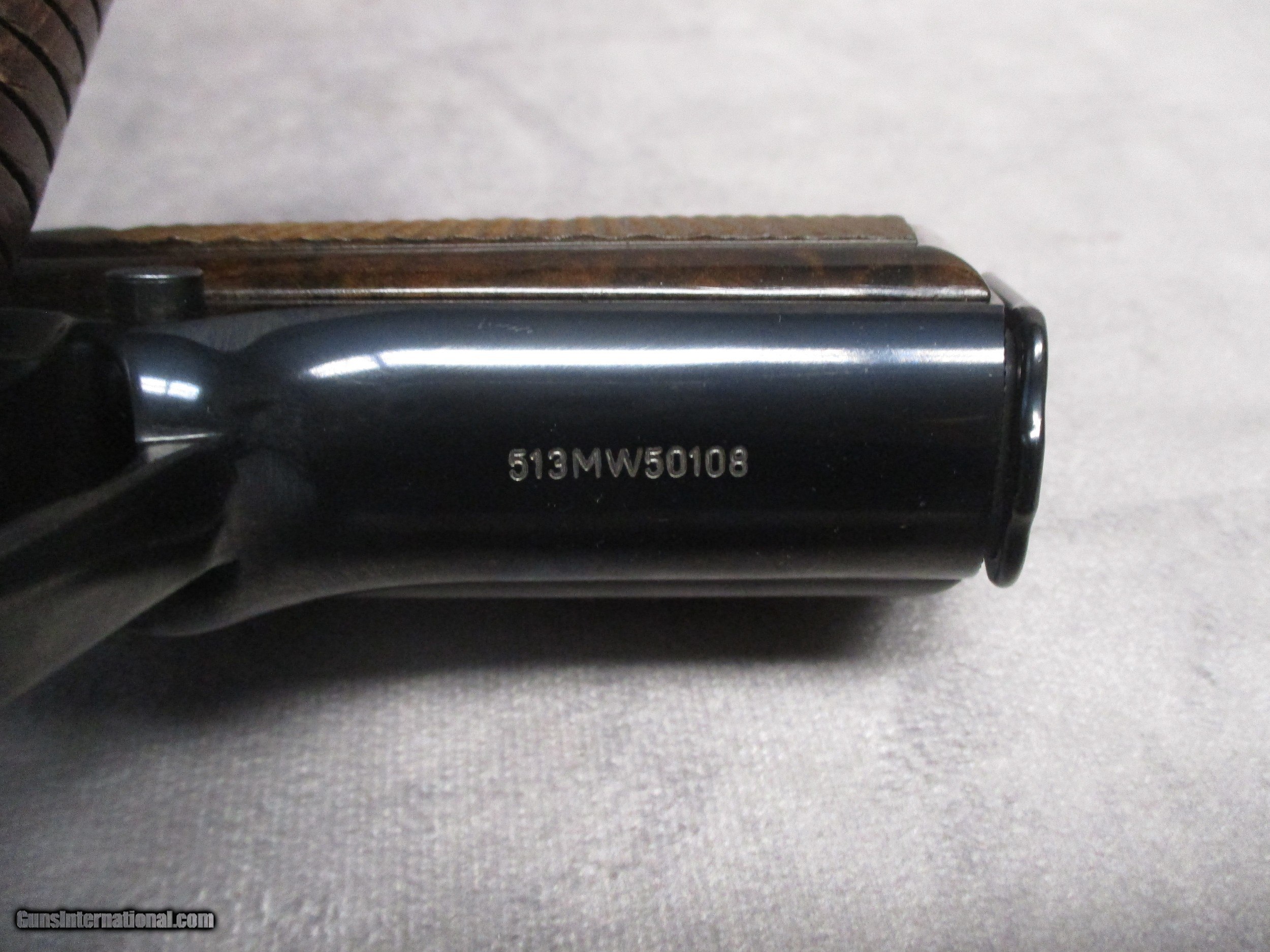 Description: This is the first successful double-stack pistol and has seen service all over the world since 1935. Originally designed by John Moses Browning in the early 1920’s, the prototype was refined over time into the early 1930’s. As Browning had passed away in 1926, the pistol continued to be refined by Dieudonne Saive and he modified the pistol with a staggered column magazine of his design. This gave the pistol an unusually high capacity for the time. The pistol was finally put into production in 1935 as the Grande Puissance Model of 1935. The term Grande Puissance literally means “High Power”. Although rejected by the French military in favor of an inferior design, dozens of other countries adopted the High power. It was used by both Allied and Axis powers during World War Two. It was thought of highly enough by the Germans that they forced the FN factory to continue production of the pistol under the designation of Pistole 640(b) (where “b” stands for “belgisch” or “Belgian”). It was frequently seen in the hands of the Waffen-SS and the Fallschirmja?ger (paratroopers). On the Allied side, it was used by the Special Operations Executive (SOE), the Office of Strategic Services (OSS) and the Special Air Service (SAS). The primary reason for this of course was the pistol’s high capacity and reliability in extreme conditions. The pistol is still in use in many places around the world. The Hi Power chambered for the .40 S&W was announced at the 1993 Shot Show. Compared to the 9mm version, the .40 cal. version has an extra recoil lug on its barrel and a matching recess inside the slide that is ¼” longer than the original. The High Power here is in great condition. There is one noticeable spot of finish loss due to pitting on top of the slide. Otherwise the finish is excellent. The bore is very bright with no pitting. The grips barely have a mark on them and the screws are not buggered. The recoil spring is very strong and can be a little difficult to rack sometimes. This is standard for the Hi Power when chambered for the .40 S&W. The pistol comes with its original box, paperwork, and two magazines. SOLD Handgun Caliber: .40 Smith & Wesson (.40 Auto, 10 x 21 mm) Manufacturer: Browning Arms Co. Model: Hi Power Serial Number: 513MW50108 Bore: Rifled, Right Hand twist Condition: Good to Excellent Barrel Type: Round Action: Semi-Auto, Short recoil, Locked Breech Triggers: Single action, single stage Stock: Checkered wood Finish: Blued, high gloss Sights: Fully-adjustable rear, ramp front sight, sight radius 6.875 inches (174.625 mm) Manufacture Date: 2004 Extras: Spare magazine Case: Browning factory box |