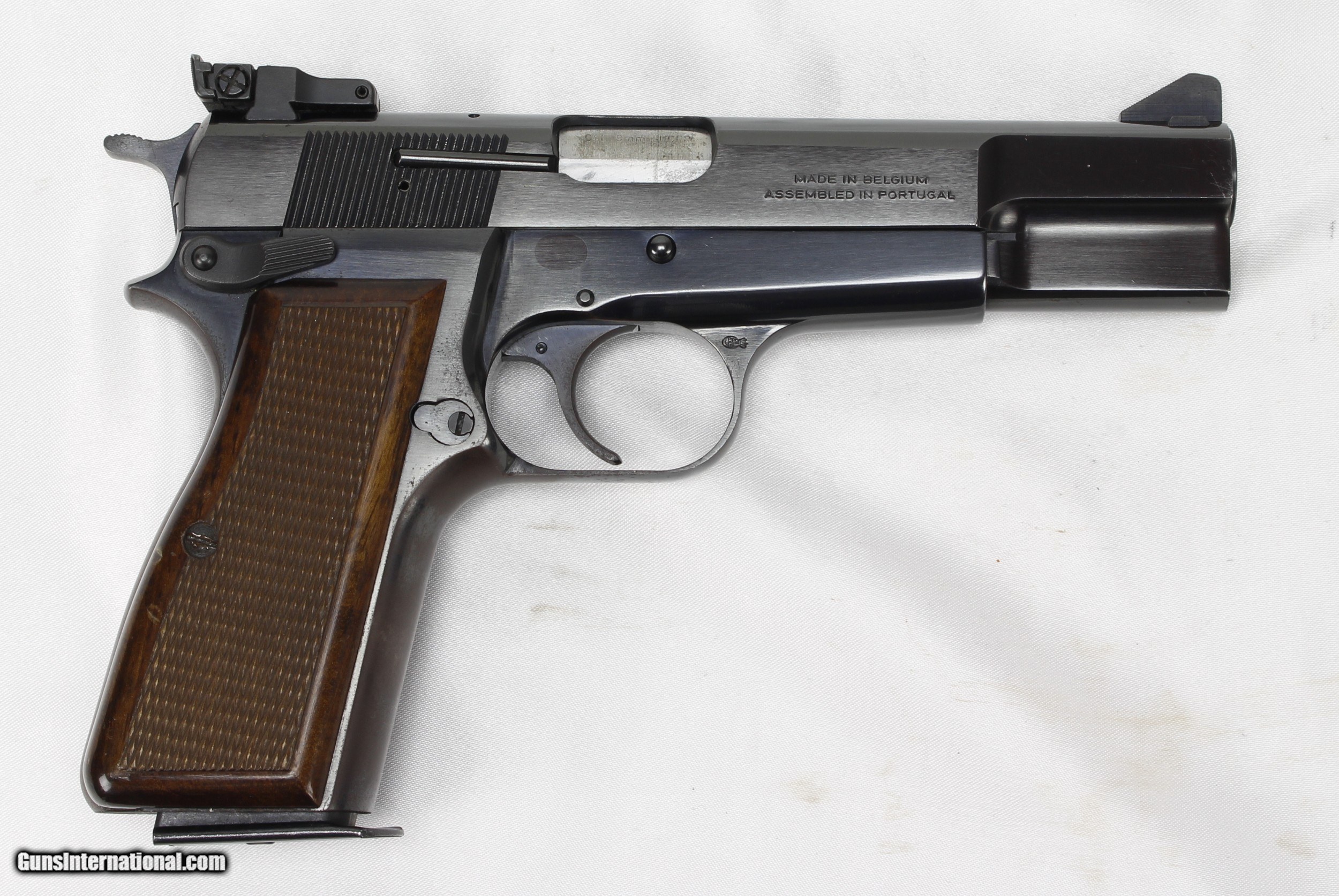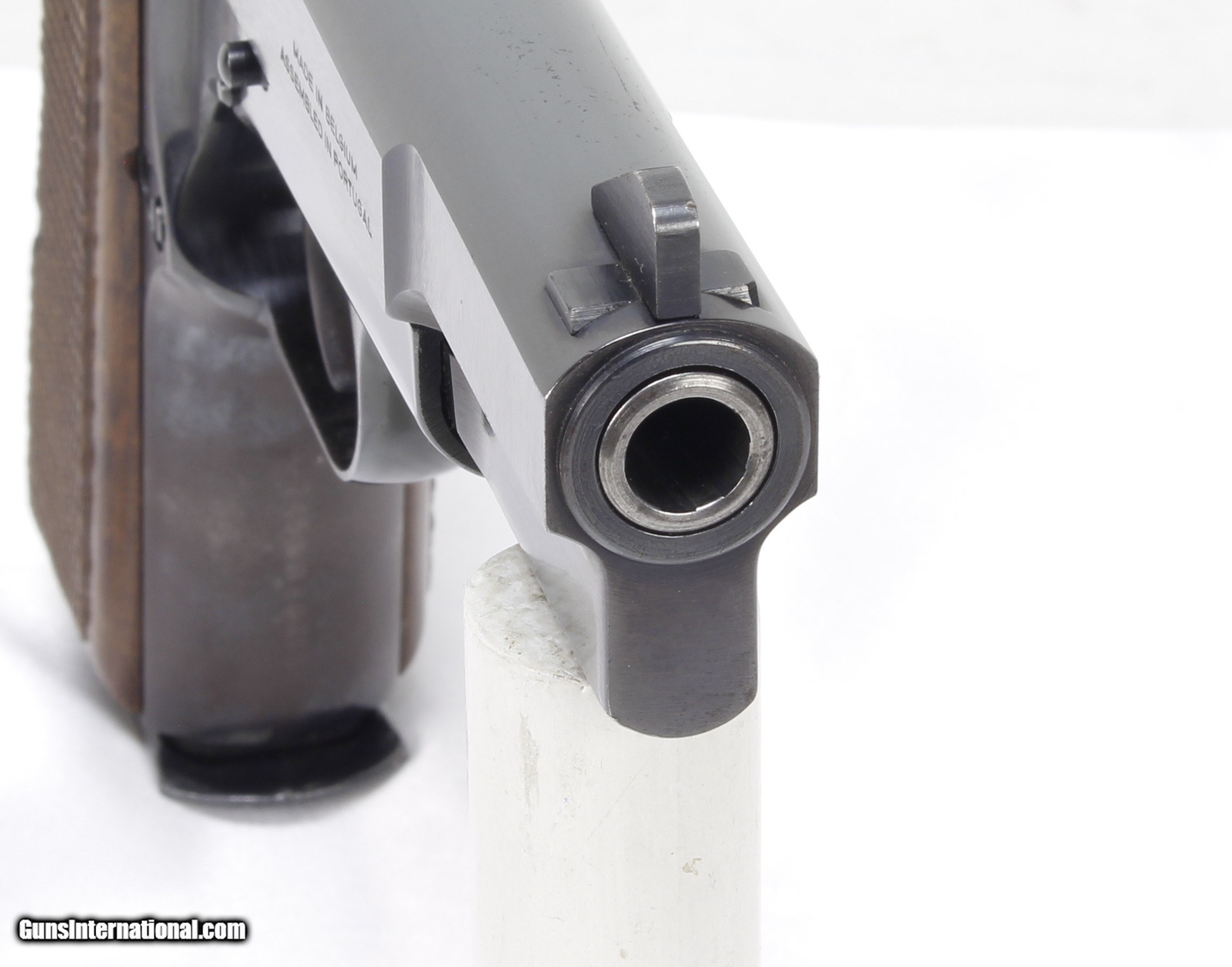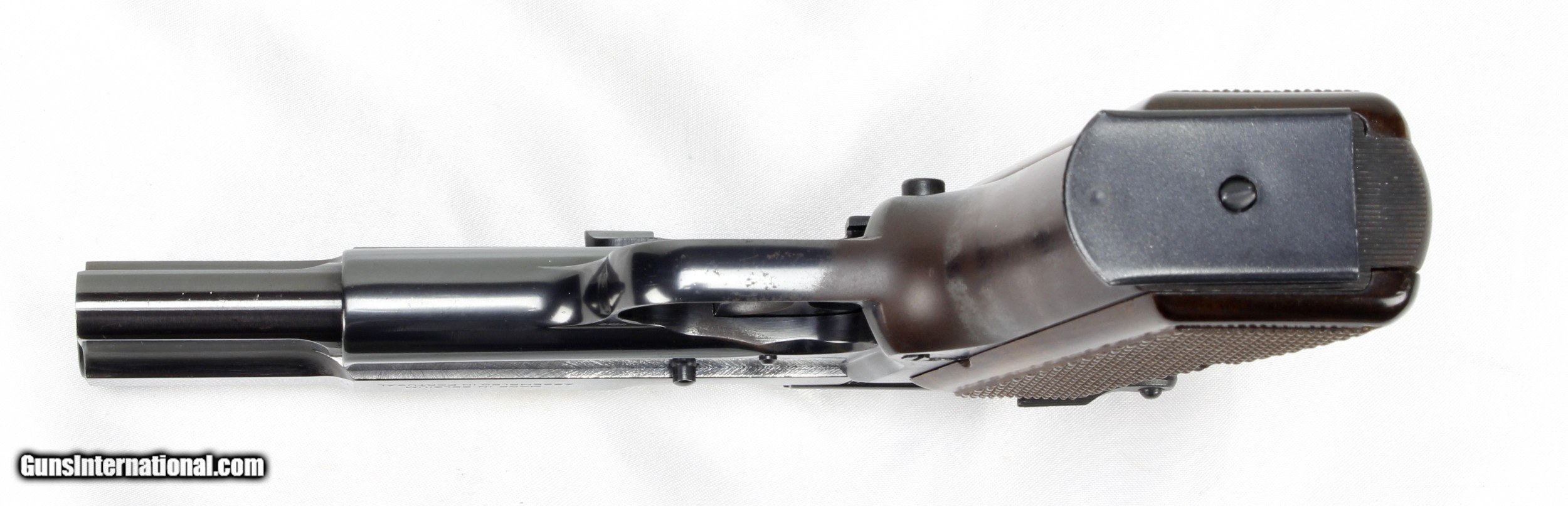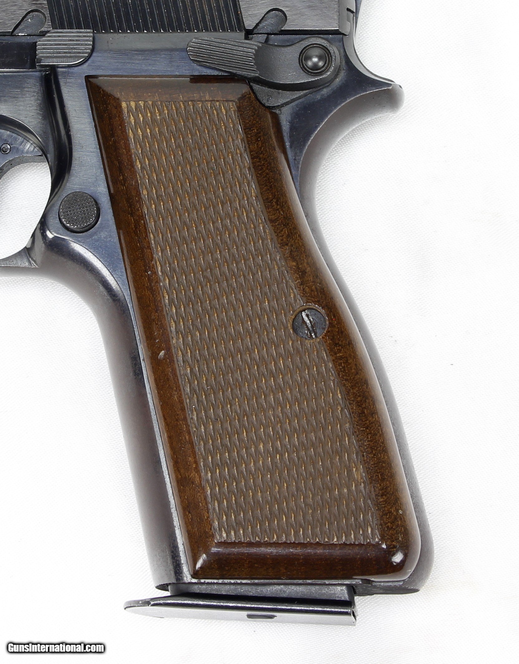 Description: This listing is for a Very Good Browning Hi-Power in 9 mm caliber, s/n: 245NW80317, mfr'd in 1994. Made in Belgium, assembled in Portugal. Excellent mechanical condition, Good blue with some freckling on right side of frame near mag release and strong patina on front and back straps. Checkered wood grips are in great shape, bore is excellent! Rear sight is adjustable for windage and elevation, external extractor, ambidextrous safety. $1399.00 plus $35.00 shipping to lower 48 SOLD Handgun Caliber: 9x19mm Parabellum (9mm Luger, 9x19mm NATO) |