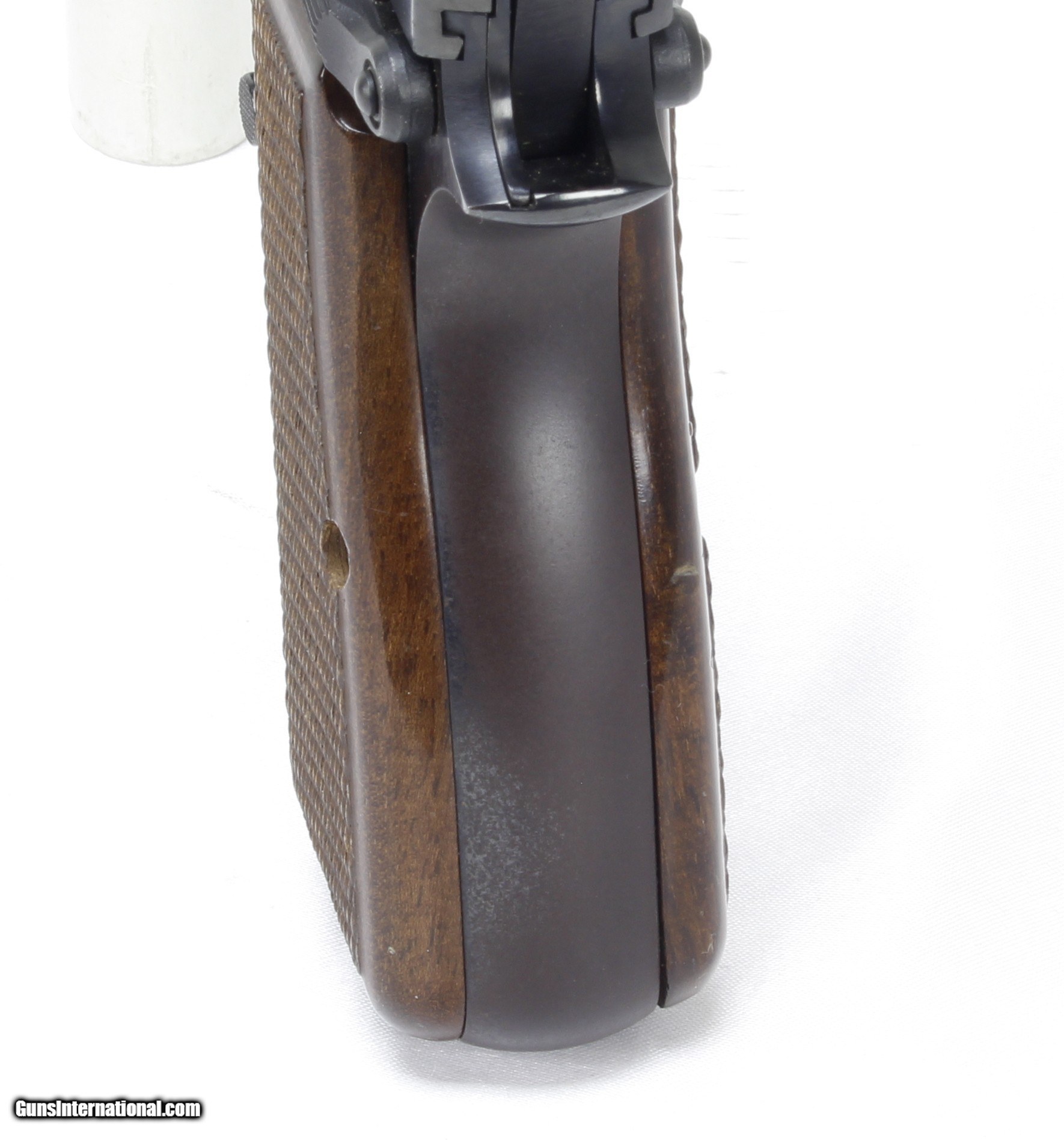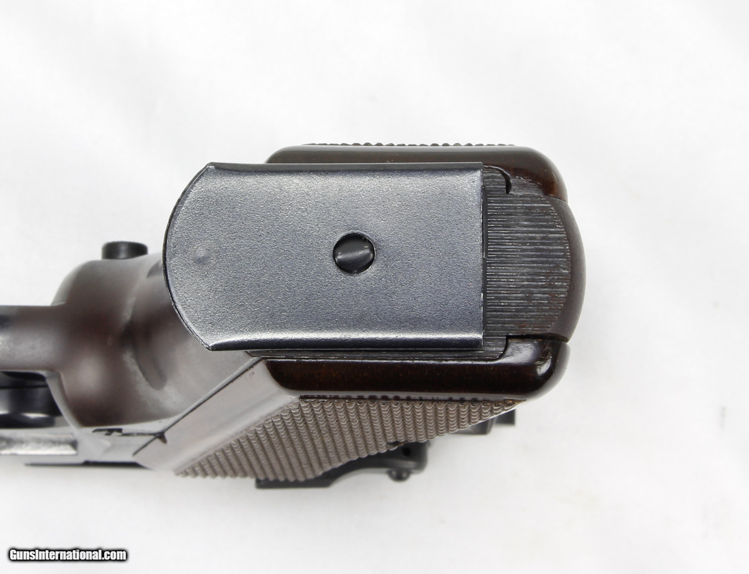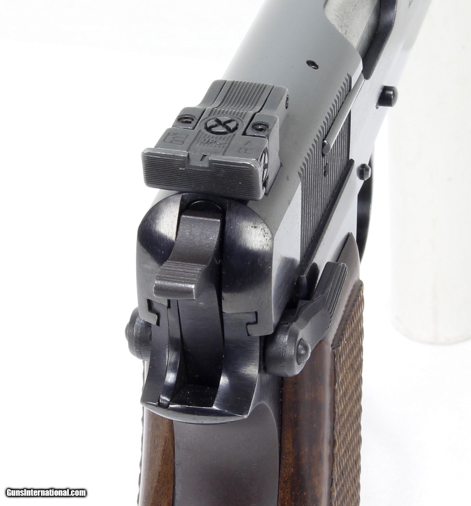 Description: This listing is for a Very Good Browning Hi-Power in 9 mm caliber, s/n: 245NW80317, mfr'd in 1994. Made in Belgium, assembled in Portugal. Excellent mechanical condition, Good blue with some freckling on right side of frame near mag release and strong patina on front and back straps. Checkered wood grips are in great shape, bore is excellent! Rear sight is adjustable for windage and elevation, external extractor, ambidextrous safety. $1399.00 plus $35.00 shipping to lower 48 SOLD Handgun Caliber: 9x19mm Parabellum (9mm Luger, 9x19mm NATO) |