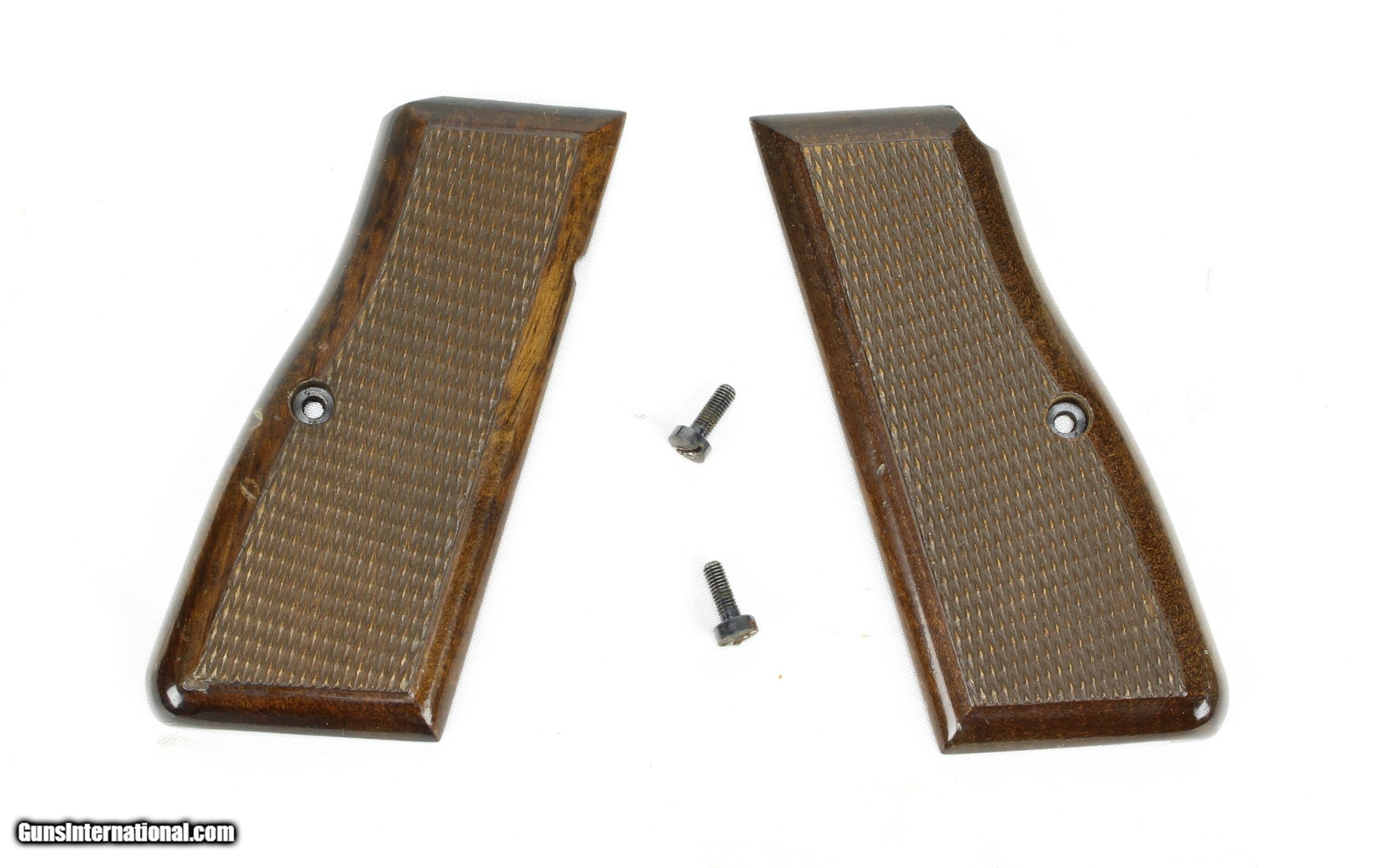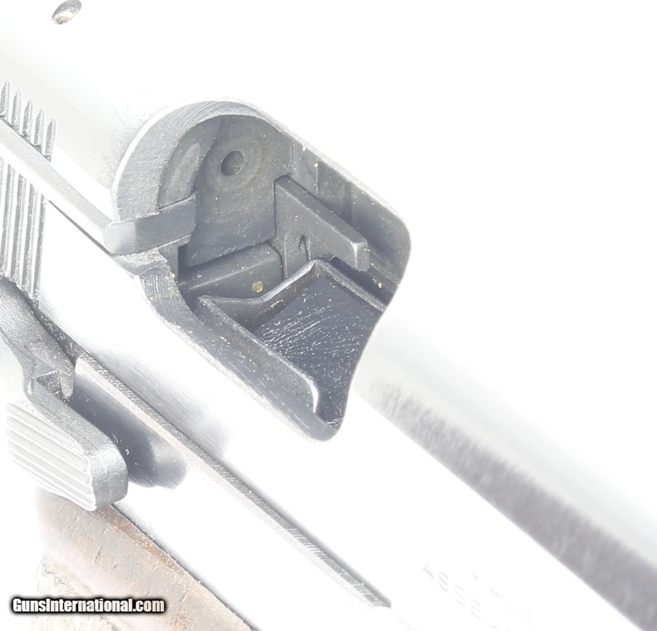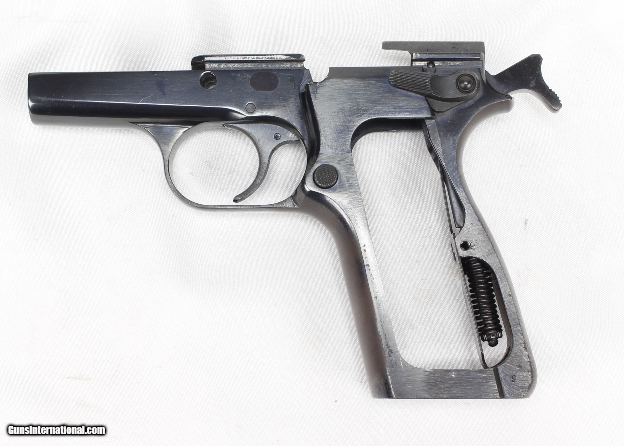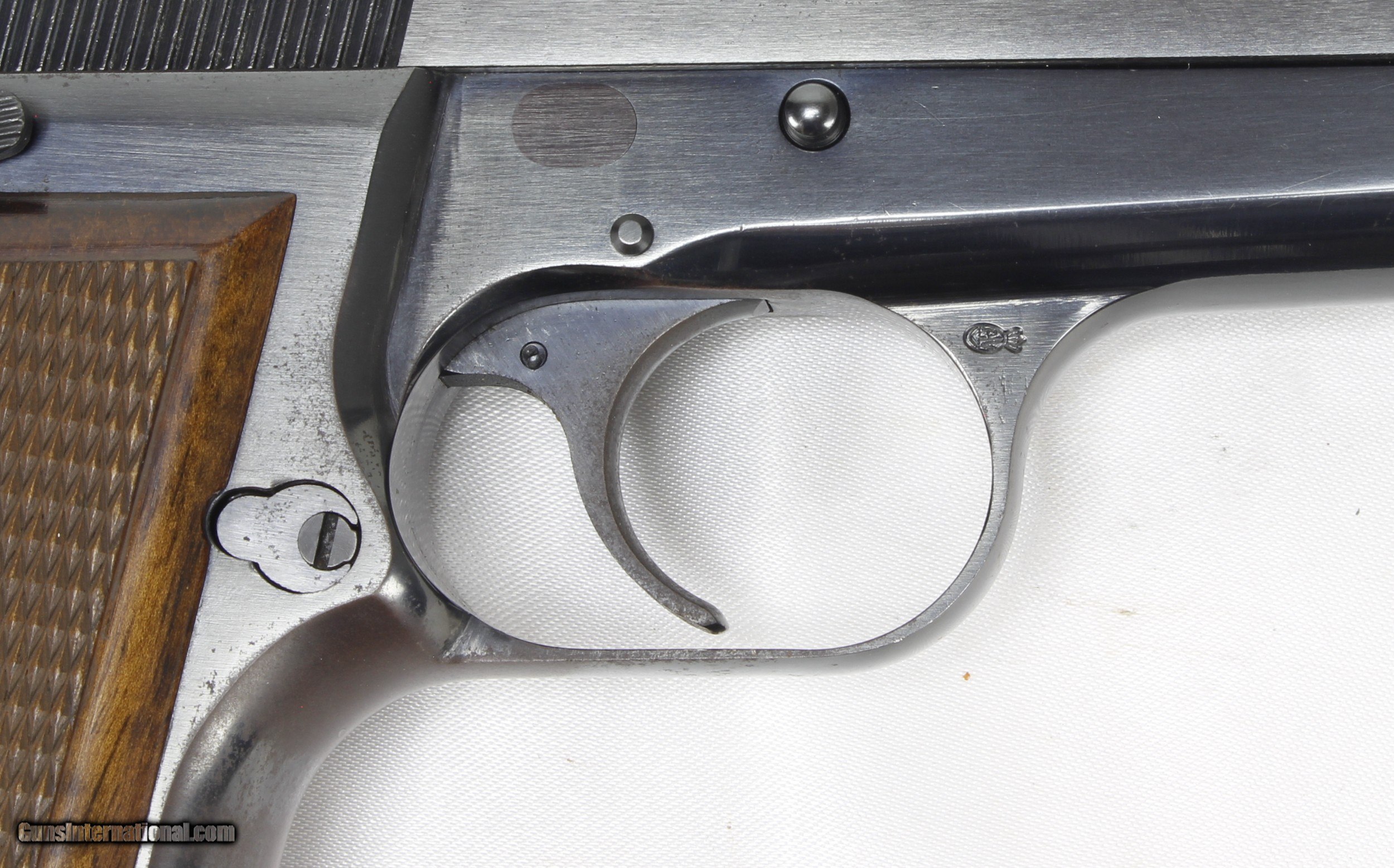 Description: This listing is for a Very Good Browning Hi-Power in 9 mm caliber, s/n: 245NW80317, mfr'd in 1994. Made in Belgium, assembled in Portugal. Excellent mechanical condition, Good blue with some freckling on right side of frame near mag release and strong patina on front and back straps. Checkered wood grips are in great shape, bore is excellent! Rear sight is adjustable for windage and elevation, external extractor, ambidextrous safety. $1399.00 plus $35.00 shipping to lower 48 SOLD Handgun Caliber: 9x19mm Parabellum (9mm Luger, 9x19mm NATO) |
