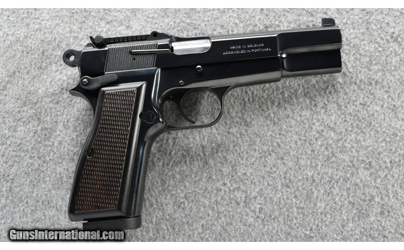 Description: Manufactured in Belgium, assembled in Portugal. With matching factory case, extra magazine and papers. Made in 2003 9mm Luger SOLD Chambers: 9 mm Luger in a fifteen round detachable magazine semi-automatic pistol Metal Condition: "Very good, appears near new Bore Condition: Bright and sharp Barrels: 4.7 Triggers: Single Action Only Weight: 34 oz. Sights: "Drift adjustable blade front, Tangent leaf rear Item Location: Grand Junction, CO |