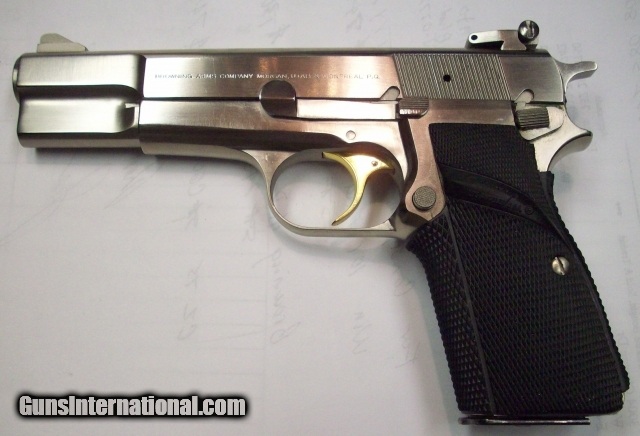 Description: This Browning Hi Power 9mm cal. is a Bright Stainless gun with a gold trigger. The pistol looks NEW. $1400.00. rmgrigolettoyahoo 732 280 8750. SOLD |