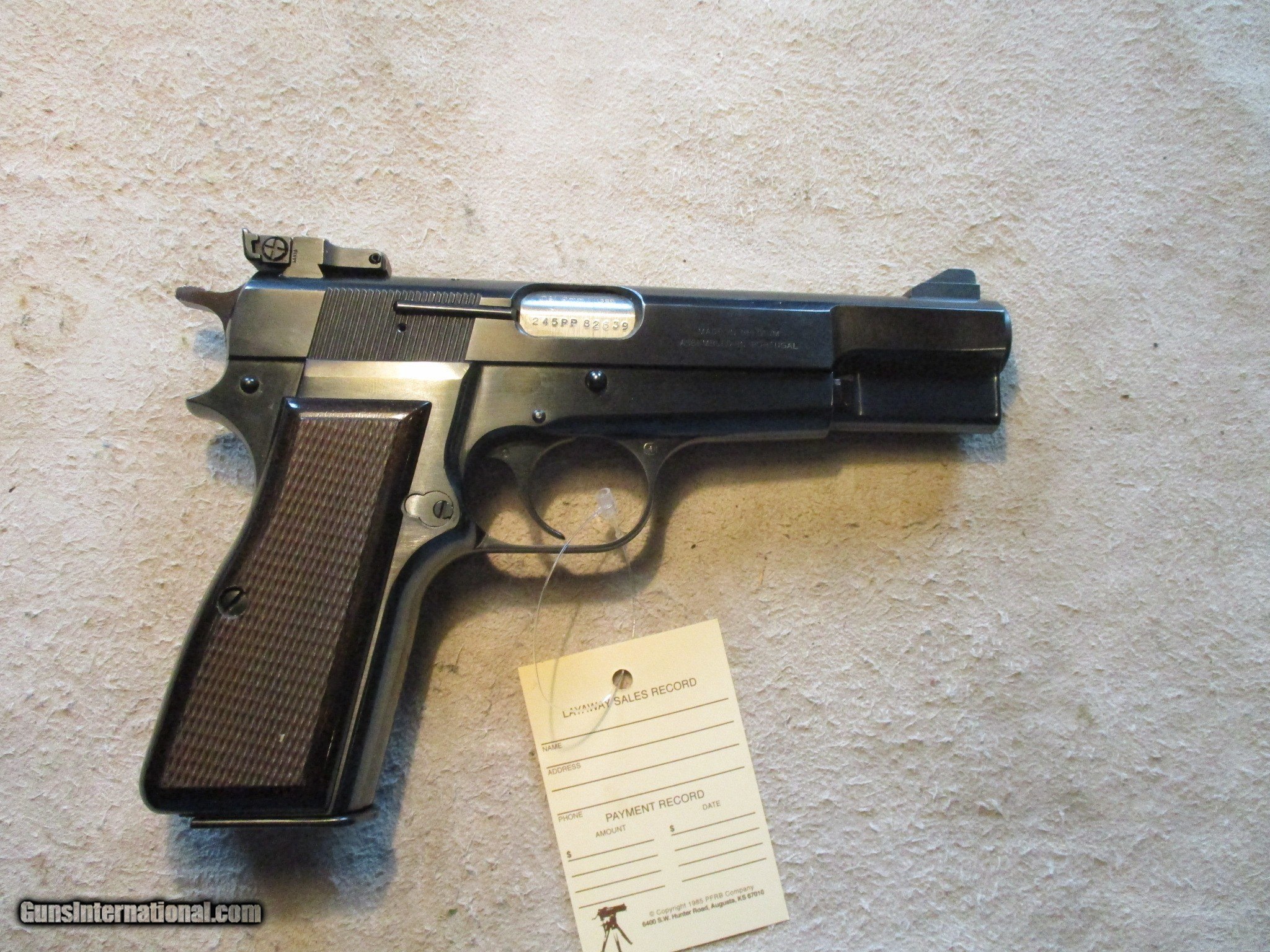 Description: Browning Hi-Power, 9mm, Made in Belgium, SN is 245PP82639, made in 1988. Clean all original gun! We will trade for silver and gold. has now started collecting tax for states that mandate it, if applicable they will add it to your total. Email me if you would like these pictures sent to you, they will come through bigger and better than on the listing page here. We do offer Layaway. Our standard terms are 25% down, 90 days. Initial deposit is not refundable. Email me with any questions. Please check your local laws to confirm it is legal to own in your state! Buyer pays $25 shipping and insurance to your FFL in the lower 48. AK, HI or PR is extra. I will ship to California, NO PROBLEM! All my guns come with a non-firing, 3 day unconditional return privilege, from the day UPS delivers to your dealer. Buyer pays shipping both ways if the gun comes back. I can add a new hard case by PLANO for secure shipping for $25 if the buyer wishes (highly recommended, cheap insurance, really helps keep the UPS monster from eating my guns!). Guns sold in Kansas are subject to Kansas sales tax. I am a licensed FFL, and will include a copy of my FFL with the gun for your dealer’s records. I will ship to a C&R if the gun is eligible. I will ship to California, but you need to confirm the gun is legal where you are, California or other. WE BUY AND CONSIGN GUNS AND GUN COLLECTIONS! We will travel to pick up collections! I am always looking for good clean, old original Winchesters to buy, consign, or trade, especially Pre '64's model 70's and model 54's. WE ALSO TRADE FOR CLASSIC CARS AND TRUCKS! We also trade for gold and silver. SOLD Manufacturer: Browning Model: Hi-Power Condition: Used |
