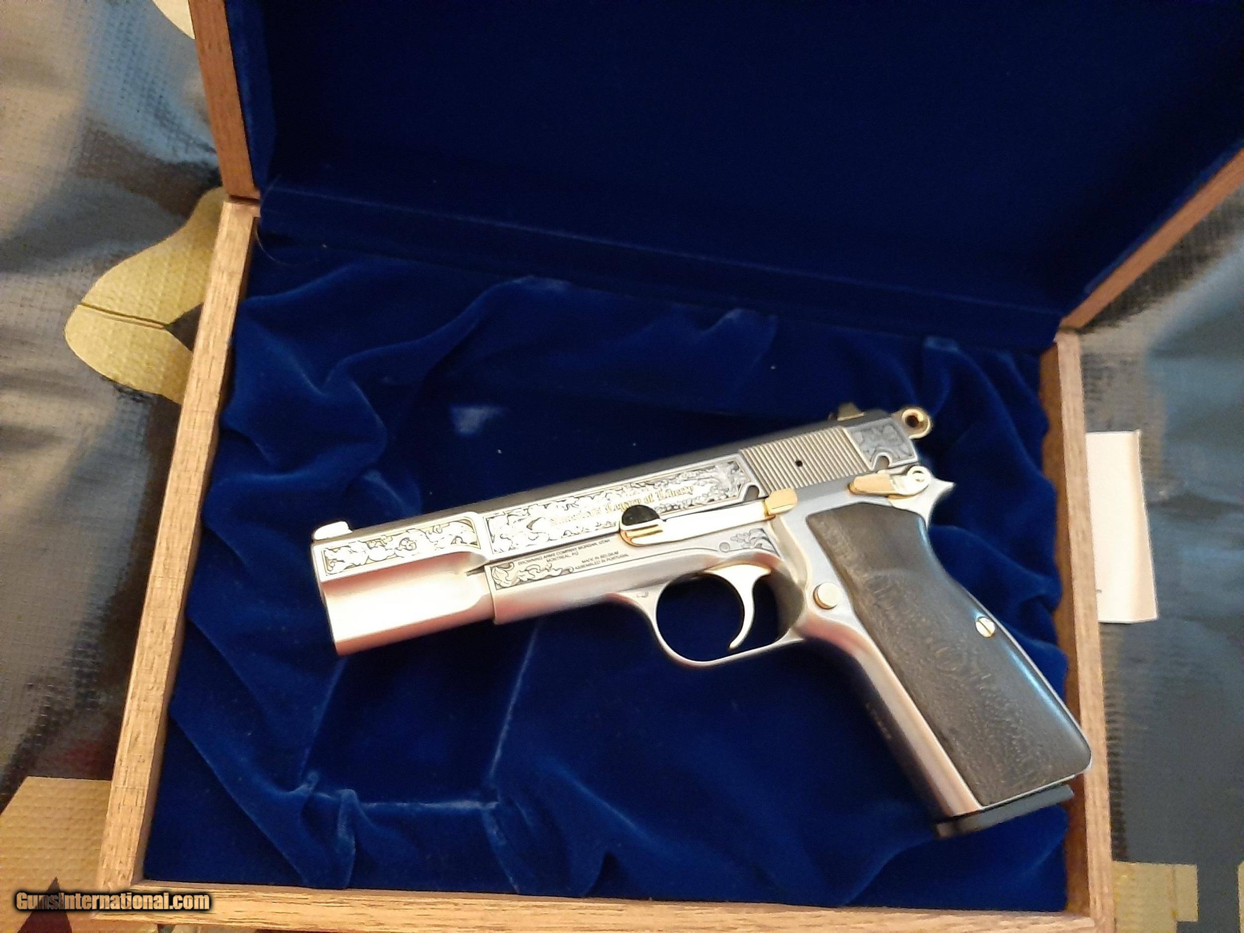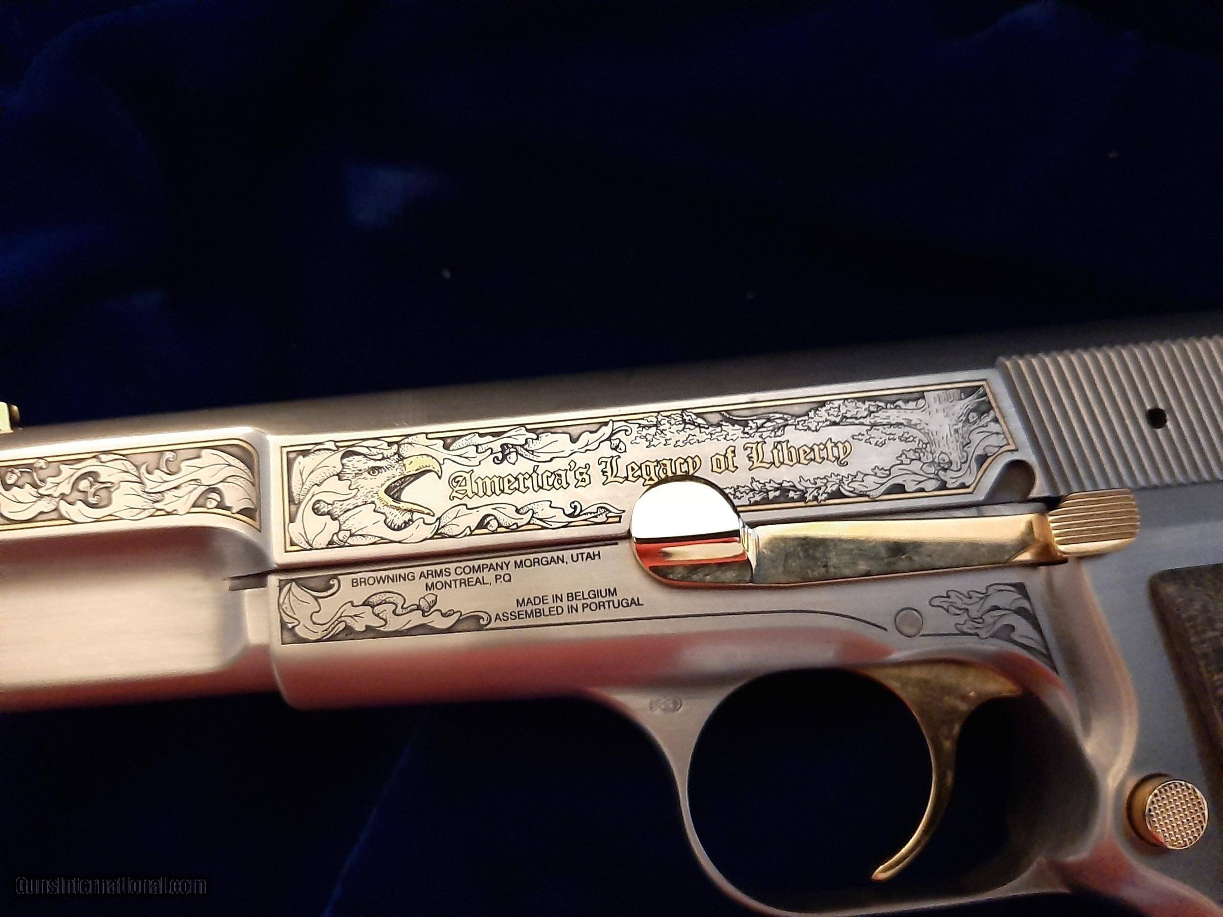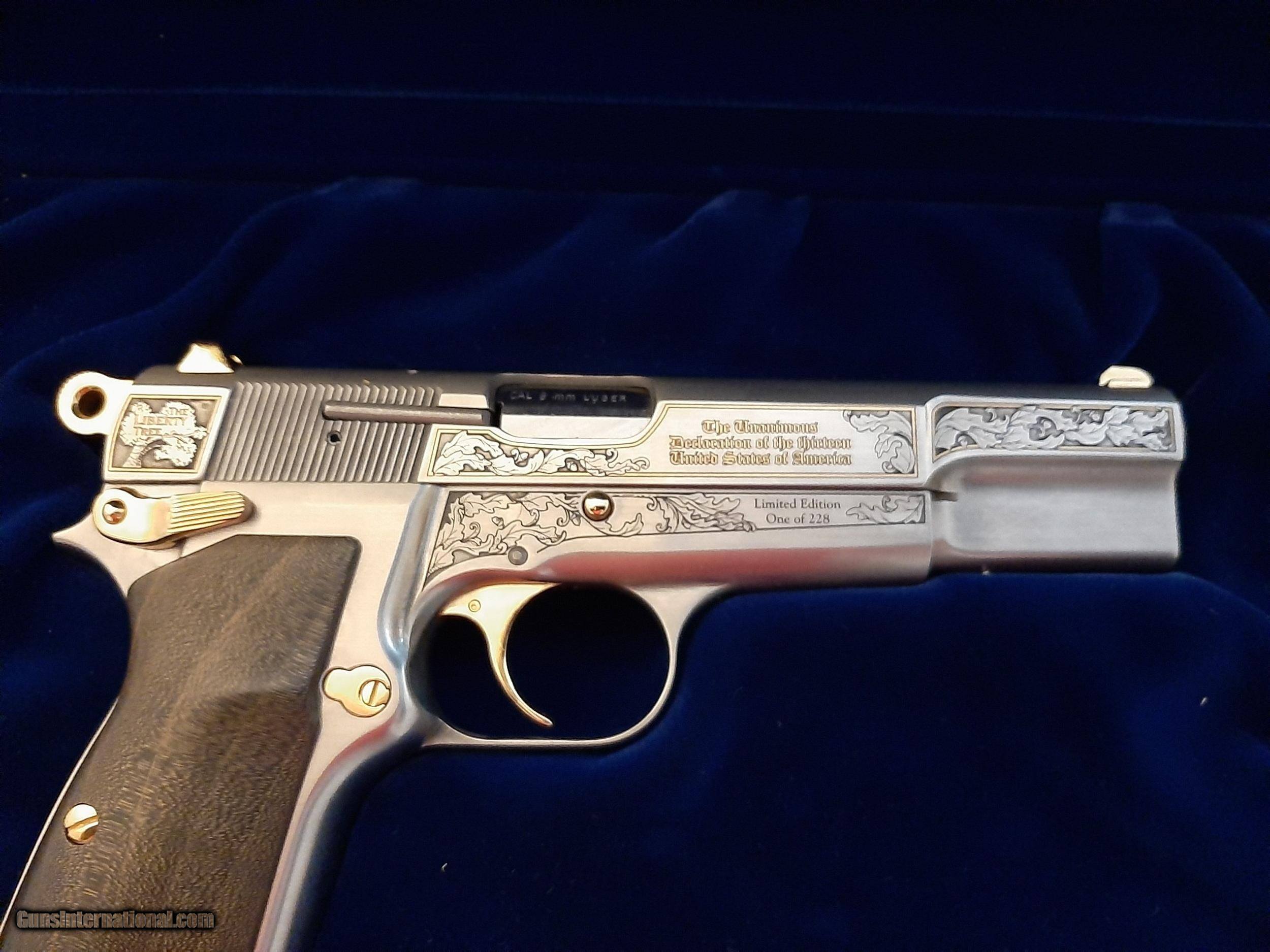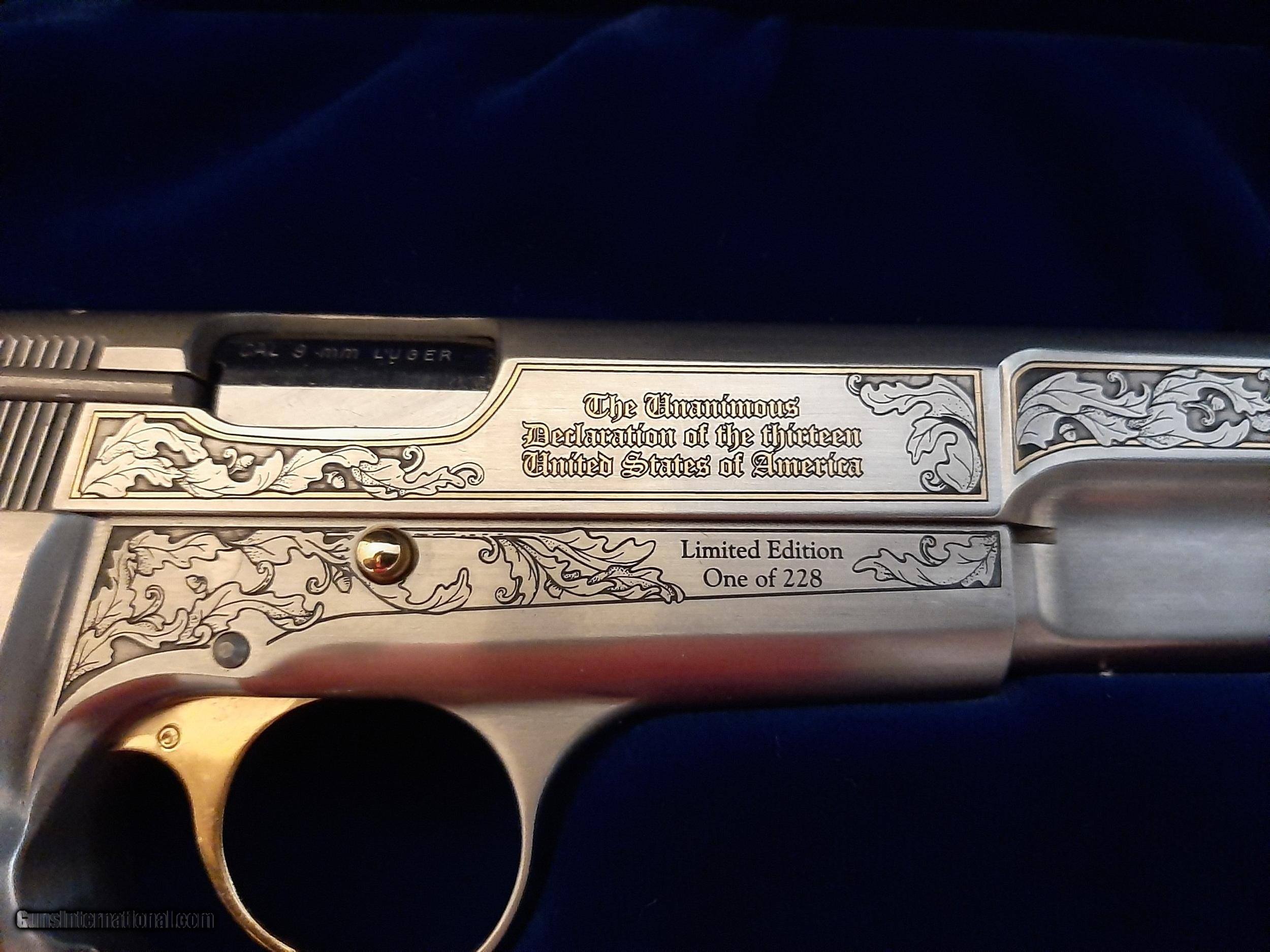 Description: Browning Hi Power 9MM Liberty Tree Commemorative. Only 228 Produced, New in Presentation Case. Credit Cards add 3%. Shipping and Insurance is 35.00. SOLD Handgun Caliber: 9x19mm Parabellum (9mm Luger, 9x19mm NATO) |