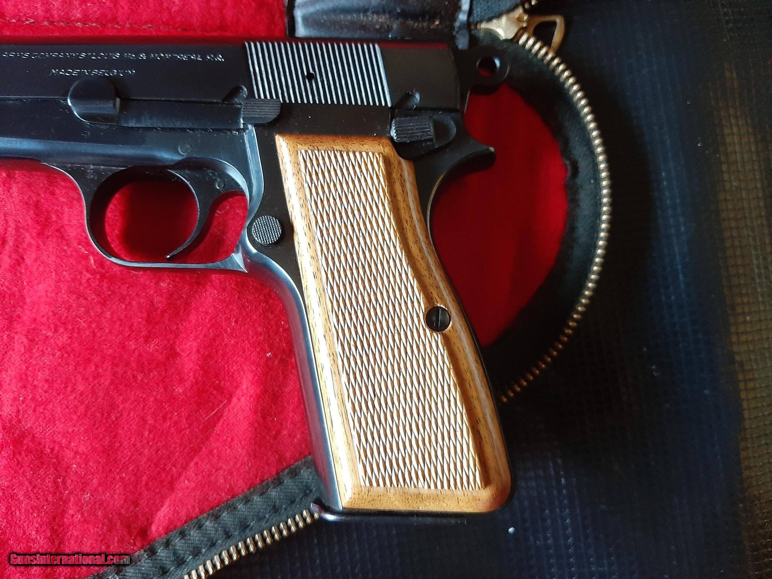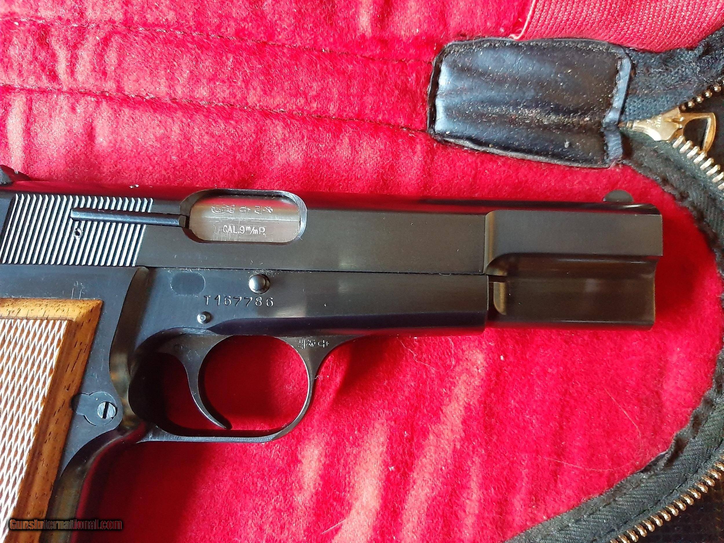 Description: Browning Model Hi Power T Series 9MM that is Like New in Browning factory Pouch. Made in 1966. Comes with one Magazine. All original with Red back grips. Credit Cards add 3%. Shipping and Insurance is 35.00. SOLD Handgun Caliber: 9x19mm Parabellum (9mm Luger, 9x19mm NATO) |