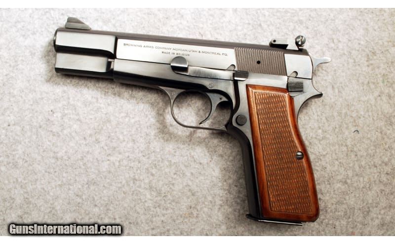 Description: This Browning Model Hi-Power is a right hand semi-auto pistol in 9MM Luger. It has a 4.5" barrel with a rear serrated slide. A blade front sight and a sliding adjustable notch rear sight. The grip panels are a checkered hardwood. 9mm Luger SOLD Metal Condition: Excellent Wood Condition: Excellent Bore Condition: Bright and shiny Barrels: 4.5 inches Weight: 2 lbs 3 oz Item Location: Scarborough, ME |