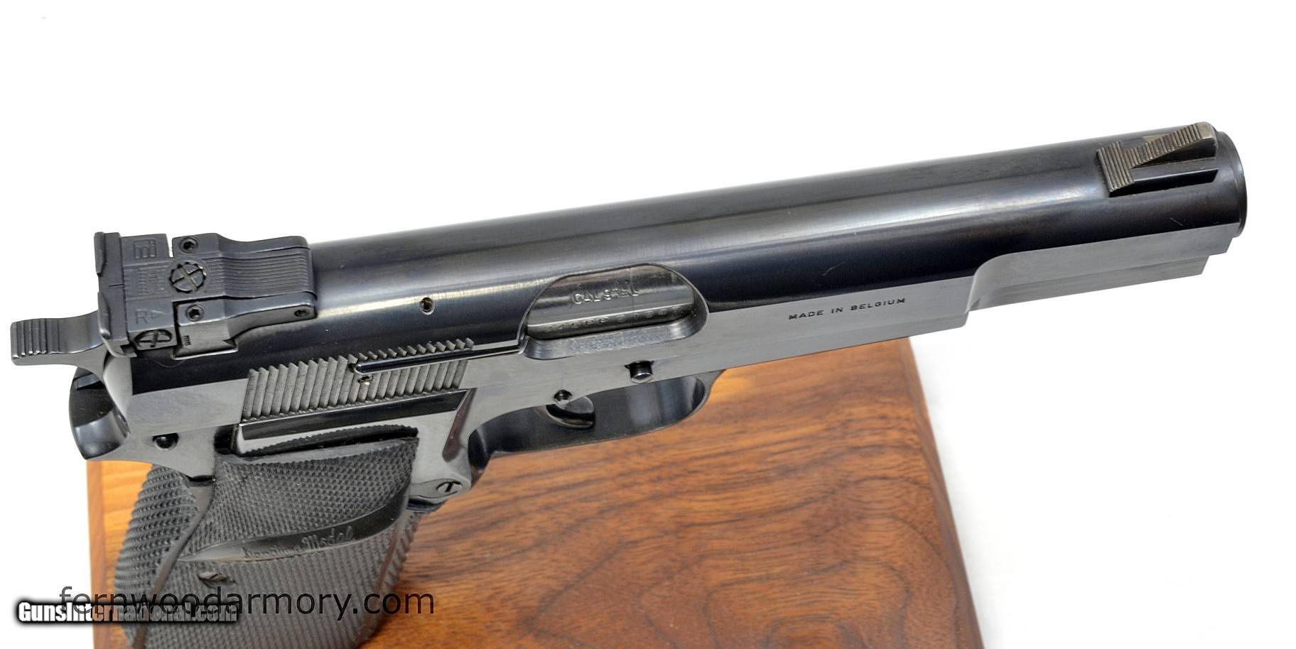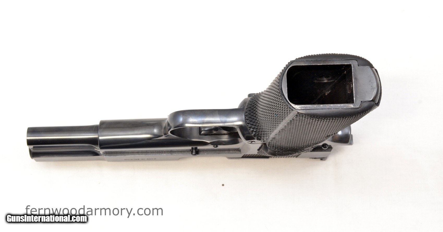 Description: Browning Hi Power 9mm pistol, used in excellent condition. This handgun was made in Belgium in 1988. This Hi Power has a 4 5/8" barrel, fixed front and adjustable rear sights. This one has rubber Pachmyr wraparound grips. The gun is marked "BROWNING ARMS COMPANY MORGAN UTAH & MONTREAL P.Q. " on the left side of the slide. On the right side it is marked "MADE IN BELGIUM". Overall condition is excellent, metal shows no scratches or pitting, bluing is about 98%. One 13 round magazine is included. No box or papers. This gun may not be legal to own in many states due to the magazine size. Please know your local laws before purchasing. TERMS OF SALE We are an FFL dealer. Guns listed for sale here are also for sale in our online store. We may remove this listing at any time. Firearms ship to FFL dealers, and/or C & R license holders if applicable. Free ground shipping for lower 48 states. All firearms ship insured for full value with signature required. Buyers must be 21 years old to purchase a handgun. Buyer is responsible for knowing local laws regarding age limits and waiting periods. Return policy for used guns: 3 day inspection, starting when firearm arrives at FFL. Buyer is responsible for return shipping, insurance required. $40 restock fee. Questions: email us or call 888-319-4811 Mon-Fri 9-5 Eastern SOLD Handgun Caliber: 9x19mm Parabellum (9mm Luger, 9x19mm NATO) Manufacturer: Browning Model: Hi Power Barrel Length: 4 5/8 Action: Semi-Auto Manufacture Date: 1988 |