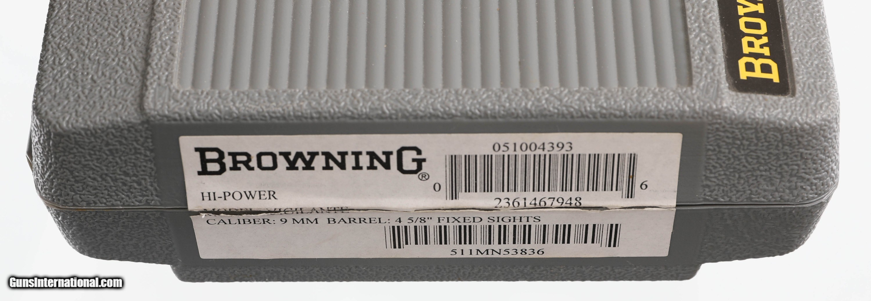 SOLD Handgun Caliber: 9x19mm Parabellum (9mm Luger, 9x19mm NATO) Manufacturer: BROWNING Model: HI-POWER Serial Number: 511MN538?? Barrel Length: 4 5/8 Condition: EXCELLENT |