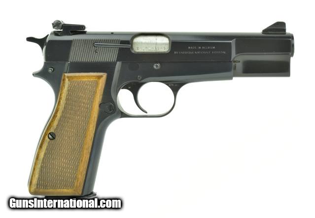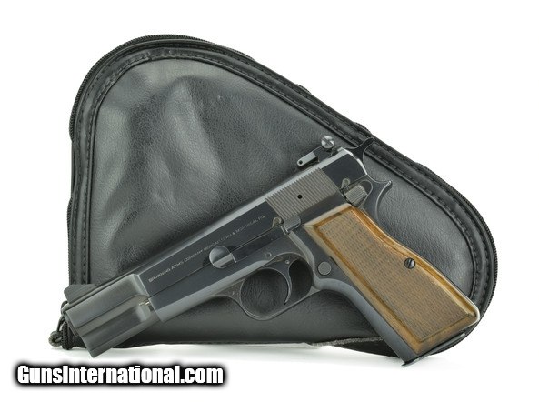 Description: Browning Hi-Power 9mm caliber pistol. Belgian made with adjustable rear sight. Excellent condition with pouch.