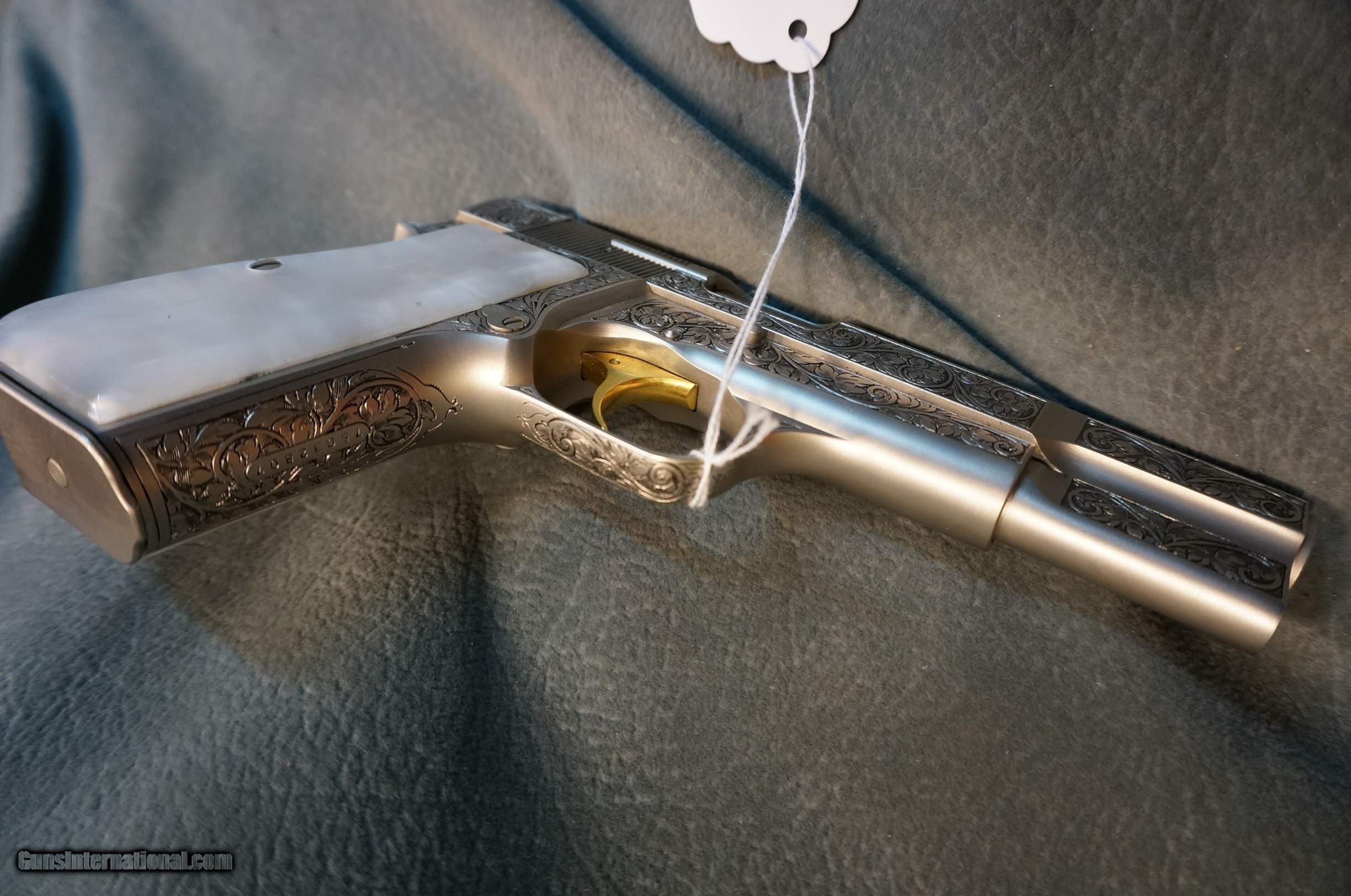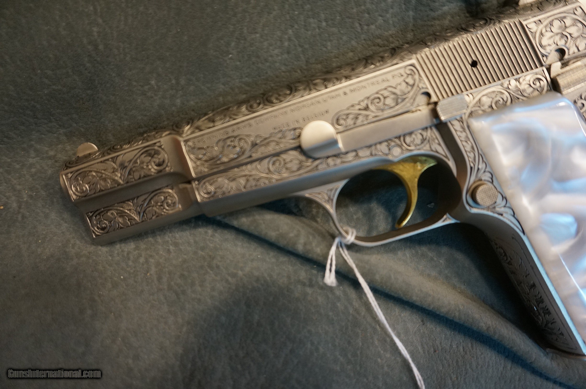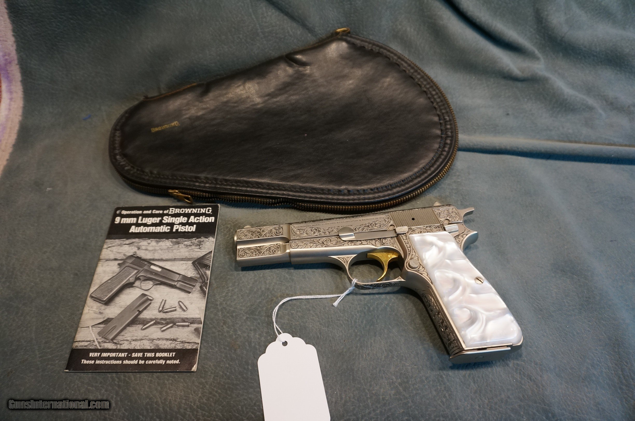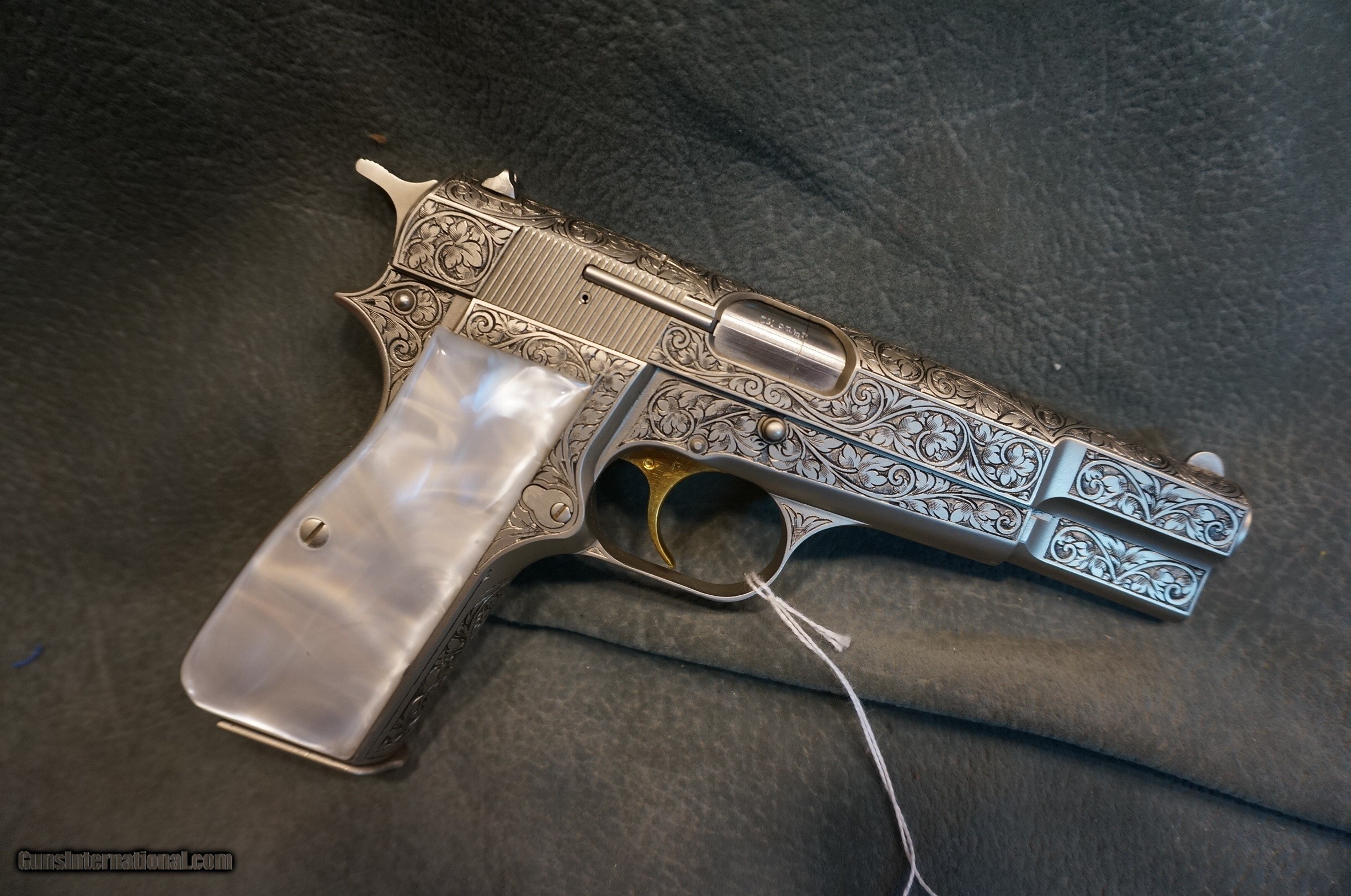 Description: Browning Hi Power Renaissance 9mm fully scroll engraved on grey silver slide and frame,gold trigger,made in 1975,as new condition with owners manual and black Browning case. GUN COLLECTIONS WANTED FOR CASH! We buy, sell, consign and trade new and used firearms. This is our 44th year in business. We offer 90 day layaways with 20% down. No return on layaways. Firearms will need to be transferred through a FFL dealer. Prices reflect a cash discount. There will be 3% added to credit card sales. We trade for gold and silver. THANK YOU! SOLD |
