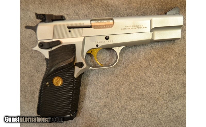 Description: SOLD Manufacturer: SN : 245NX51496 ; made in Belgium, assembled in Portugal Caliber Info: 9mm Luger Metal Condition: Excellent, silver chrome finish Bore Condition: Clean Barrels: 4 3/4 inches Triggers: Factory, Single Action Semi-Automatic, Ambi-Safety Stock: Factory rubber grips, excellent condition Weight: 37 oz Sights: Factory, adjustable rear sight and front target blade sight Extras: Factory case with extra magazine Item Location: Greenville, SC |