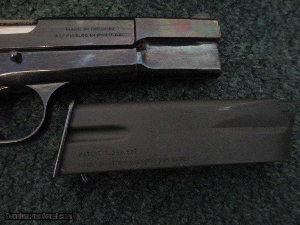 Description: Browning, Hi Power, 9mm, single action pistol, 4 5/8" barrel length, adjustable sights, made in Belgium, 99% condition, comes with case and papers. For further information call John at 941-748-7318. SOLD |