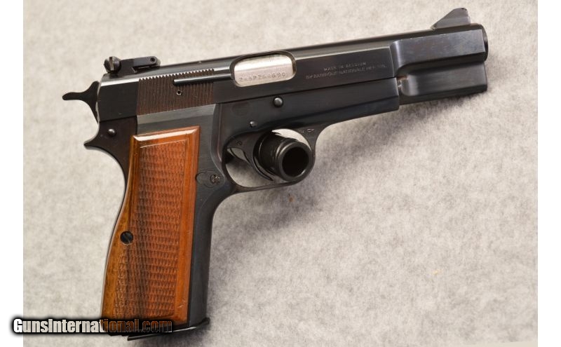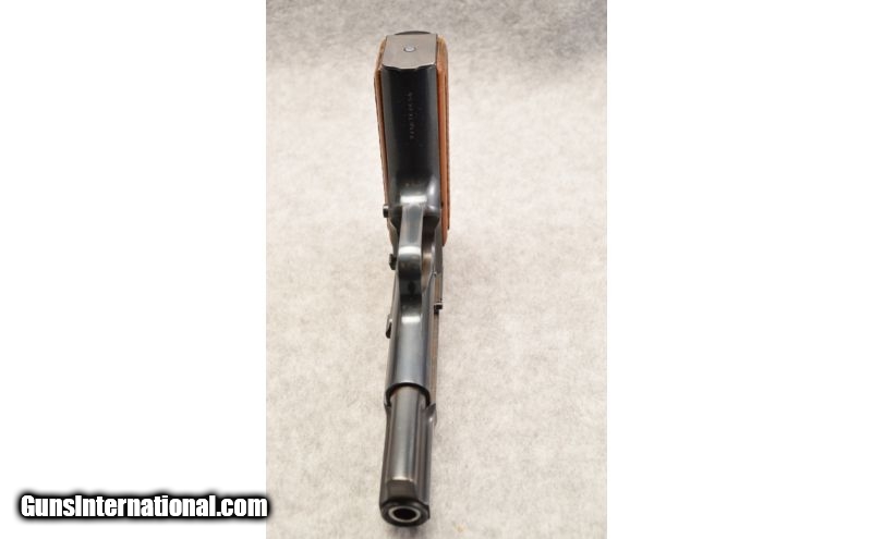 Description: SOLD Caliber Info: 9mm Metal Condition: Very good overall with minimal finish thinning to white at sharp edges. Several scratches on backstap slightly abobe magazine well. Wood Condition: Very good overall with some finsh loss at bottom rear of grip panels and few slight compression marks. Bore Condition: Bright/Shiny Barrels: 4-1/2 Stock: Wooden Grip Panels Weight: 323 Ounces Sights: Adjustable Rear Item Location: Farmington, UT |