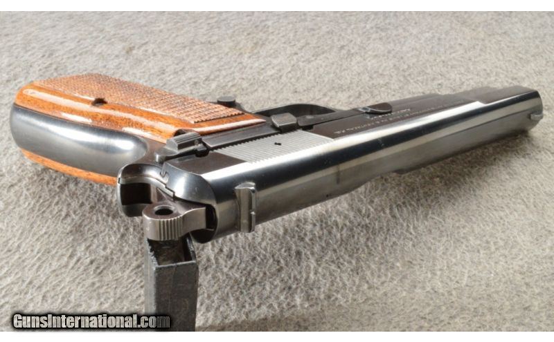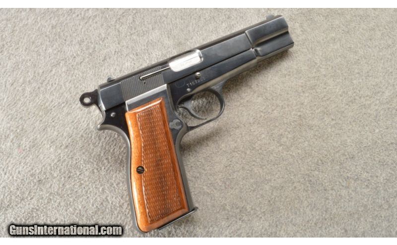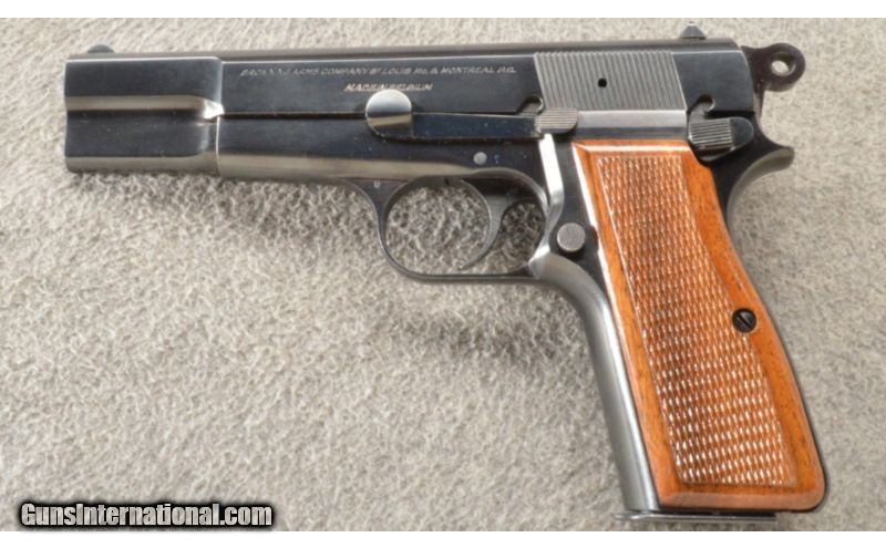Description: This is an outstanding Browning Hi-Power pistol in 9mm. The pistol was made in 1966 but looks like it could have been made last week. This blue is bright and deep with no cosmetic issues. The wood grips are also in like new condition. The pistol has a ring hammer and exposed extractor. SOLD Manufacturer: 1966 Caliber Info: 9mm. Chambers: Semi-auto. Metal Condition: Excellent. Wood Condition: Excellent. Bore Condition: Excellent. Barrels: 4 5/8 inch with sights on the slide. Triggers: Single blue. Stock: Checkered woos grips. Weight: 32 Oz. Sights: Notch rear and a small blade front. Item Location: Owatonna, MN |