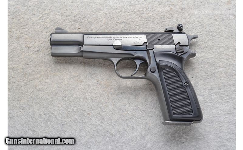 Description: This Browning Model Hi-Power is a right hand semi-auto pistol in 9mm Cal. It has a 4.7 inch barrel with a rear serrated slide. A blade front sight and an adjustable notch rear sight. The grip is a textured black polymer. The hammer spur is serrated. The Hi-Power is one of the most widely used military pistols in history, having been used by the armed forces of over 50 countries. Made in Belgium. 9mm Parabellum SOLD Chambers: Semi-Auto 13 round magazine. Metal Condition: Good. Left side of slide and front strap have a little freckling. Bore Condition: Excellent. Barrels: 4.7 inch barrel with a rear serrated slide. Weight: 32 oz. Sights: Blade front. Adjustable notch rear. Item Location: Richfield, WI |