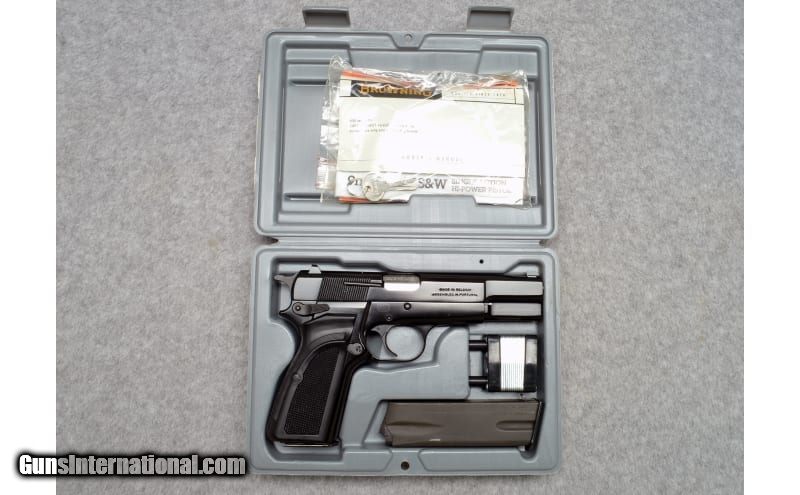 Description: Made in Belgium and still in amazing condition. Comes with an original box and 2-13 round magazines. Slide reads, "Browning Arms Company Morgan, Ut & Montreal P.Q Made in Belgium Assembled in Portugal". 9mm Luger SOLD Metal Condition: Very Good with slight mark above slide safety on left side of firearm. Bore Condition: Like New in Box Barrels: 4.5 Triggers: Factory Weight: 2 lbs Sights: 3 Dot Item Location: League City, TX |