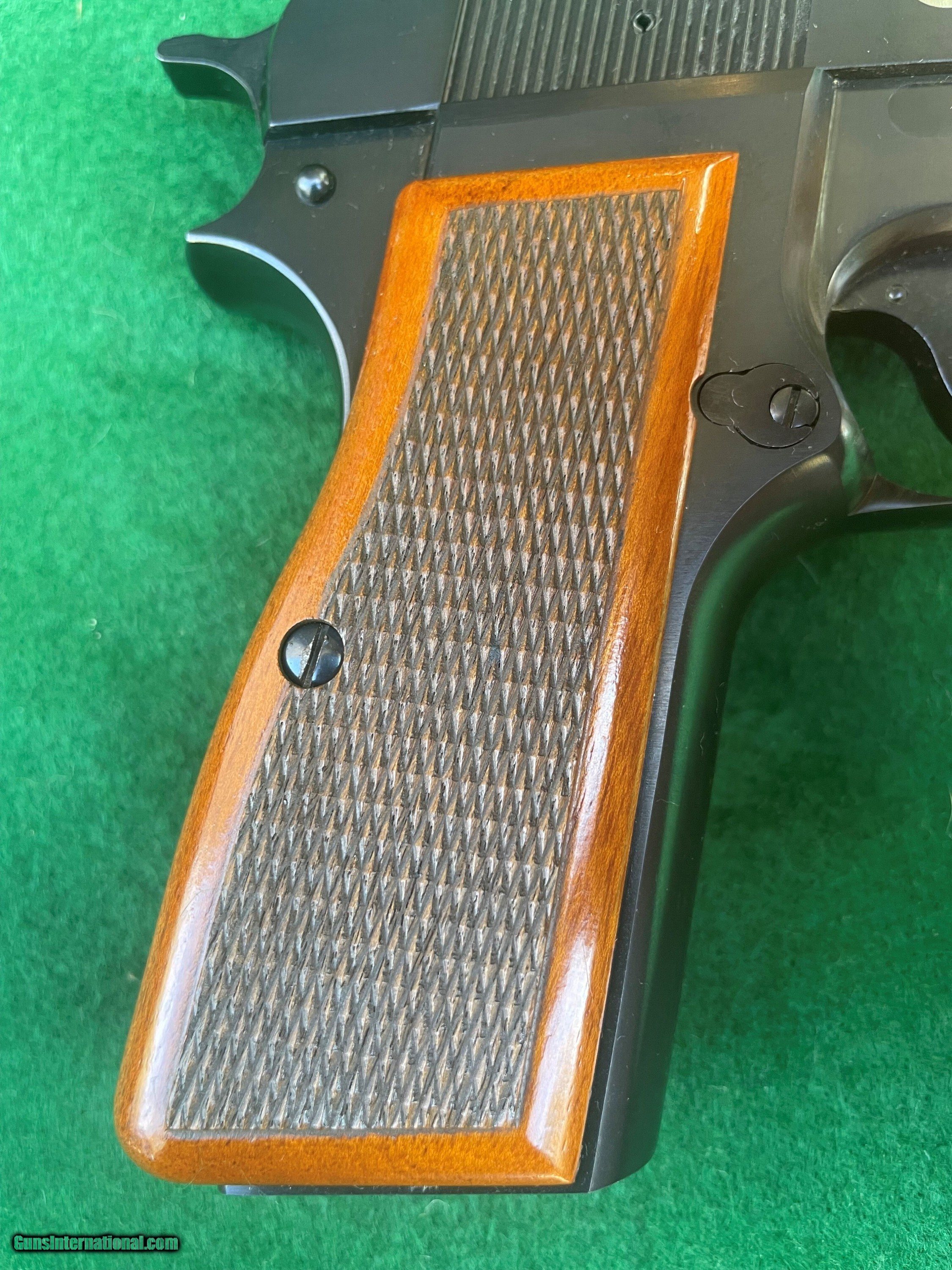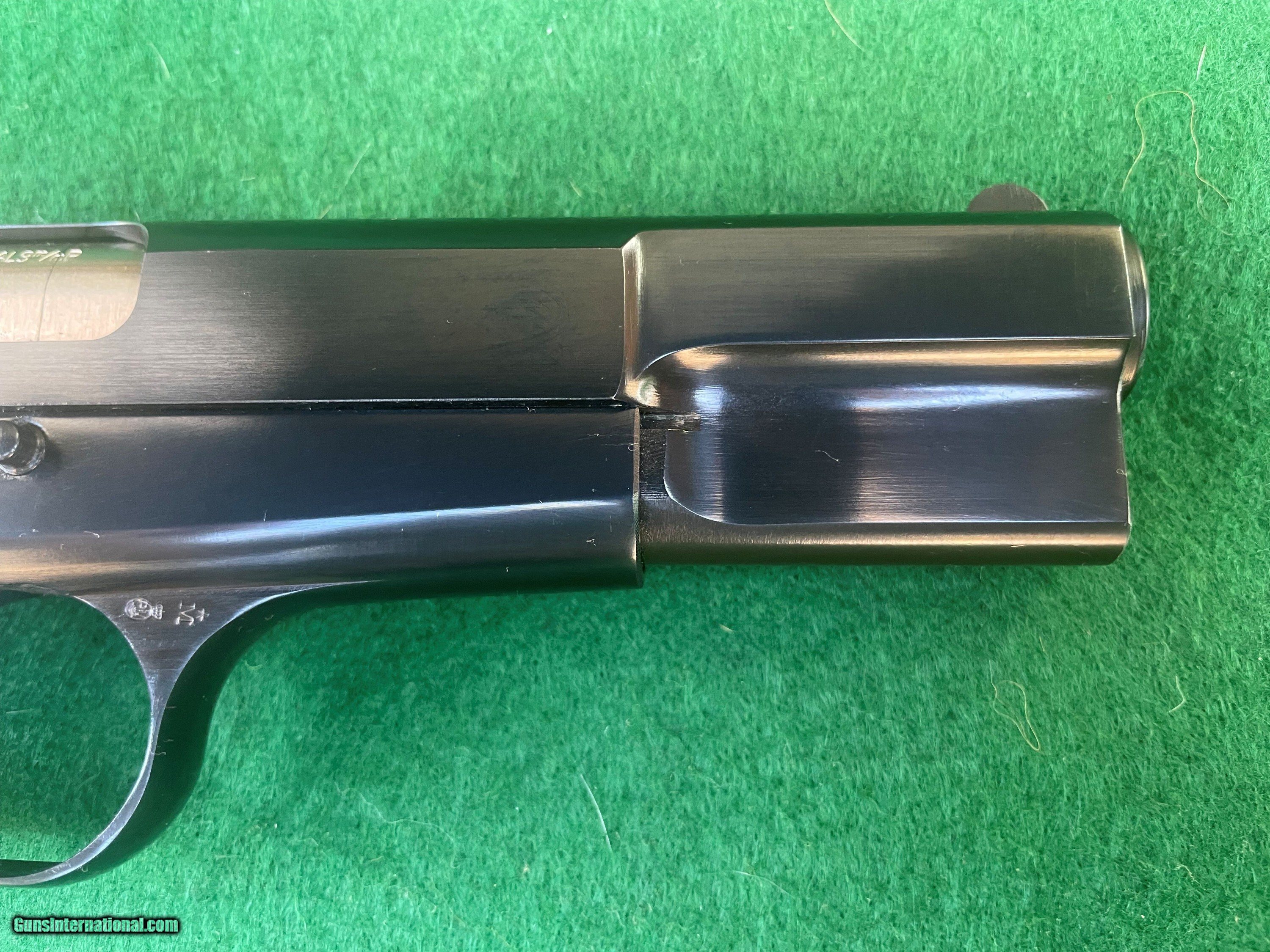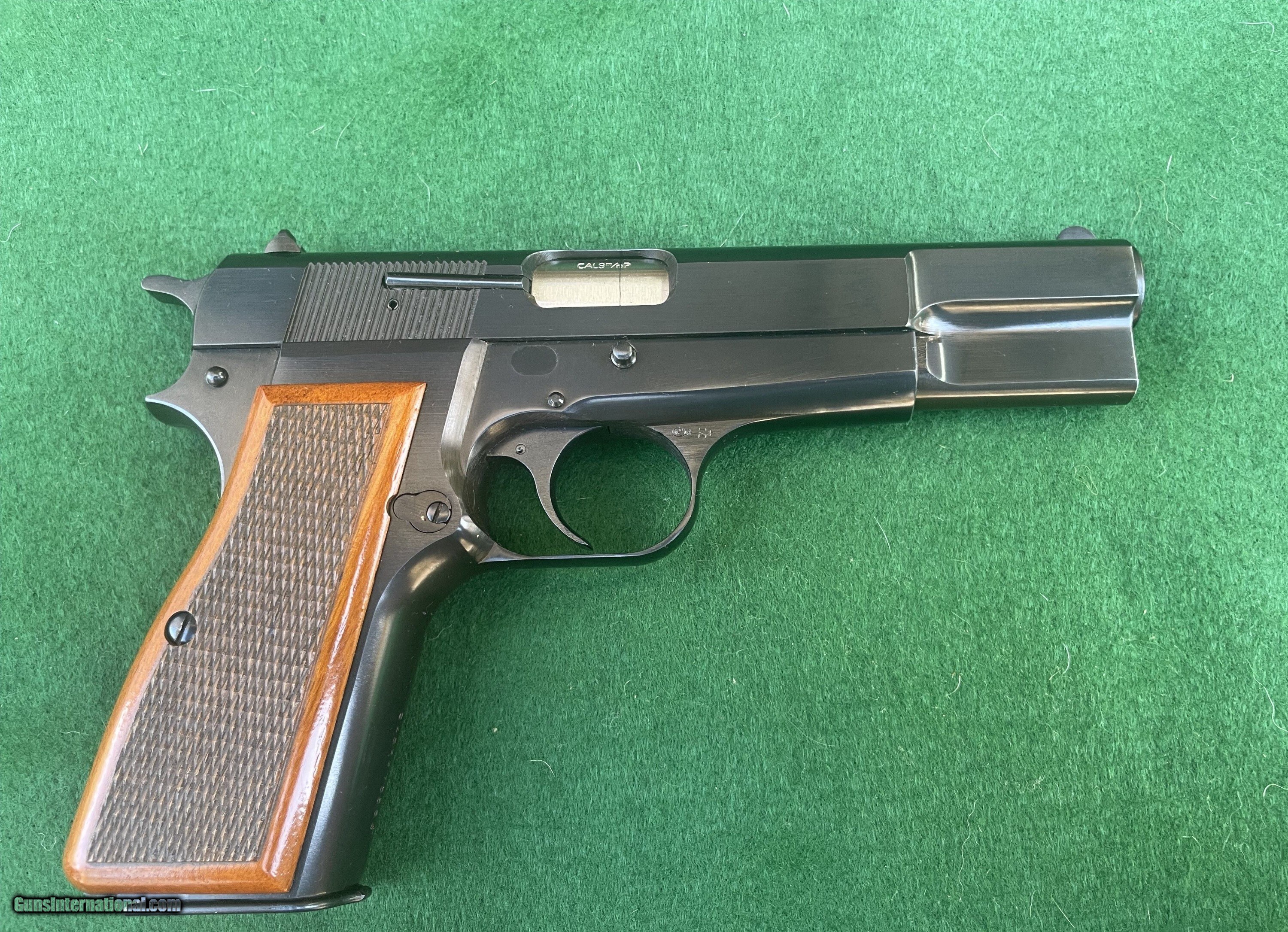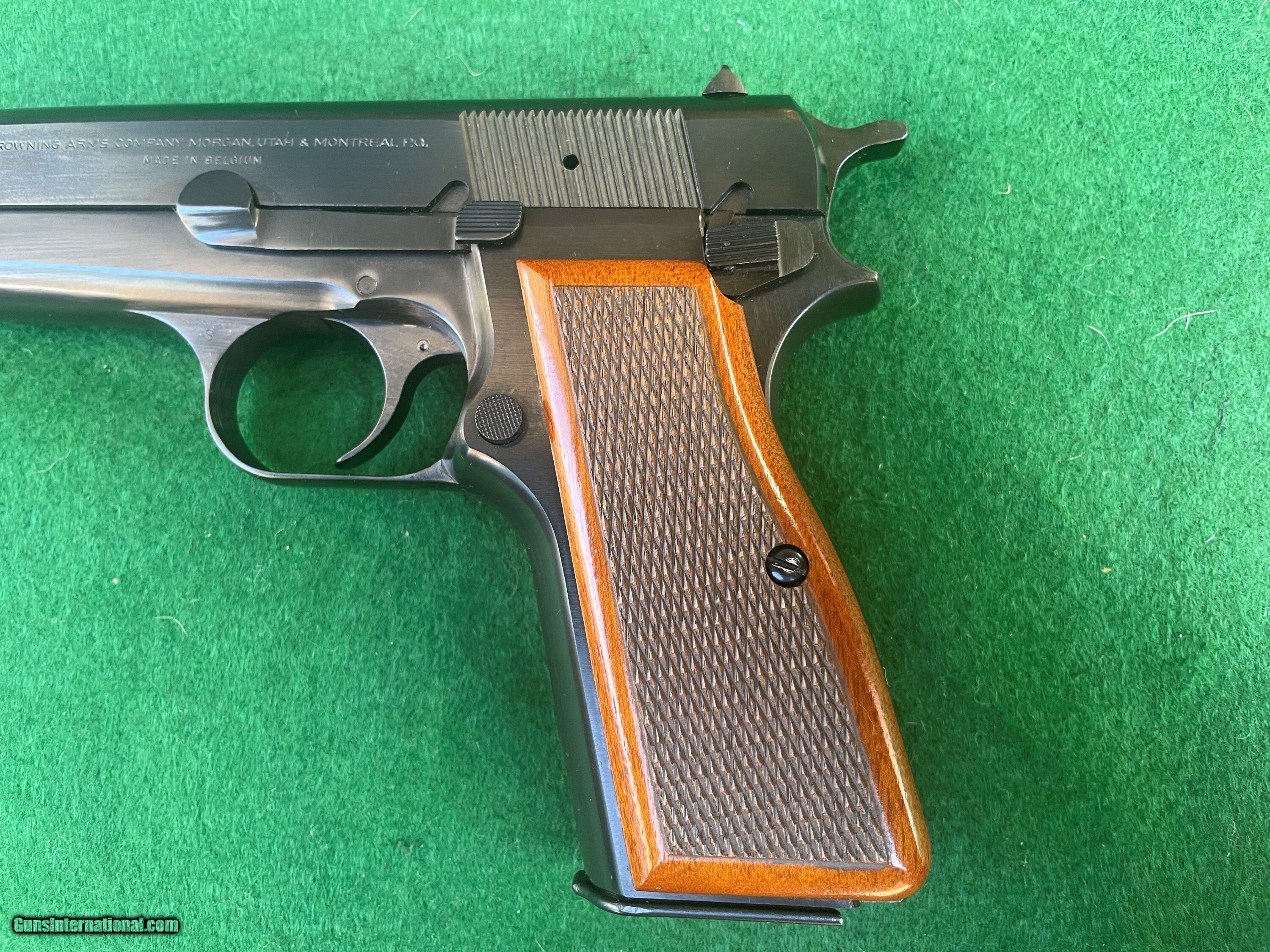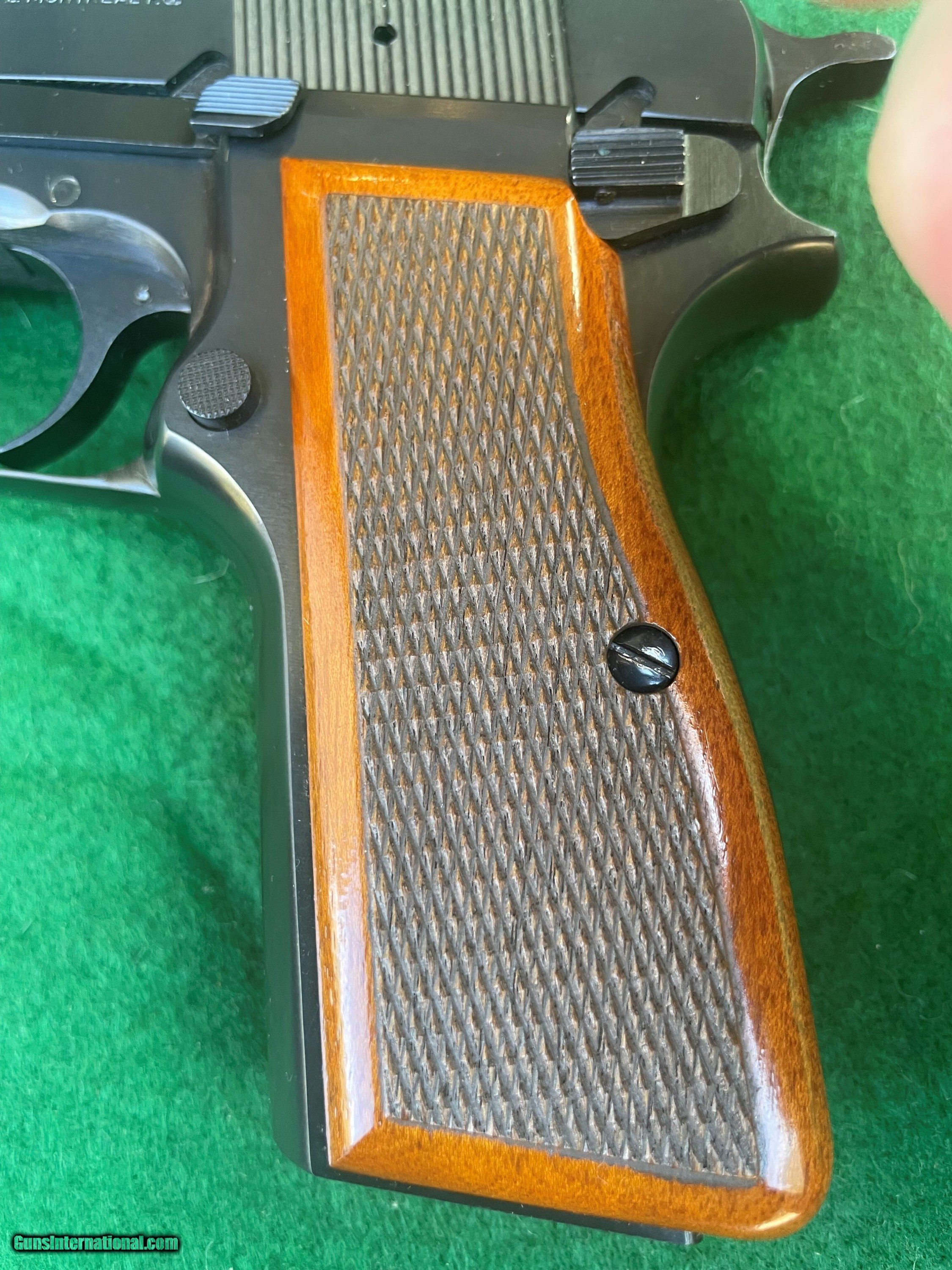 Description: Browning Hi Power 9mm. Belgian made in 1977. Has a 4-5/8 inch barrel,fixed sights,polished blue finish, checkered walnut grips. Overall excellent condition, no blue missing, no marks or scratches. Grips are excellent also with no wear, or marks or dents. One grip screw is slightly buggered. Comes with a 13 round magazine ( if allowed in your state). A solid gun that appears to not have been fired much. No box, pouch, or owners manual No sales to California or where prohibited Check local and state laws prior to purchasing. Price: $1,395.00 Contact Seller |