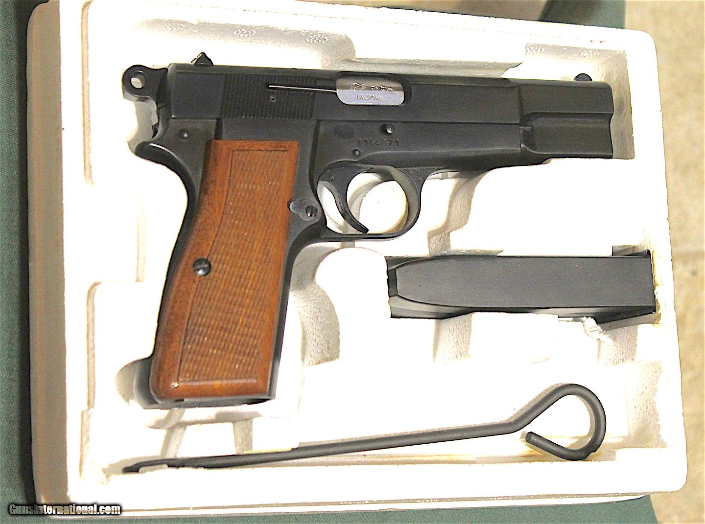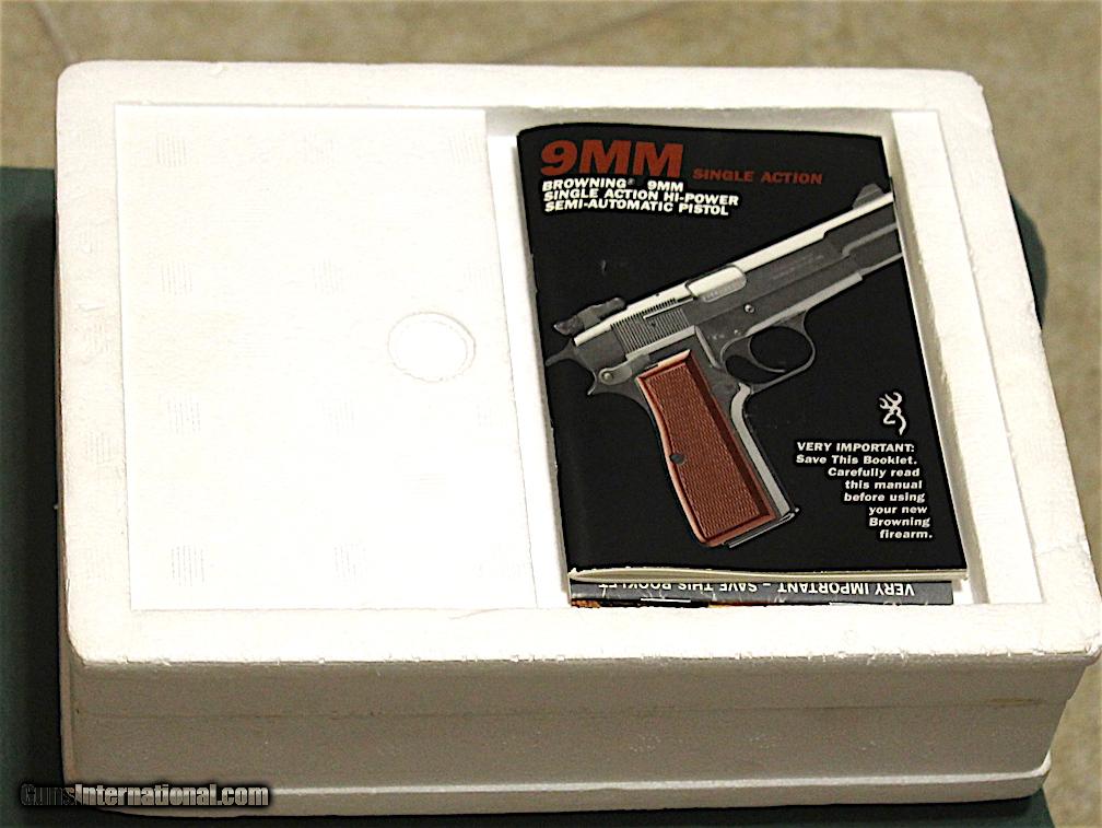 BROWNING HI POWER-BOX-PAPERWORK-CLEANING ROD-SHEEPSKIN POUCH,MARKED,-one magazine