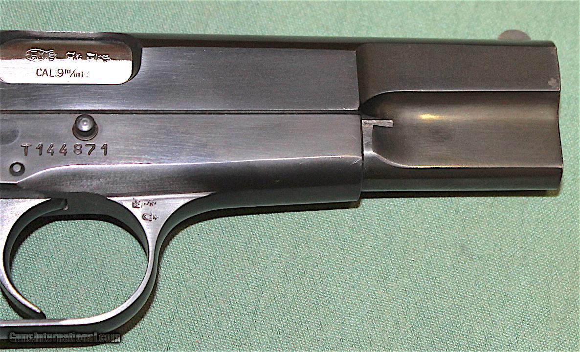 Description: We have up for grabs -- BROWNING HI POWER -- BOX -- PAPER WORK - CLEANING ROD - POUCH 10X7 W/SHEEPSKIN LINING -- This gun is MINT -- T-series serial number indicates a early 1960's made date -- One Original Magazine, NO SLIDE MARKINGS -- No evidence of repeated firing, just factory test -- Finish is blem free and in the Factory Non-Glare deep blue -- Walnut Checkered Grips are 99% with very slight handling marks -- The pictures tell the story --- We consider ALL OFFERS, but, you must make one. LAY A WAY WELCOME --- C & R will suffice -- CALL LARRY 716-378-7878 or email LAUSTIN1801GMAIL SOLD Curio/Relic: Yes Manufacturer: BROWNING Model: HI POWER Serial Number: T-144871 Caliber Info: 9 MM Bore: PERFECT Chambers: PERFECT Ejectors: EXTERNAL (1962) Condition: 99% Metal Condition: 99% Wood Condition: 99% Bore Condition: 99% |