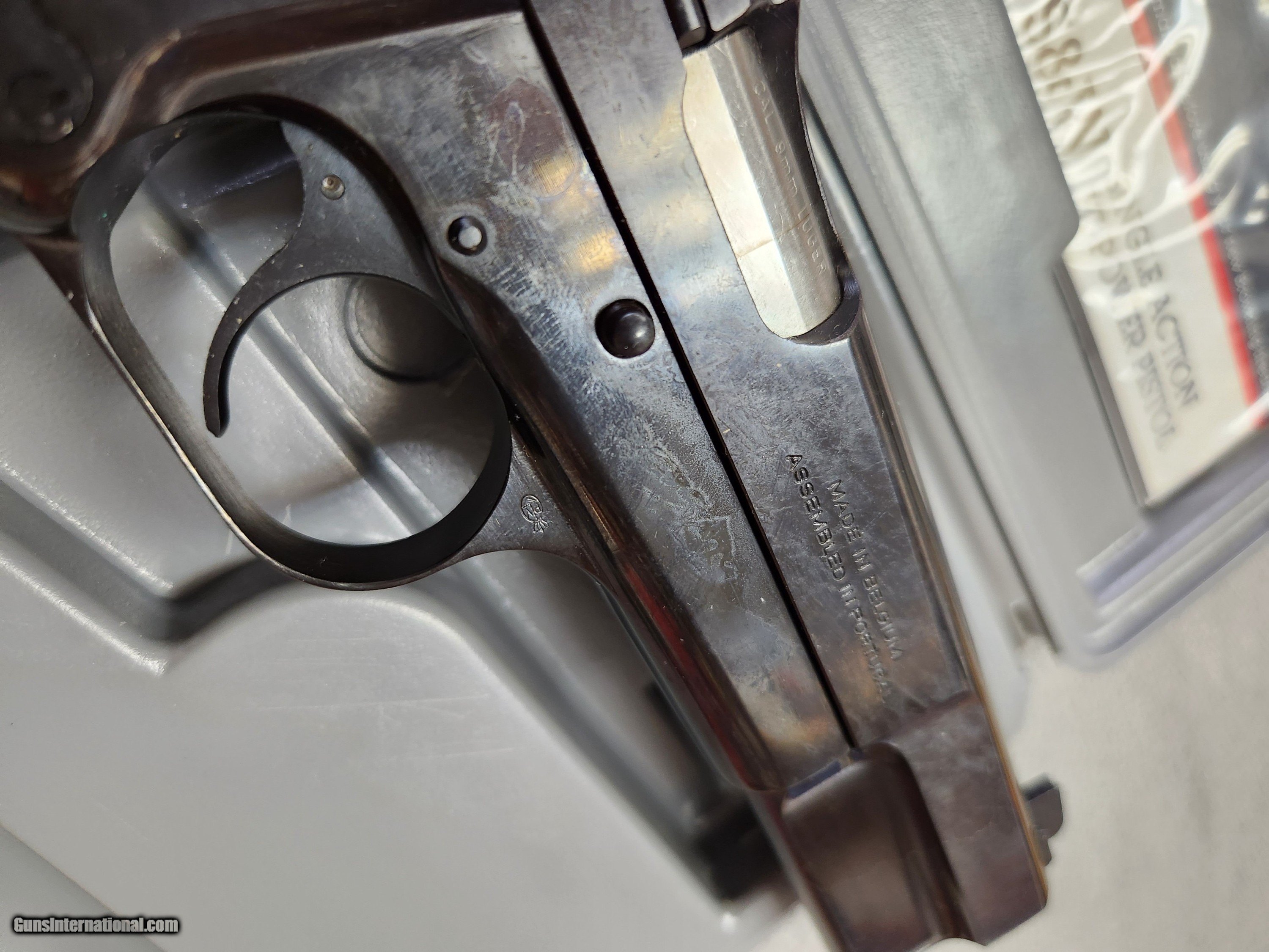 Description: ***SOLD*** NEW IN BOX, still with original packing "grease". Made in 1994, still new in the box, Browning Hi Power, Capitan. Tangent rear sight. 15 round magazine (one), original box and manual. $2100 includes shipping to FFL Only. E-MAIL PLEASE. SOLD Handgun Caliber: 9x19mm Parabellum (9mm Luger, 9x19mm NATO) Manufacturer: BROWNING Model: HI-POWER Barrel Length: 4 21/32 INCH |