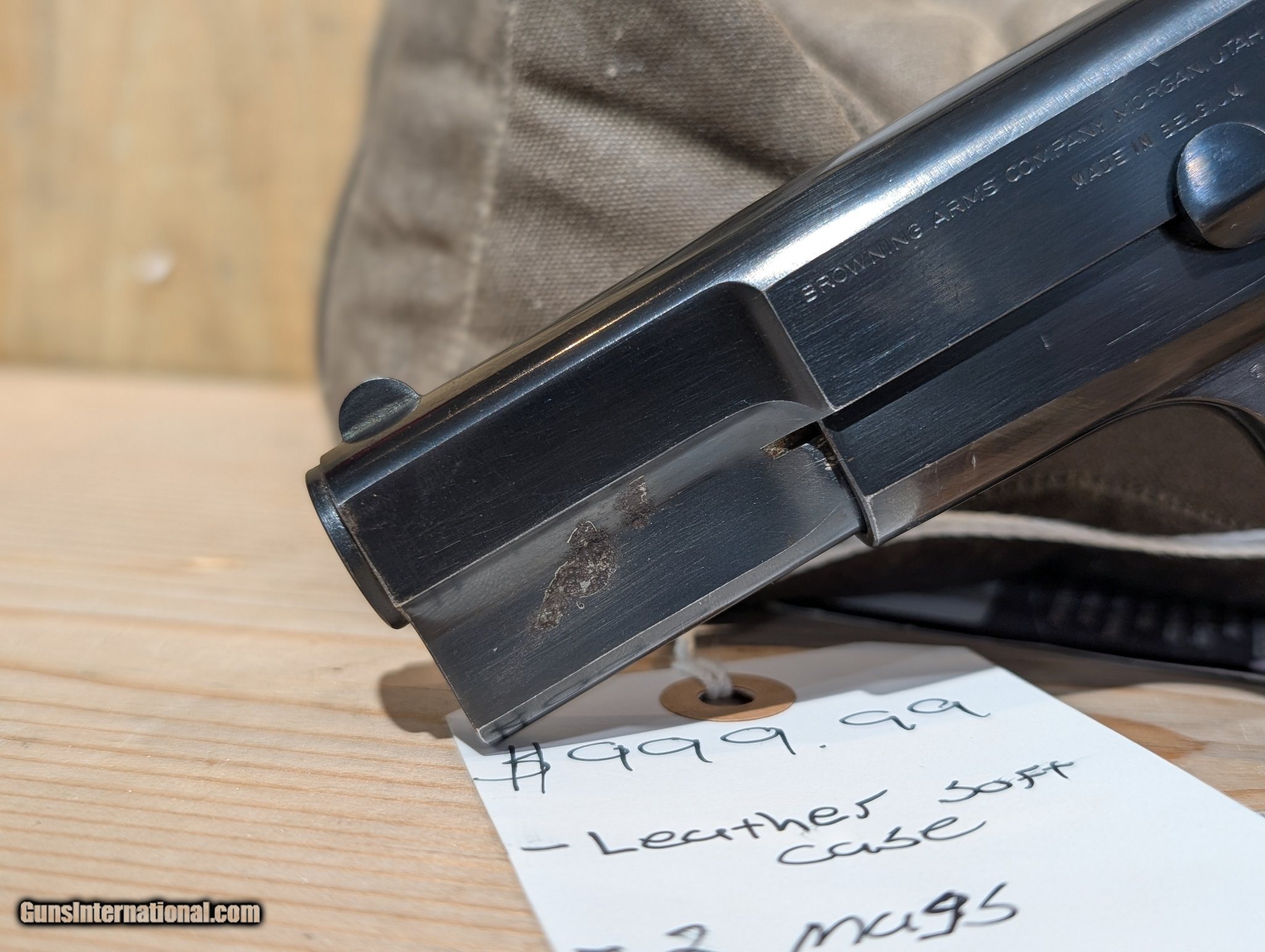 Description: Guns Listing ID: 480916 Local Trade in 1976 Browning Hi-power 2 mags (mag held 14 rounds) Leather case Gun is a beautiful gun but please refer to photos on a bad spot at the end of the slide, lower part. SOLD Manufacturer: BROWNING Model: HI-POWER STANDARD Condition: Used - Non-Certified Barrels: 5 Gauge Info: 9MM LUGER (9x19 PARA) Finish: blued |