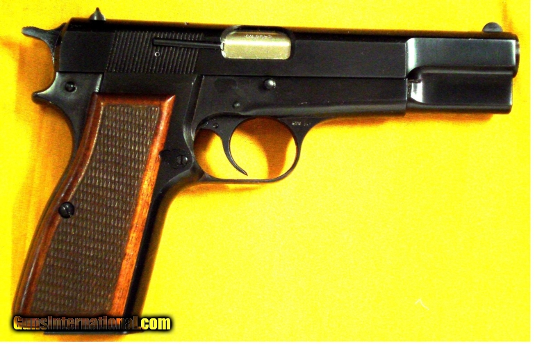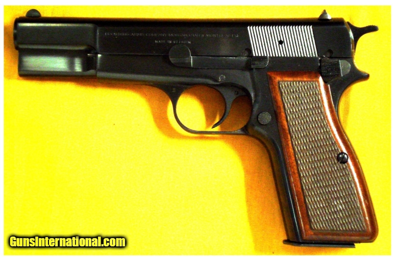 Description: BROWNING model HI-POWER in 9MM CAL., with 4 1/2" barrel. Color BLUE. THIS HI POWER IS IN EXC. OVERALL CONDITION RETAINING 98% PLUS FACTORY ORIGINAL BLUE WITH EXC. CHECKERED WALNUT GRIPS. Condition 98% PLUS. SOLD |