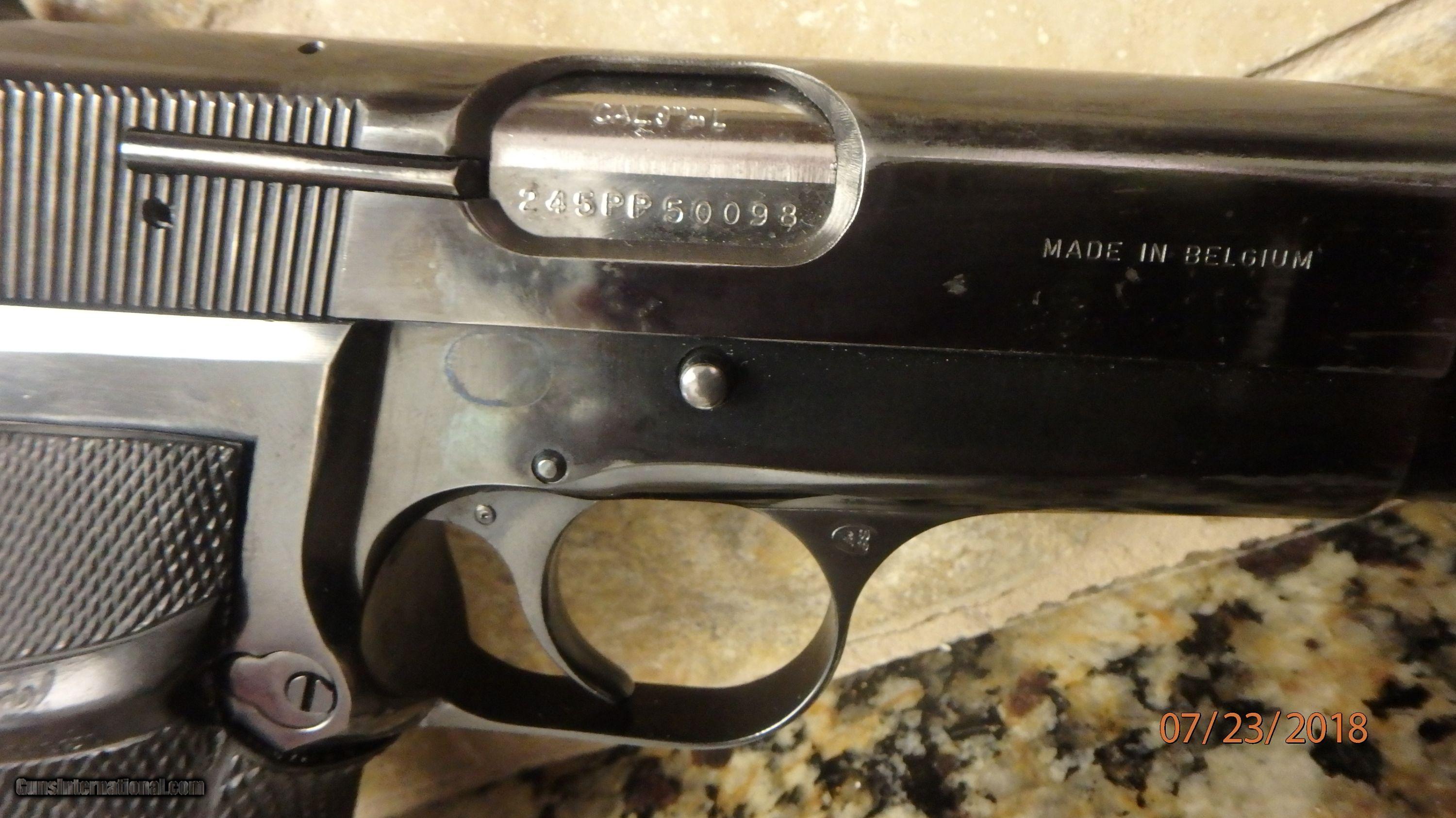 Description: Browning Hi Power "Made In Belgium" 9mm 1988 mfg date. This is a great shooter showing some holster wear. Function and fit is perfect with nice crisp trigger. Barrel and bore nice and shiny. This BHP will feed any and all 9mm including hollow points. Never had an FTF... never. Comes with one 13 round mag. Price: $699.00 Plus $46.00 for S&I / FFL to FFL I accept USPS Money Order... SOLD Manufacturer: Browning Model: Hi Power Serial Number: 245PP50098 Caliber Info: 9mm |