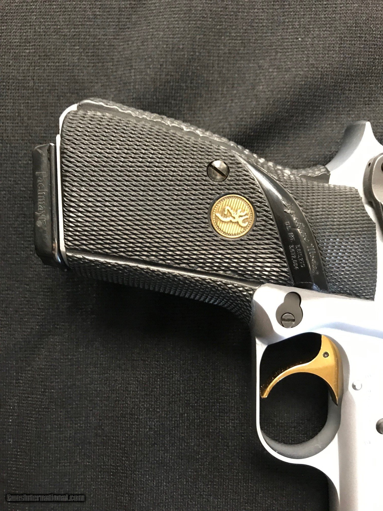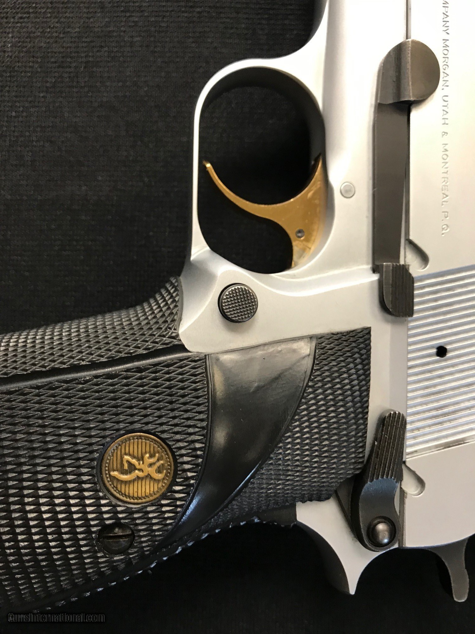 Description: Browning Hi Power Pistol. Very clean pistol. Does seem to have been fired a rare amount of times. Almost looks like new. The gold on the trigger is near mint. Overall conditon (99%). With Browning Box and manual as well as extra clip. For more information regaurding the pistol as well as purchasing PLEASE CALL 1 (479) 968-4106. Will ship to a dealer near you! Price - $1,425 + Shipping (Depending on location) Price reduced to $1,379 DOM. - 1991 SOLD Manufacturer: BROWNING Model: HI POWER Serial Number: 245NZ55673 Caliber Info: .9mm Triggers: Gold Plated (Factory) |
