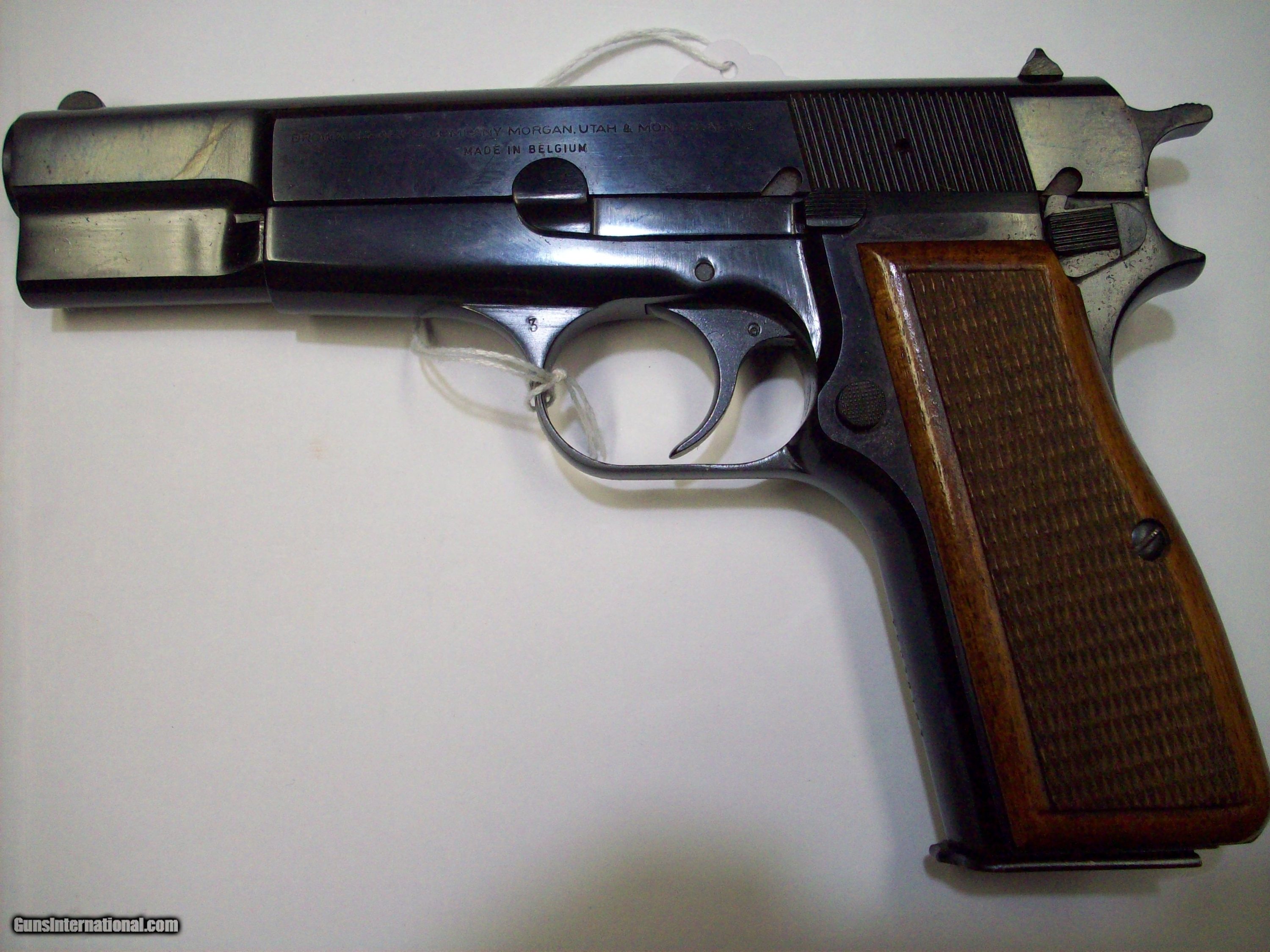 Description: This 9mm. pistol is a MADE IN BELGIUM Browning HI POWER. Has a 13 Rd. mag pinned to 10 rds. Condition 98/99%. $1500.00. rmgrigolettoyahoo 732 280 8750. SOLD |