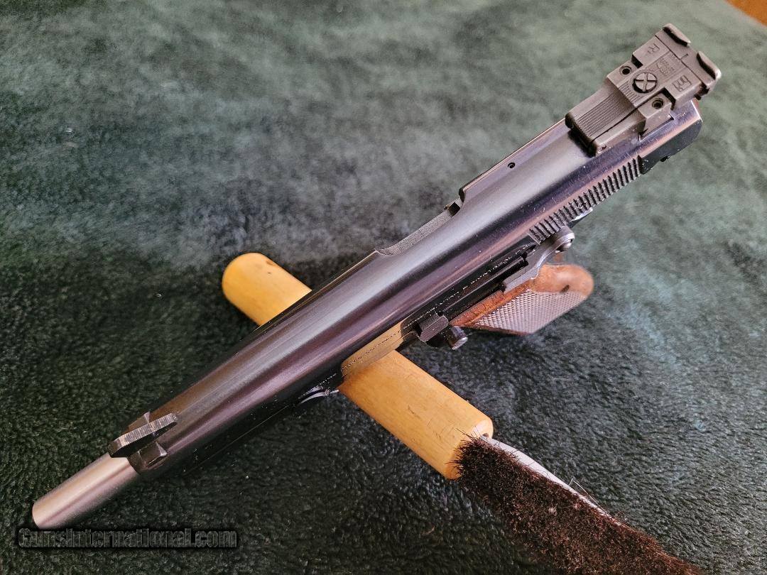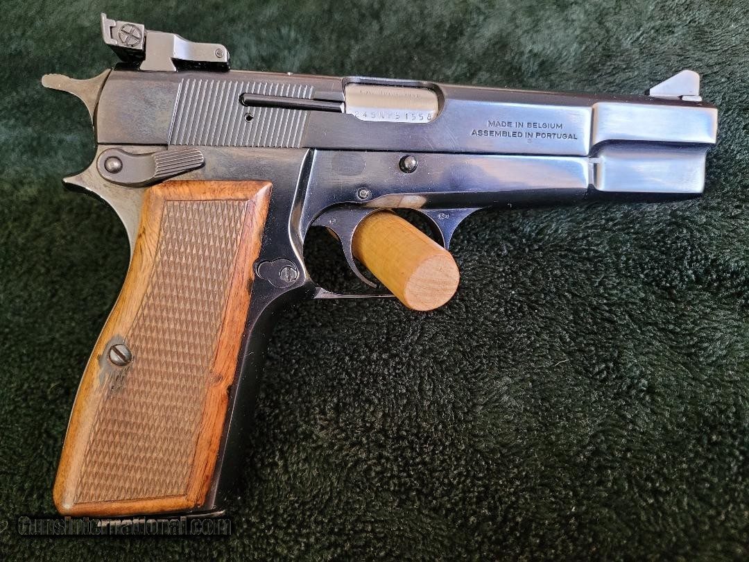 Description: This Browning High-Power is in great overall condition as professionally refinished. This gun was made in Belgium, and assembled in Purtugal around 1992, with the adjutable factory rear sight and ambidextrous safety. Comes with a post war holster and 1 magazine. $1200 Shipped and Insured to lower 49 states. FFL to FFL transfer only. You are responsible to know your states regulations. Payment by Postal Money Orders, unless otherwise agreed. Dan at (608) 751-7194 SOLD Manufacturer: Browning Model: High Power Serial Number: 245NY51558 Bore: rifled Condition: exc. as restored Metal Condition: refinished Wood Condition: 90% Bore Condition: exc Action: Semi-auto Triggers: single Manufacture Date: 1992 Extras: holster |