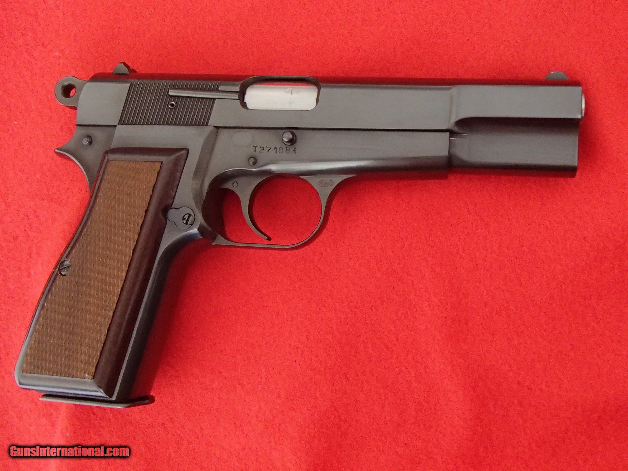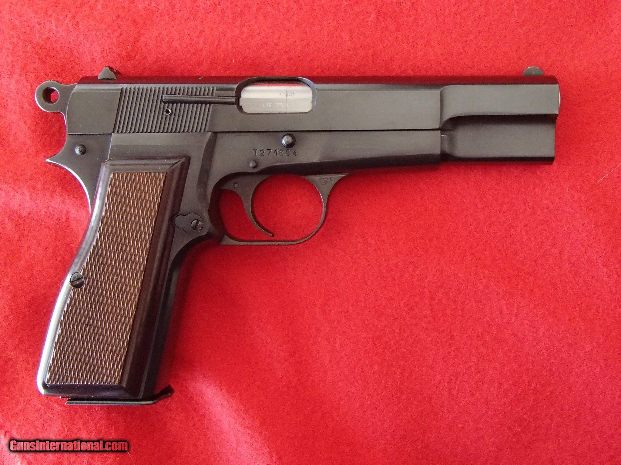 Description: Beautiful Hi Power with T-code serial number, circa 1970 (see Browning's site for T-code production date estimates). This pistol is in 99% condition and comes with original factory magazine and black leatherette pouch. See the Pics. Add $39 to ship to the continental US, $75 to AK or HI. Buyer assumes responsibility for laws in their state. Private seller so if you need it shipped from my FFL, add $30 for his services. Thanks SOLD |