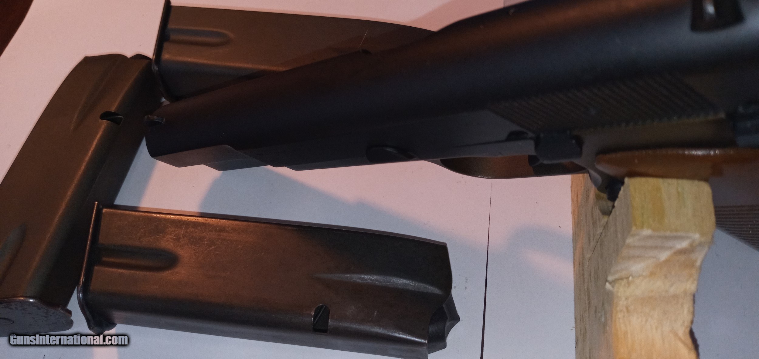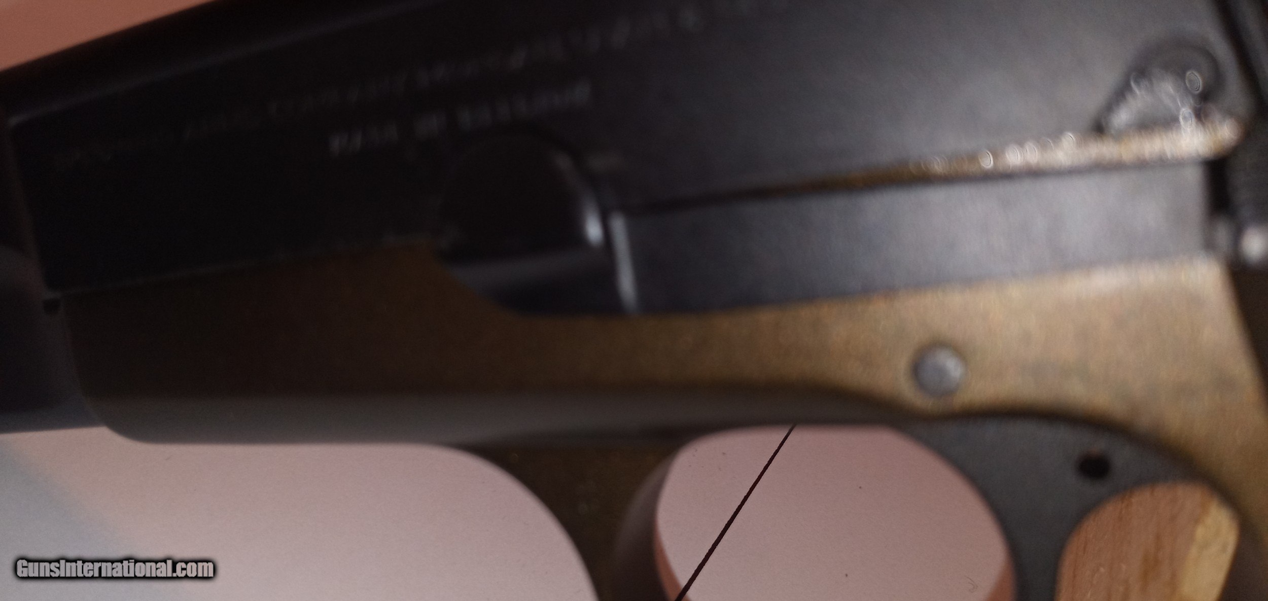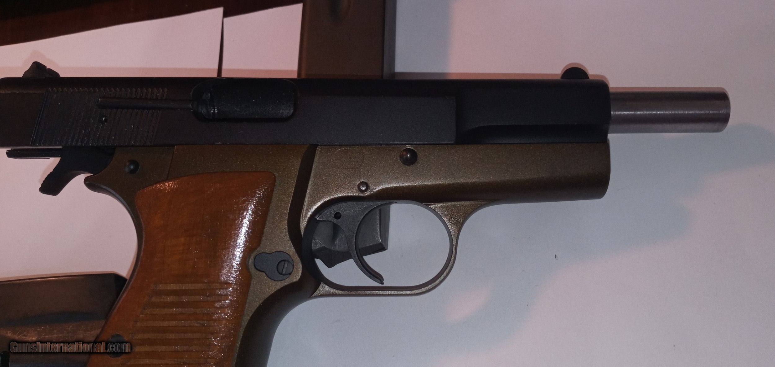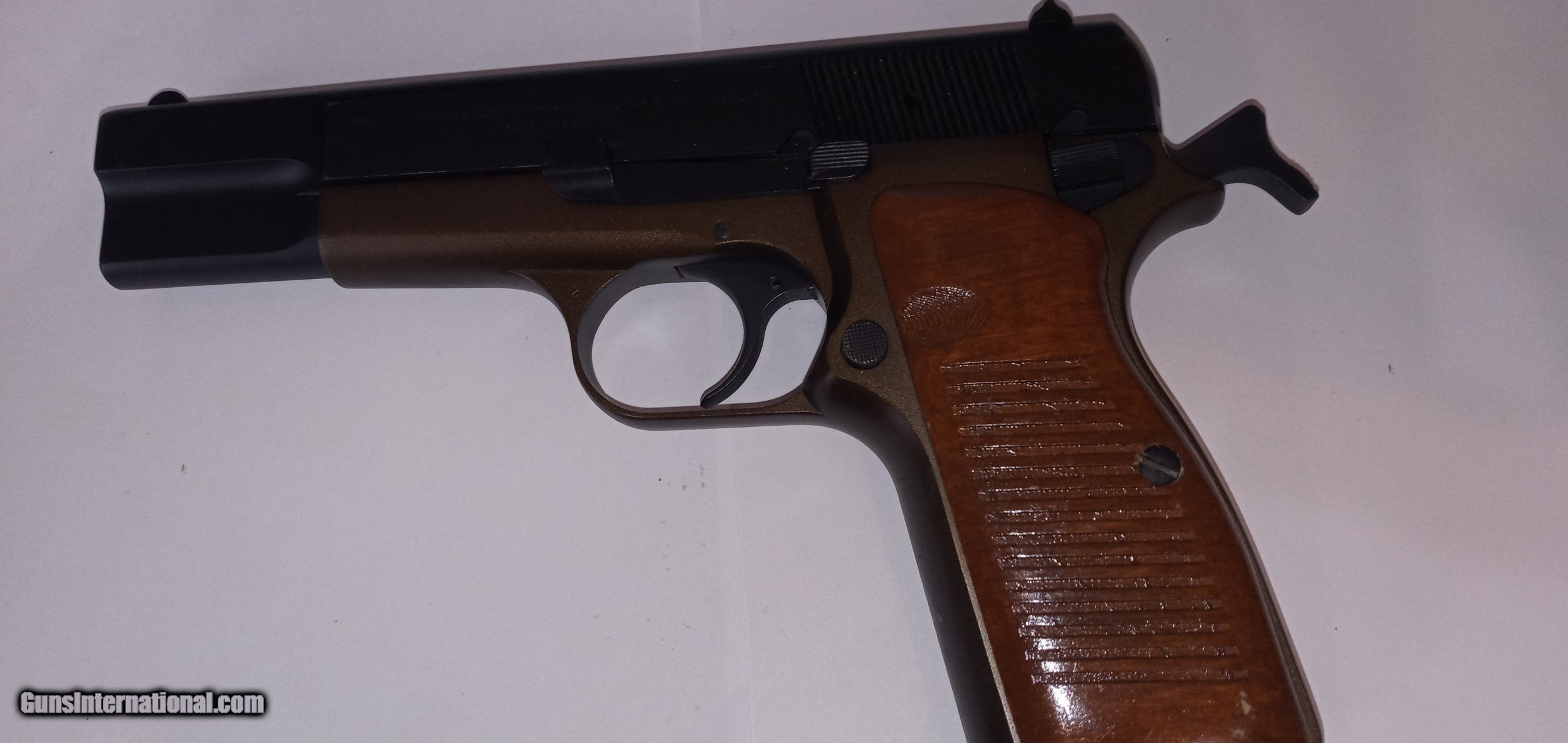 Description: browning high power 9mm 4.5 in. barrel mfg. in belgium sn. 72cxxxxx bore is perfect 3 mags two tone matt finish on slide see pictures SOLD |