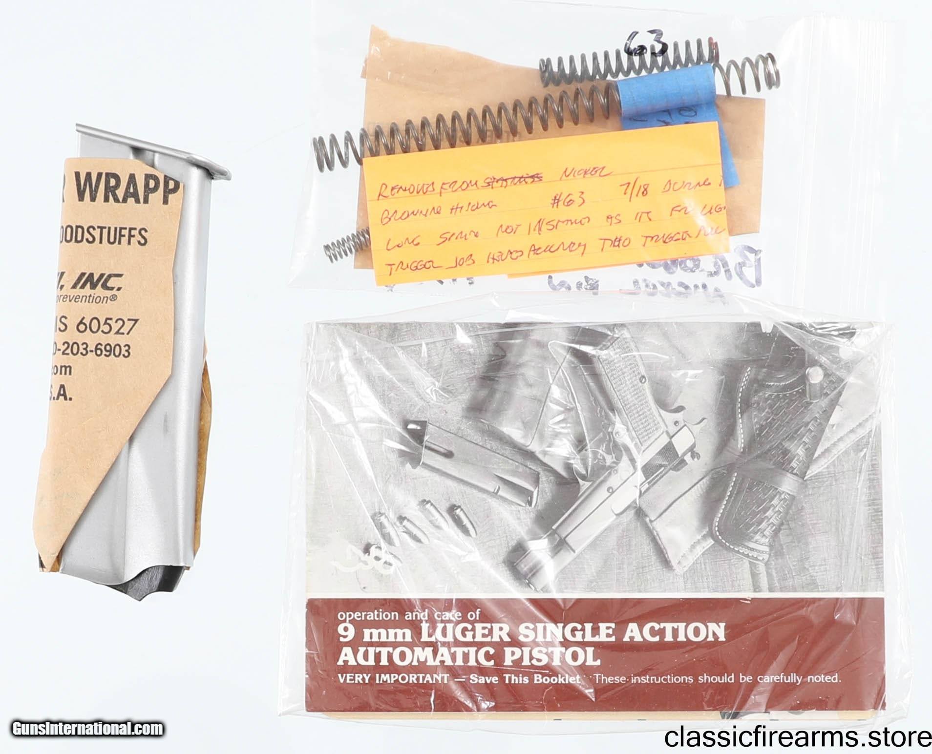 Description: Guns Listing ID: 615823 MAKE - BROWNING MODEL - HI POWER FINISH - SATIN NICKEL BARREL - 4 3/4\" CALIBER - 9 MM CAPACITY - 15 GRIPS - RUBBER CONDITION - EXCELLENT FEATURES - COMES WITH GUN POUCH, EXTRA MAGAZINE, BUILD SHEET, PAPERWORK, & EXTRA PARTS SOLD Manufacturer: BROWNING Model: High Power Caliber Info: 9MM (9X19 PARA) Condition: Used - Non-Certified Barrels: 5 BARREL Finish: SATIN NICKEL |