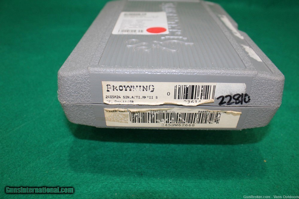Description: Browning MKIII 9MM single action pistol in box with 2 magazines and paperwork. S/N: 245NM62668. 4.75" barrel with excellent bore. Selling as used in like new condition. Guns International Sellers Terms and Agreement CONTACT INFORMATION!! To purchase, layaway a firearm, or if you need assistance with any internet sales items please contact the store during business hours at 1-601-825-9087and ask for Jon or Alyssa. Our store hours are: Mon-Sat 9AM-6PM Guns International Sellers Terms and Agreement We accept Visa, MasterCard, Discover, and American Express, money orders, and personal checks. Please Note: That all card transactions (Credit/Debit) will be charged a 3% Credit Card Fee at the time of purchase. Layaway Terms: We offer layaway on most items for a 90-day period. The terms require a minimum down payment of 15% at the time of set up with no required payment plan for the remaining balance. Remaining payments are at the buyer’s discretion, but the full payment amount must be completed by the 90th day. If the buyer chooses to cancel a layaway, the buyer will incur a $50 restocking fee. California Sales We are enrolled in the California CFLC system and will ship qualifying firearms to any eligible FFL in California. Due to the additional steps we must complete on California sales we charge an additional $50 S/H fee. If you wish to have a firearm shipped to California please contact us and we will email you an interactive invoice where you can submit your payment including the additional fee. Alaska and Hawaii Sales There are extra shipping costs. Please request a quote before . Product Photos Please carefully look at each and every photo to ensure the condition of the item(s) in question. We do our best to take accurate photos that not only show off the quality of our items, but to also point out any marks or flaws. SHIPPING: Long Guns cost: $35.00 UPS Ground Handguns cost $35 for Shipping 2nd Day Priority Mail Ammunition and Parts Costs vary, please inquire for estimated shipping costs based on destination, package weight and size. WE DO NOT EXPORT FIREARMS Orders are normally shipped within 3 business days after receiving payment and FFL. But please allow up to 5 business days for us to process and ship your order. Cancellations – Firearm(s) cancellations will incur a 15% restocking fee, unless exchanged for an item(s) of equal or greater value. 3-day Inspection/ Return Policy The 3-day inspection period Is for defects and to make sure the gun received is the gun ordered. If there is a manufacturing defect with the firearm, please notify us immediately so that we can do our best to remedy the issue in a timely manner. After a gun has been transferred to the customer, all issues must be handled through the manufacturer. The above item description and pictures are property of Van’s Sporting Goods and may not be used or duplicated on other sites. Contact Information: To purchase a firearm or if you need assistance with any internet sales please contact the store at 1-601-825-9087. Mailing Address: Van’s Sporting Goods 777 HWY 468 Brandon, MS 39042 EMAIL ADDRESS: vansfirearmsyahoo Thank you. Jon Born The above item description and pictures are property of Van’s Sporting Goods and may not be used or duplicated on other sites. SOLD |