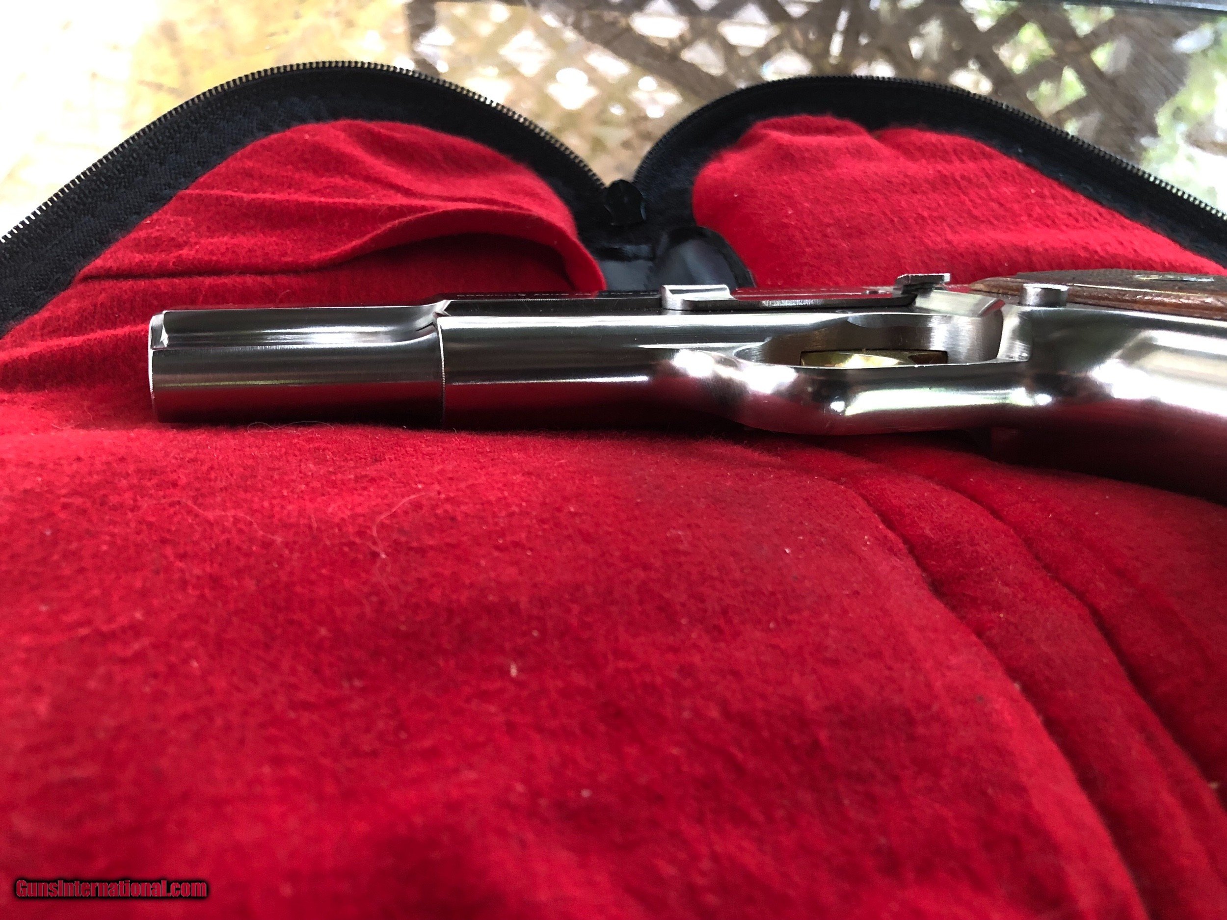 Description: Here’s a Browning Nickel HiPower9mm. Excellent condition & not shot. Comes with the Browning red lined leather rug & 2 nickel clips. This very nice firearm was made in 1981. Please call with questions or to buy! SOLD Manufacturer: Browning Model: HiPower Serial Number: 245PZ****** Caliber Info: 9mm |