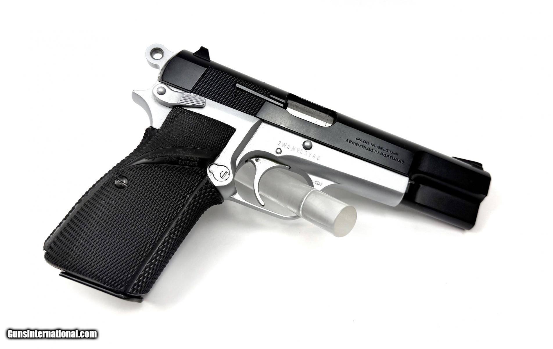 Description: Guns Listing ID: 551657 Browning Hi Power .40s&w, 4.75\", Two Tone Finish, 2 10rd Magazines, Pachmayr Grips, Original Box SOLD Manufacturer: BROWNING Model: UNMARKED Caliber Info: .40 S&W Condition: Used - Non-Certified Barrels: 4.75 BARREL Action: SEMI AUTOMATIC |