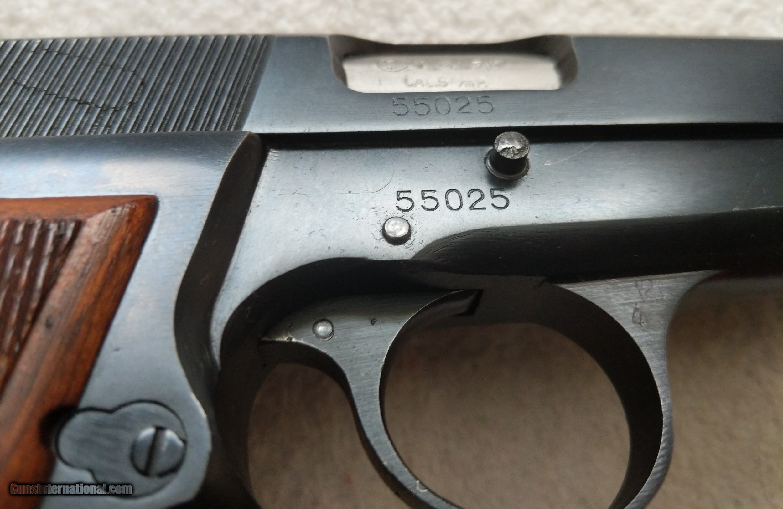 Description: Manufactured in 1952, this Browning FN- High Power is nearly mint. 9mm Paraellium. No loss of blue on the gun. Only slight edge wear on the magazine. Grips are nearly new with original finish. This is as fine of an early 1950’s FN HP as I have ever seen. Ships insured to FFL or C&R for $45 SOLD Curio/Relic: Yes Manufacturer: Fabrique Natioinale Model: FN High-Power Serial Number: 55025 Barrel Length: 5 Caliber Info: 9mm Par Condition: 99% Manufacture Date: 1952 |