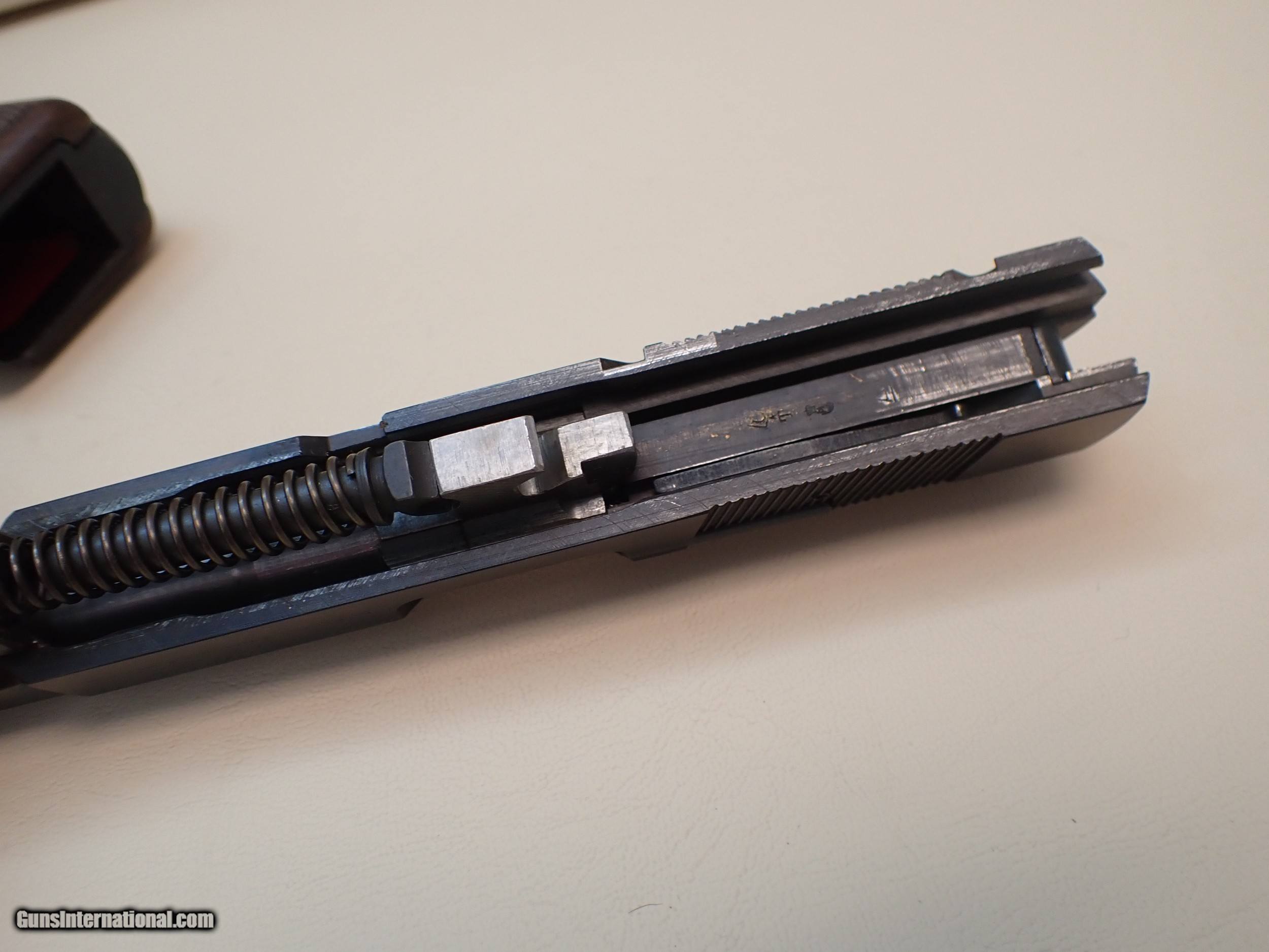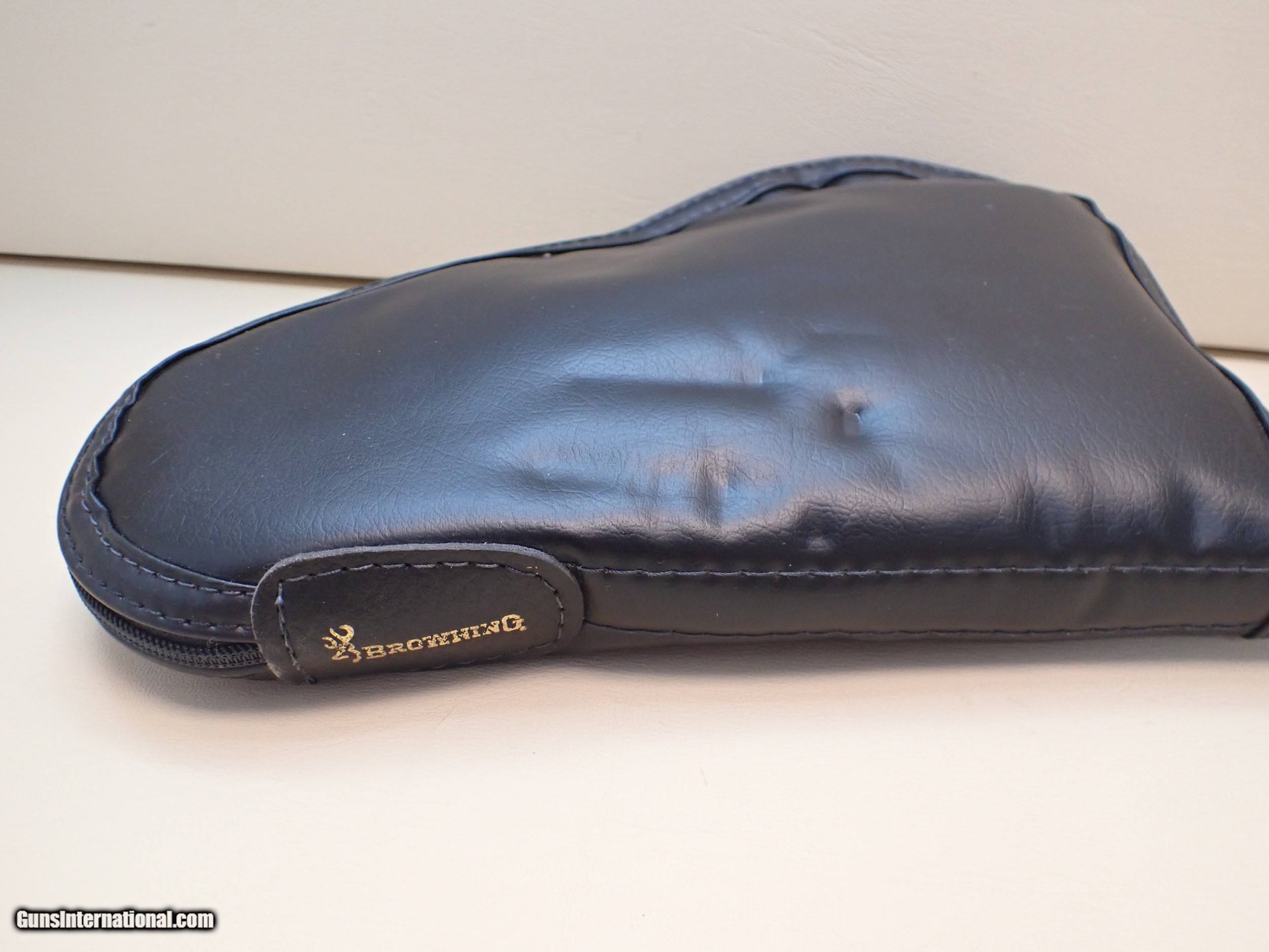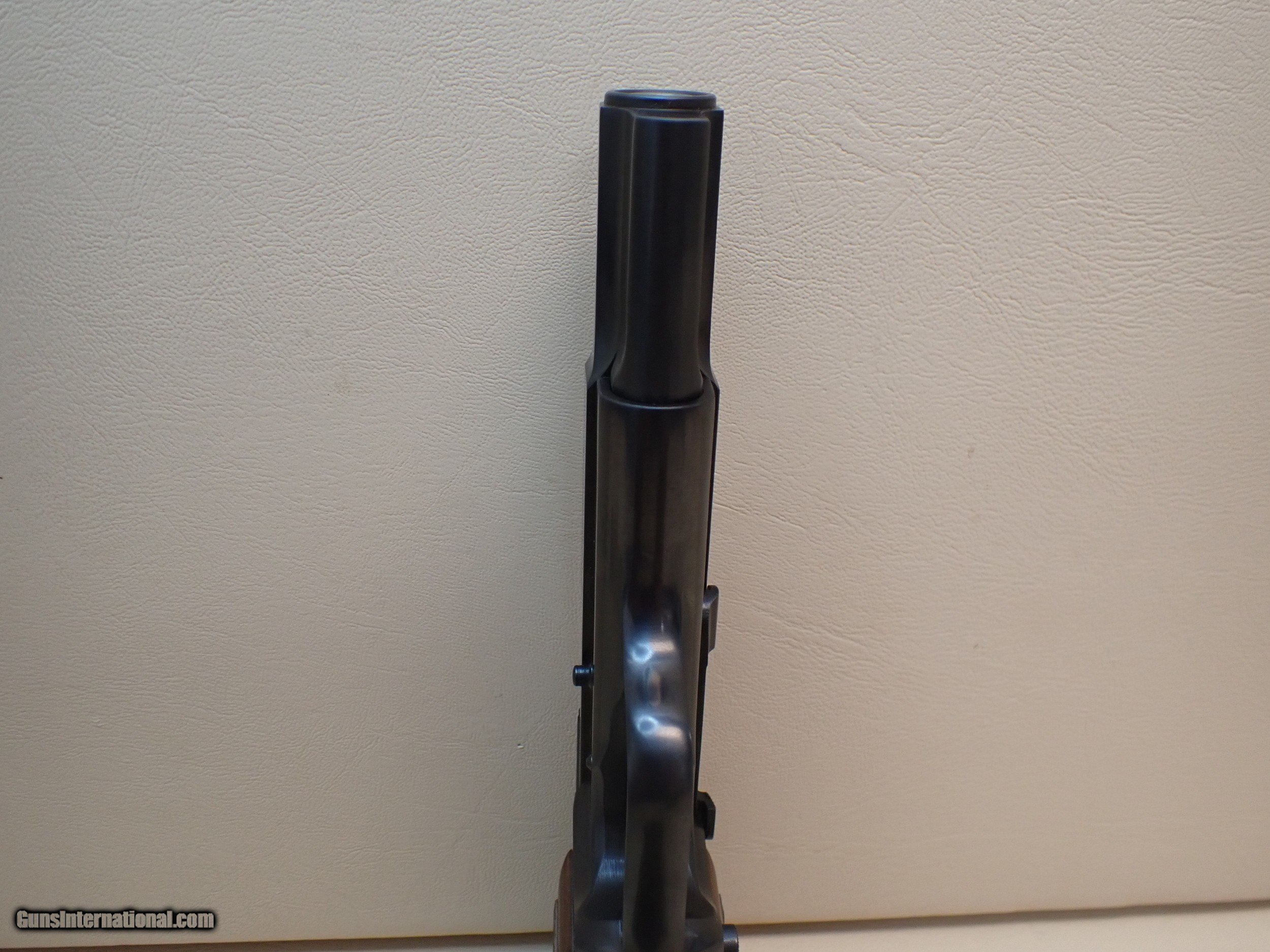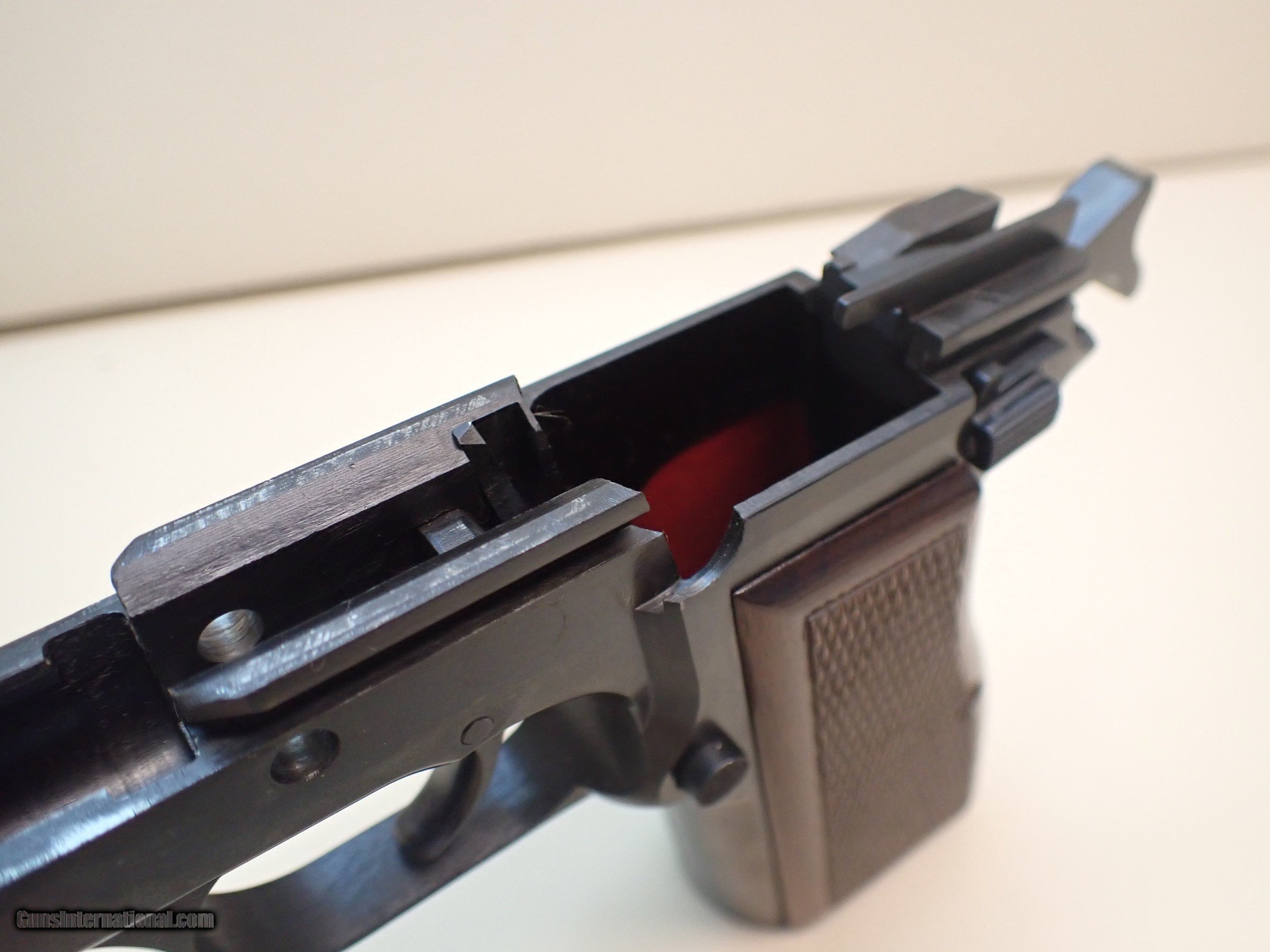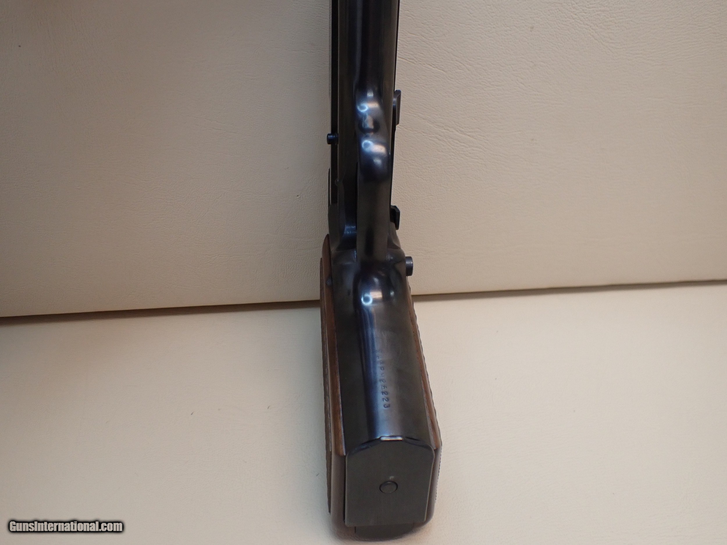 Description: Browning Hi-Power 9mm semi automatic pistol, made in Belgium by FN. This pistol features the timeless and refined Browning tilting-barrel semi automatic pistol mechanism, with a single action only hammer fired action, with a rich blued finish, standard hammer spur and external extractor, and checkered walnut grip panels. The pistol is in absolutely superb condition with very little to no signs of use, perhaps only handling and manual operation of the slide. The action is glass smooth, the trigger is excellent, and the bore looks immaculate. It appears to have been very well cared for, and perhaps has spent most of it's life in its Browning soft case, which is inlcuded with the purchase, along with two Browning Hi-Power manuals. This beautiful pistol looks as if it just left the factory in 1980, and it would make a wonderful addition to your collection. Everyone loves a Browning Hi-Power! Includes one 12rd magazine. Please refer to the photos prior to purchase. SOLD Manufacturer: Browning Model: Hi-Power Serial Number: 245PM26223 Caliber Info: 9mm |
