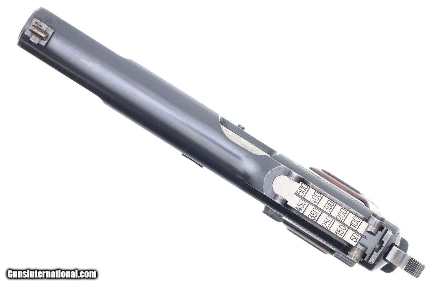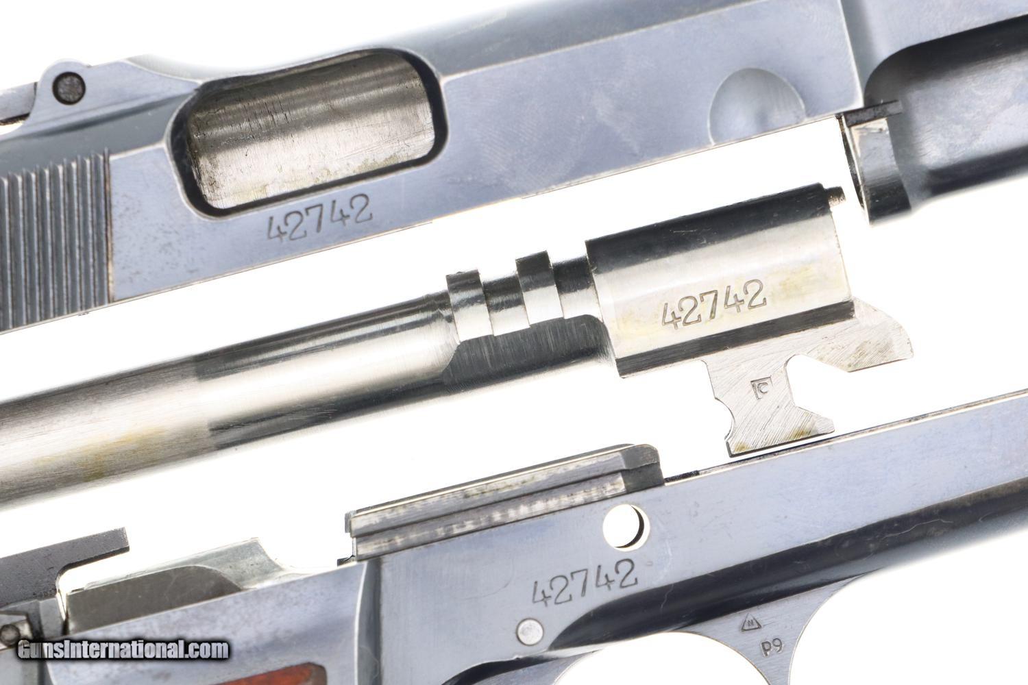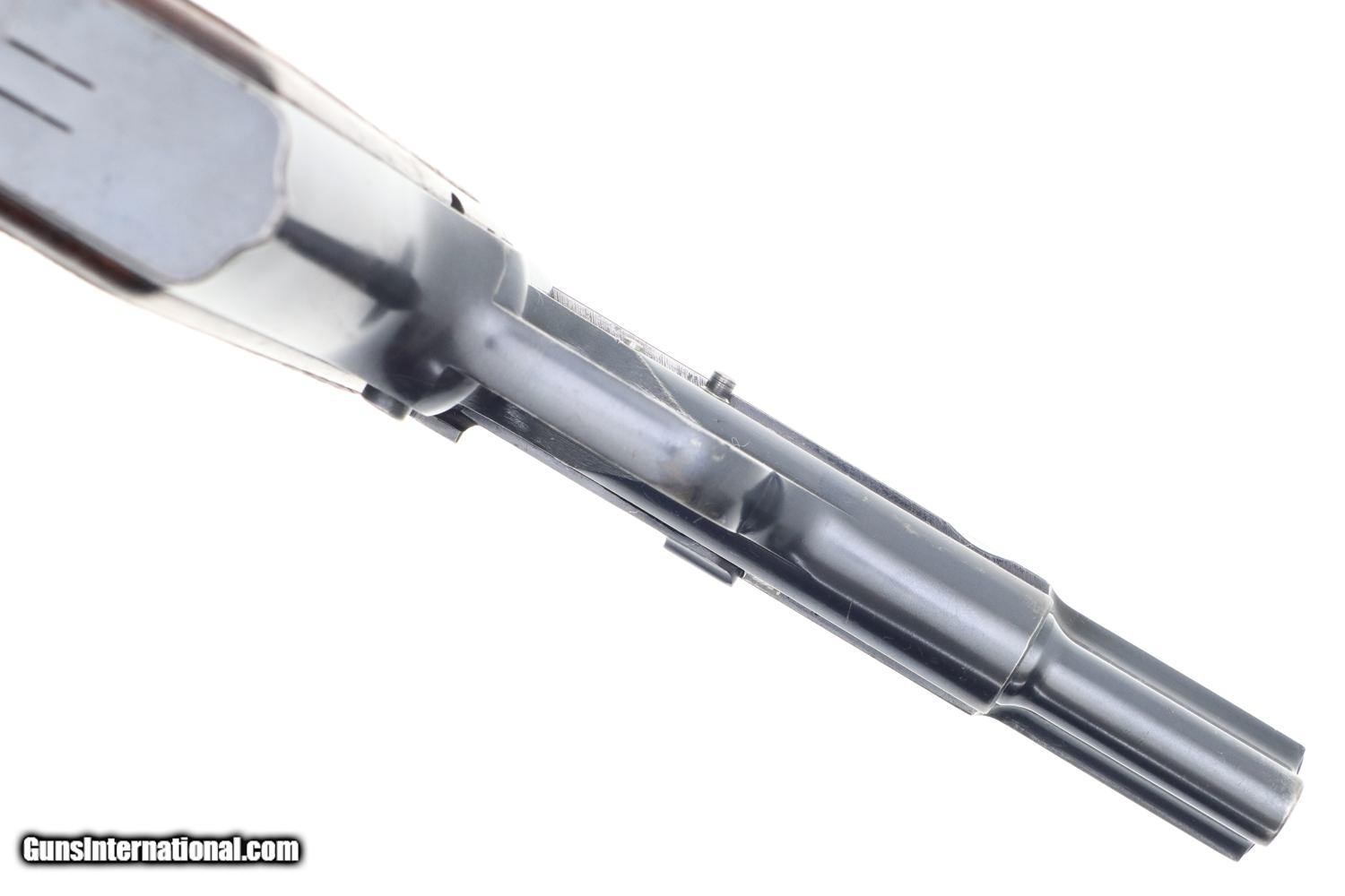 VG+ original condition with holster wear and speckling in usual areas as carefully photographed. Comparable condition grips and magazine. Bright bore with slight etching in grooves. Perfect manual mechanics.