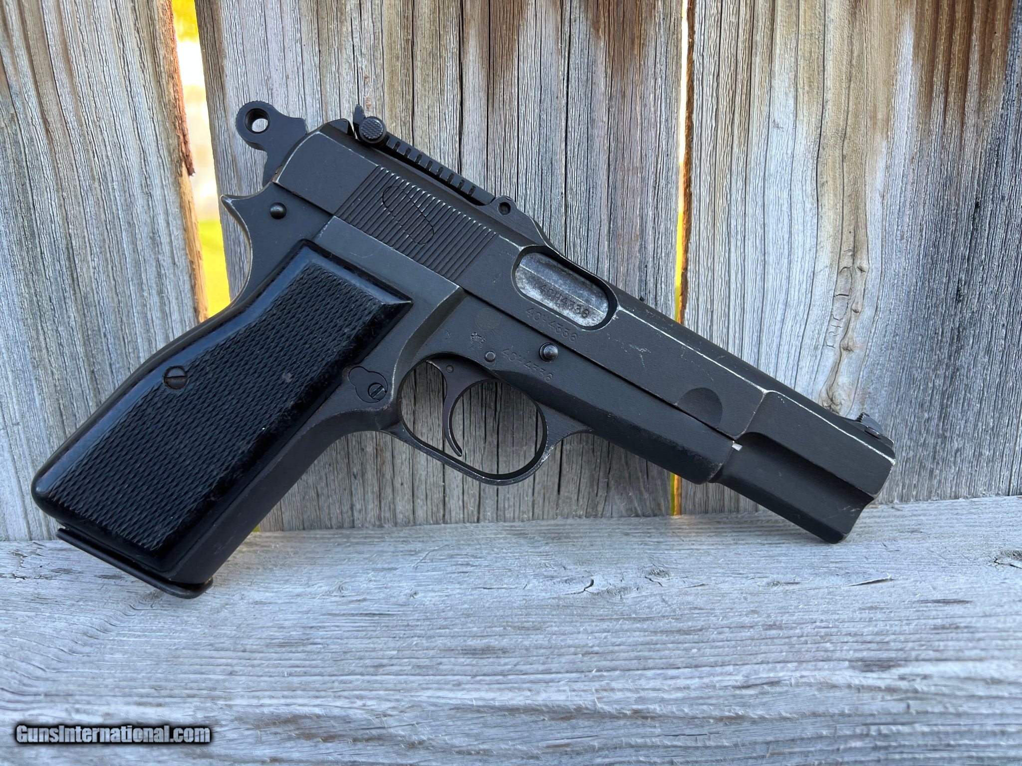 Description: Guns Listing ID: 584537 For sale: Inglis-manufactured Hi-Power (Browning design) with original stock/grips. 9mm. Historic Canadian-made semi-auto pistol, tangent rear sight, original wooden stock and grip panels, includes 1 magazine, and reproduction leather holster for stock/pistol. This firearm was originally manufactured (4CH Serial Number Prefix) for the China contract that Inglis received but this firearm never made it to China. Item: Inglis Hi-Power (John Inglis & Co.) — Browning Hi-Power design — vintage/collector firearm Caliber: 9mm Luger Barrel Length: 4.7\" Finish / Metal Condition: Fair Condition. Will show lots of holster wear and blems on the parkerizing. No major damage or rust. Stock / Grips: Original wooden stock and original grip panels included (shown in photos). Stock attaches/detaches as per original design. Serial Number: 4CH4336 Condition: Fair. Has been handled, carried, and fired quite a bit. Bore is bright but does have some pitting. In perfect shape for a collector who also wants to shoot. Included: Original wooden stock, reproduction leather holster, and 1x13rd magazine. Manufacturer: INGLIS HI-POWERS Model: Hi Power Caliber Info: 9MM LUGER (9x19 PARA) Condition: Used - Non-Certified Barrels: 4.7" BARREL Action: SEMI AUTOMATIC Finish: black Price: $2,500.99 Contact Seller |