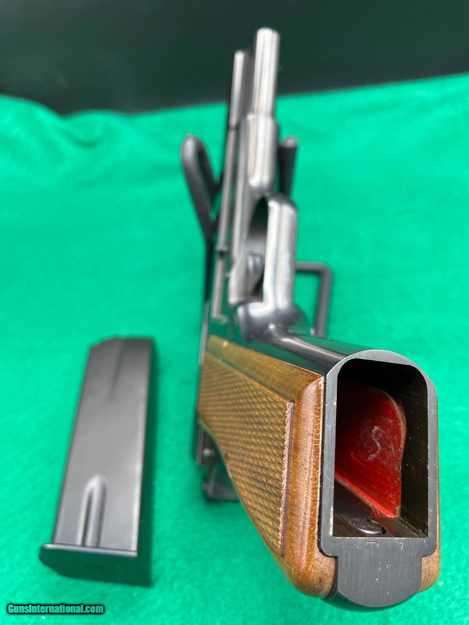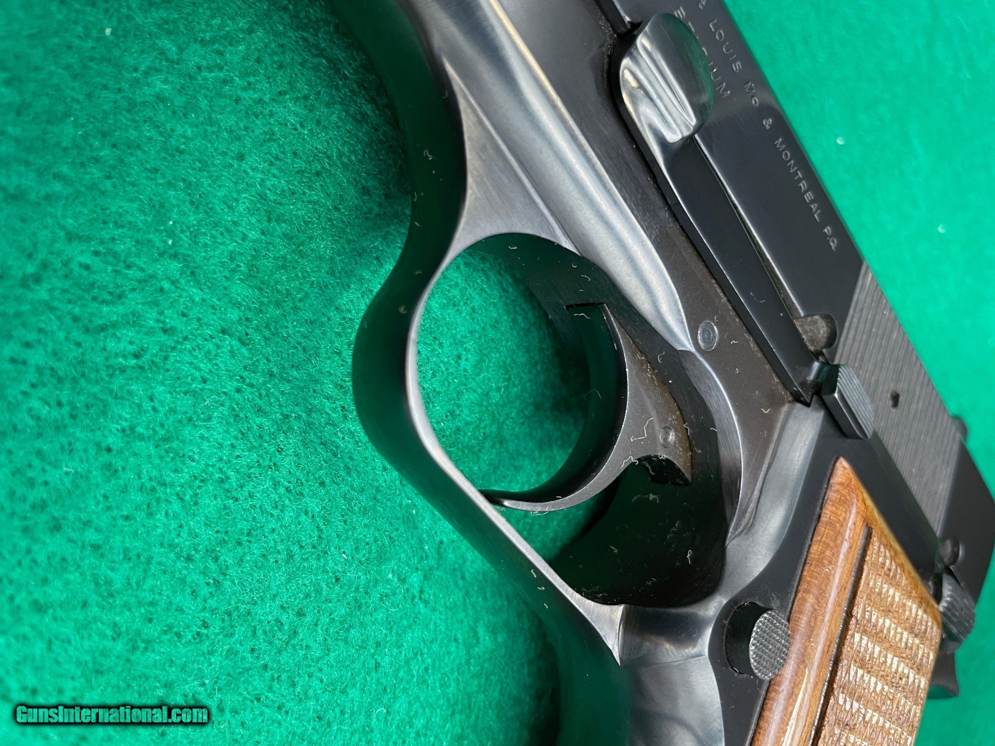 Description: Beautiful unfired T-series Browning Hi Power 9mm owned by a collector, not shooter. Comes with a leather Browning soft case and 2 magazines. Please see pictures and contact me with any questions. FFL to FFL shipping only. No shipping to CA or any other restrictive states. Shipping $30 USPS Priority Air 3-day. Insurance is extra if requested. Certified bank checks or USPS Money orders accepted. NO CREDIT CARDS! All offeres considered. SOLD Handgun Caliber: 9x19mm Parabellum (9mm Luger, 9x19mm NATO) Manufacturer: Browning Model: Hi Power Condition: Excellent Metal Condition: Excellent Wood Condition: Excellent Bore Condition: Excellent Action: Double/Single Stock: Wood Finish: Blue Sights: Adjustable Rear Manufacture Date: 1969 Case: Soft Leather Browning |